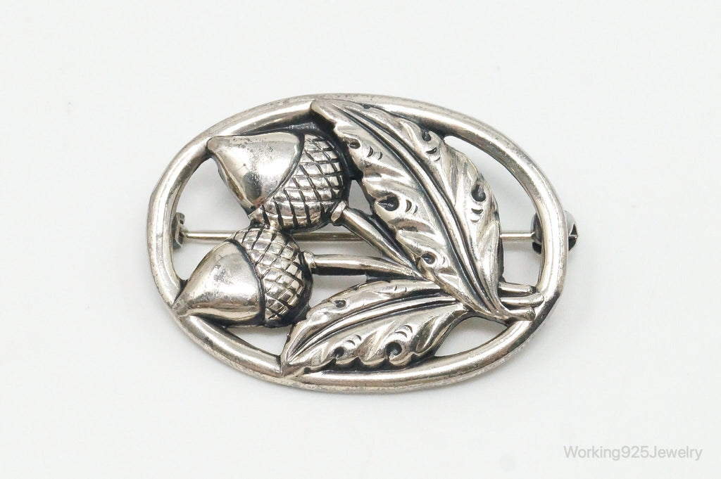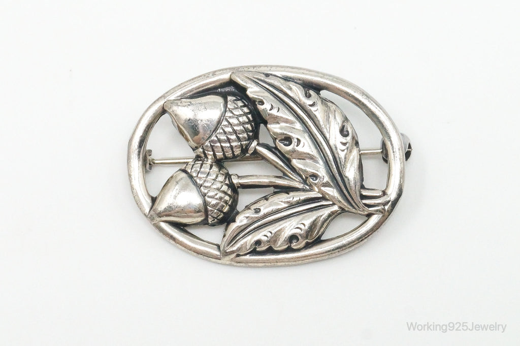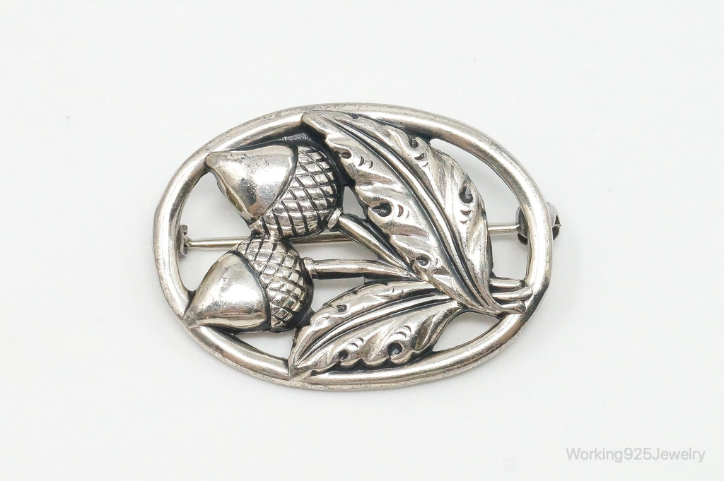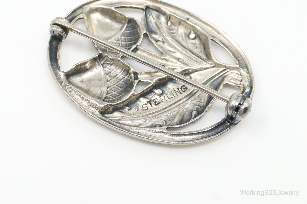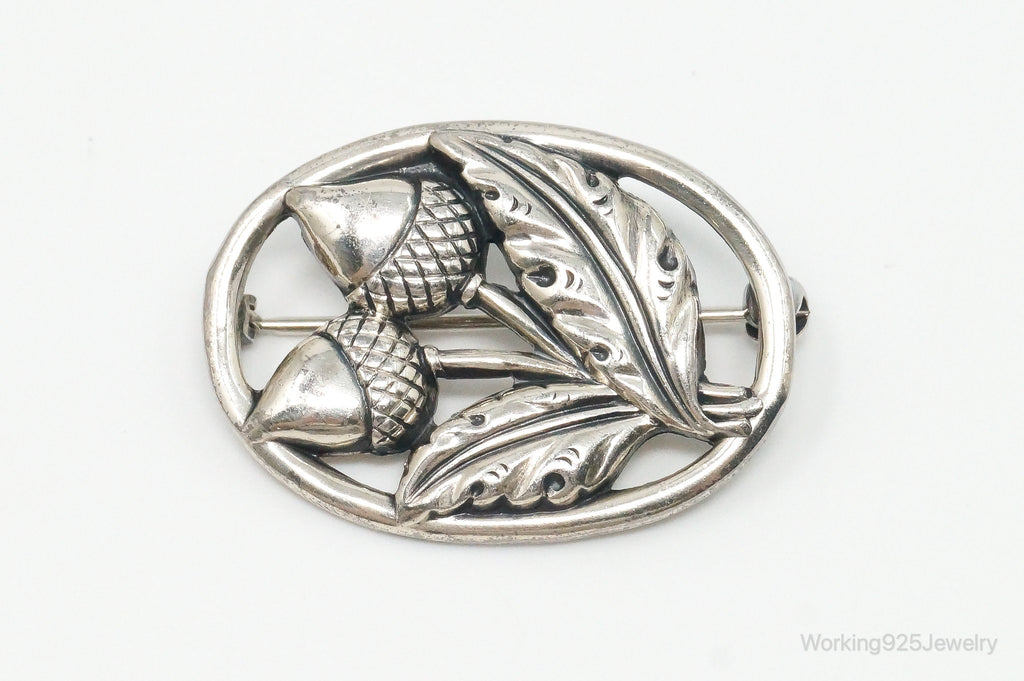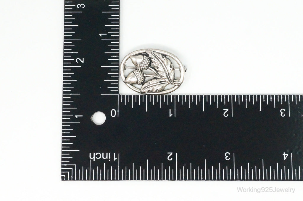 Antique Acorns Sterling Silver Brooch Pin