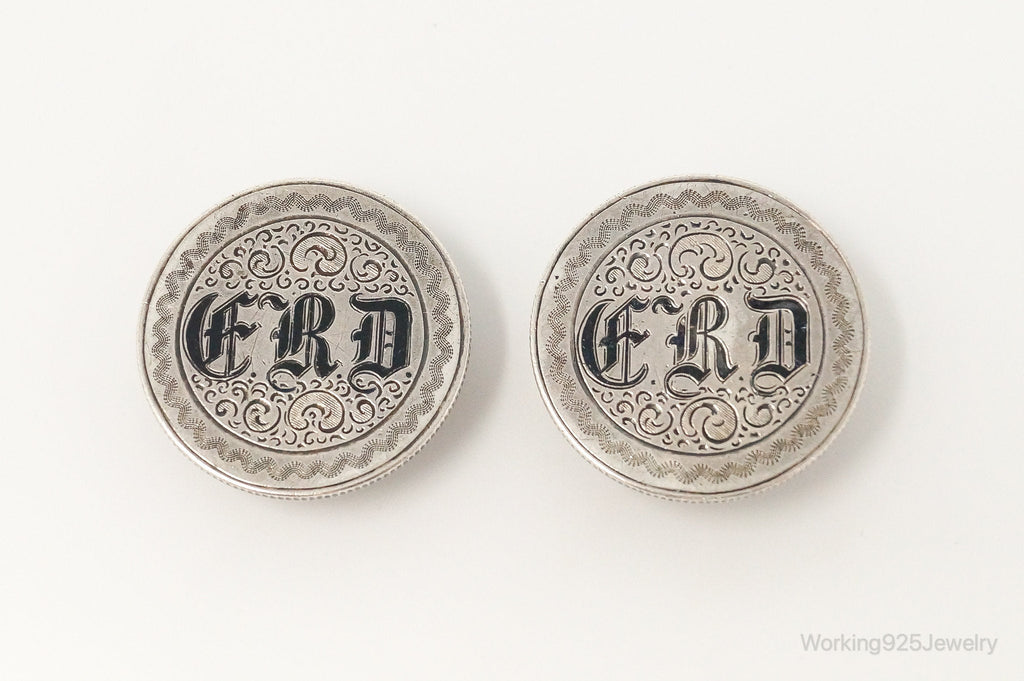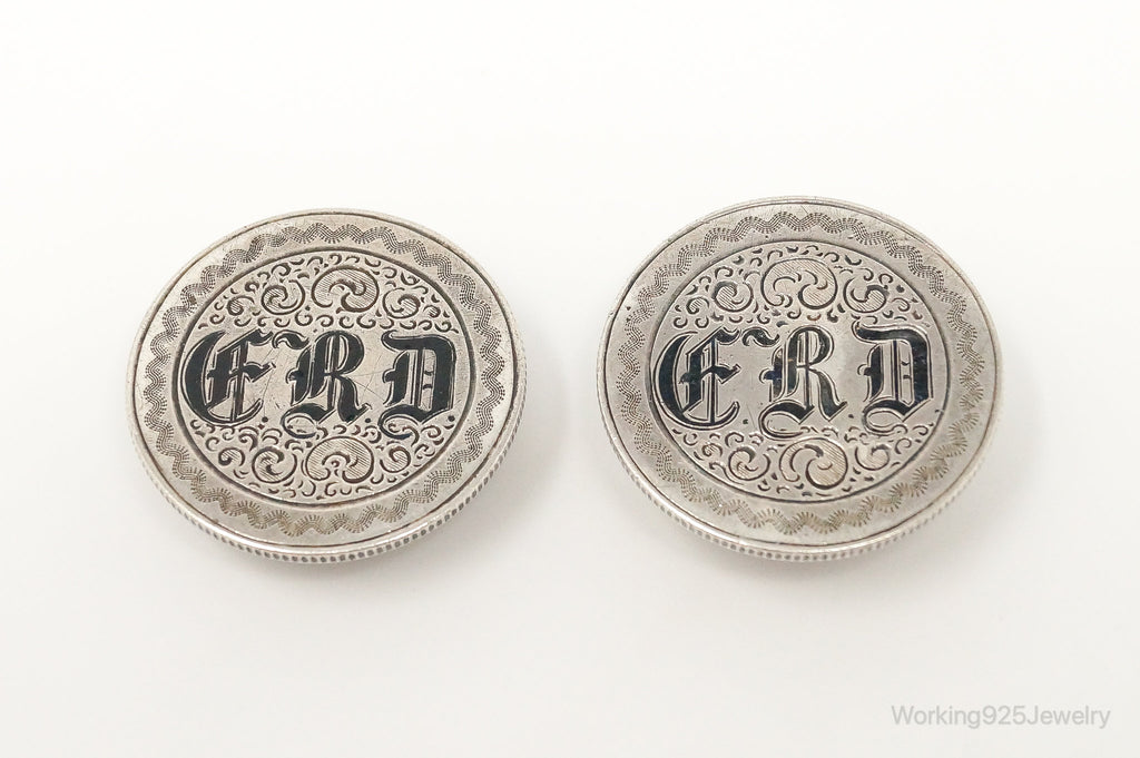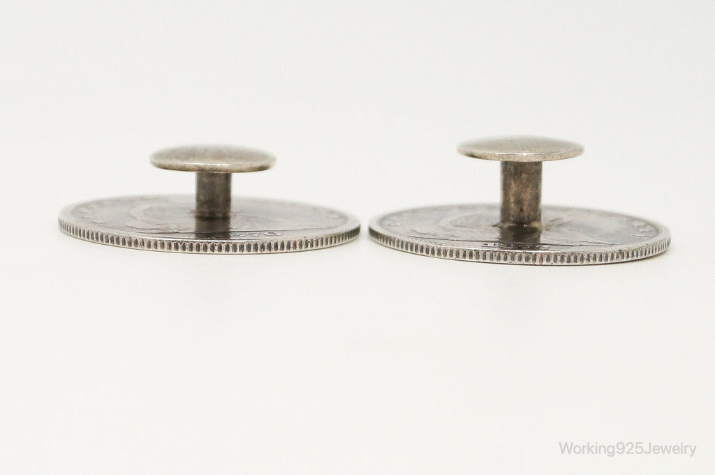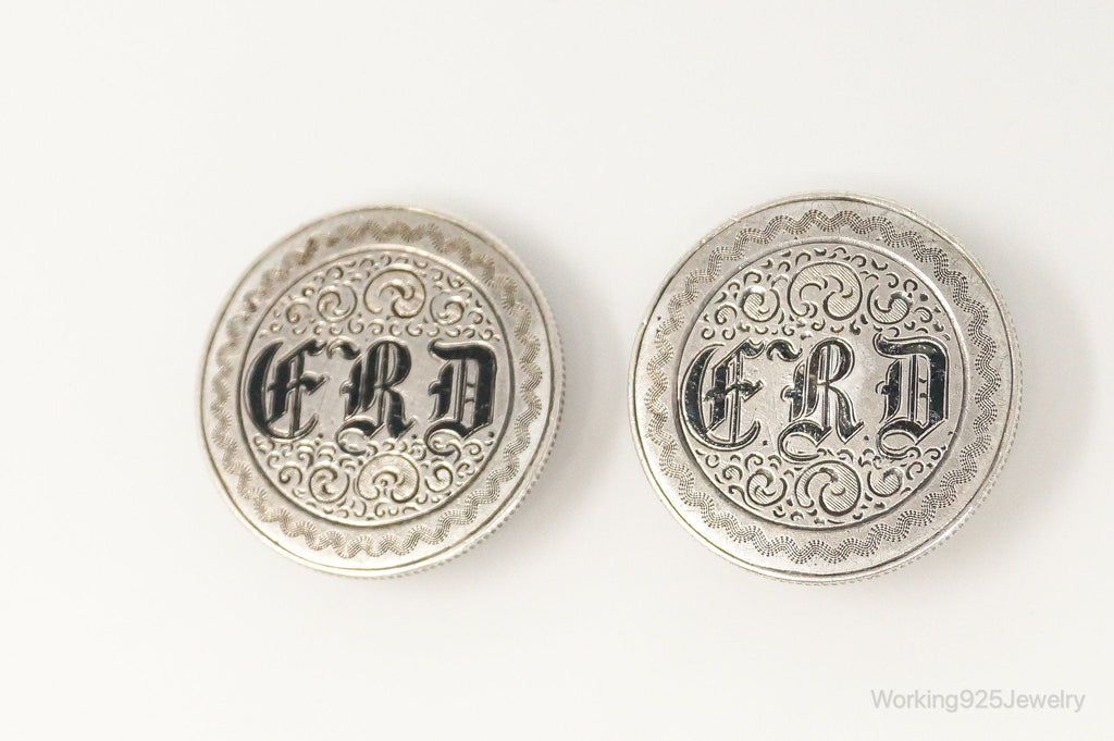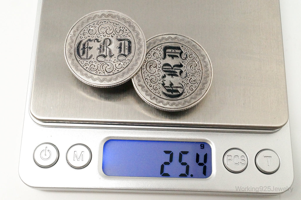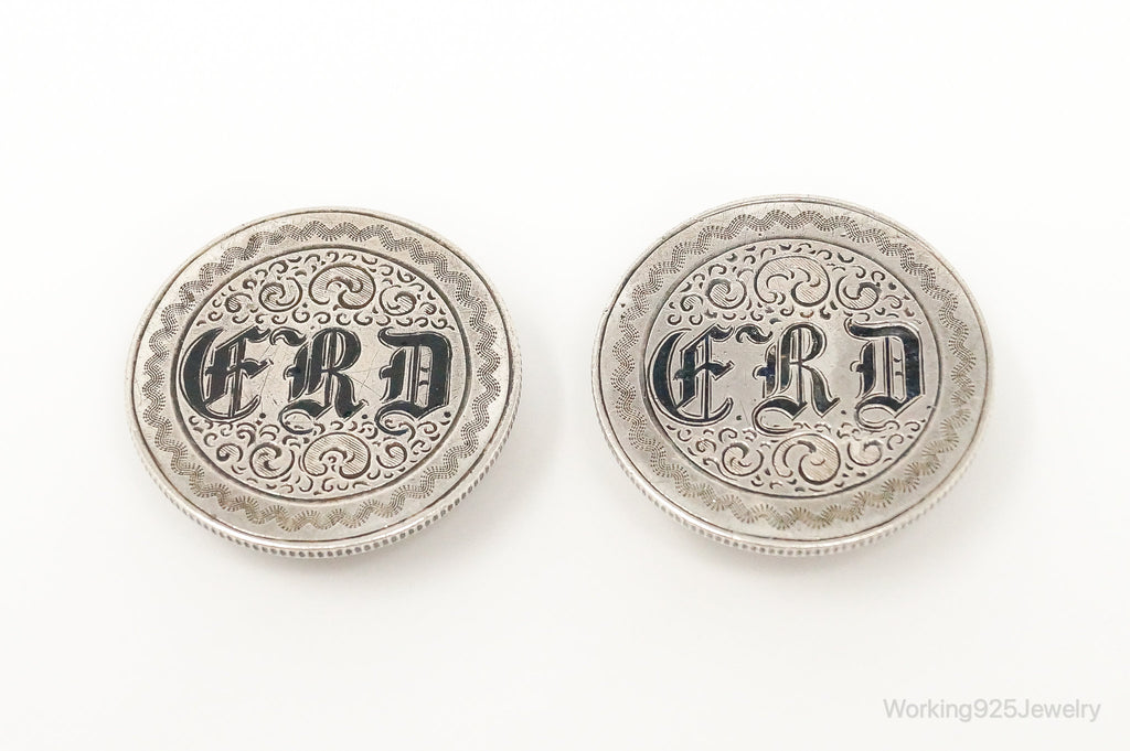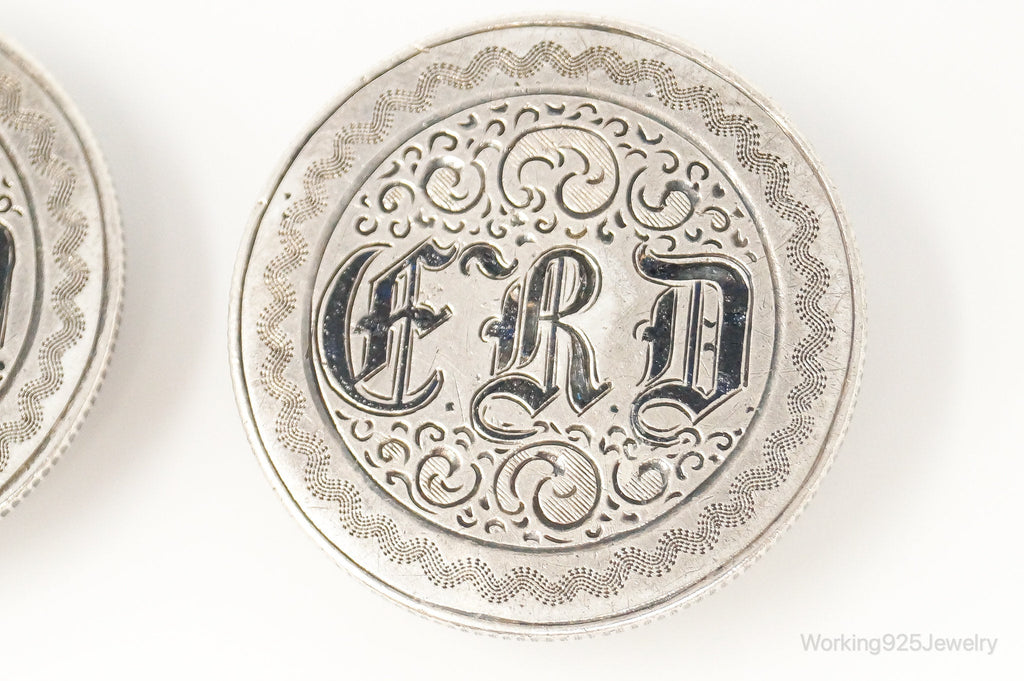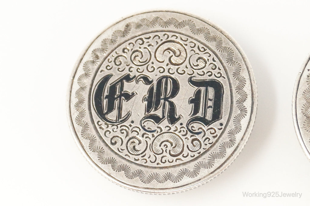 Antique Art Deco Etched Initials Seated Liberty Coin Silver Cufflinks