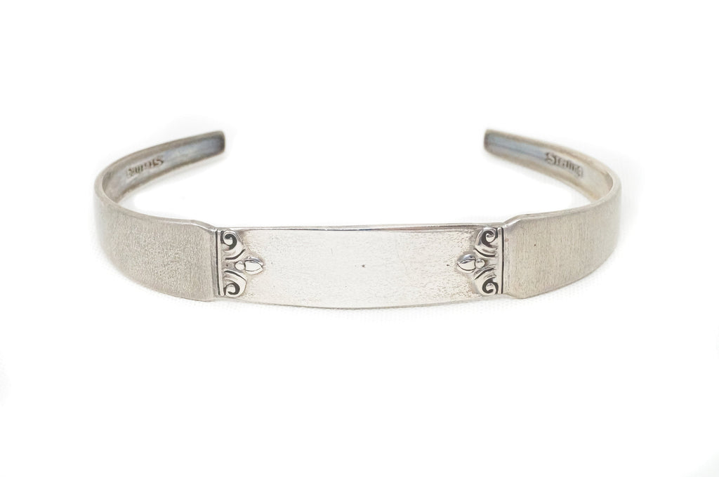 Antique Art Deco Initials Plate Sterling Cuff Bracelet