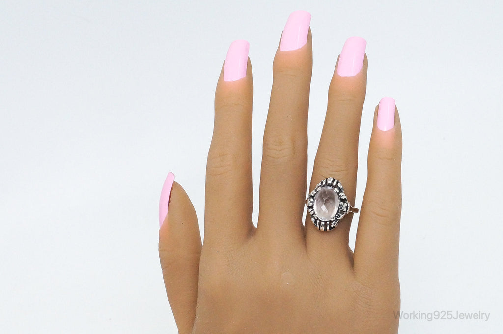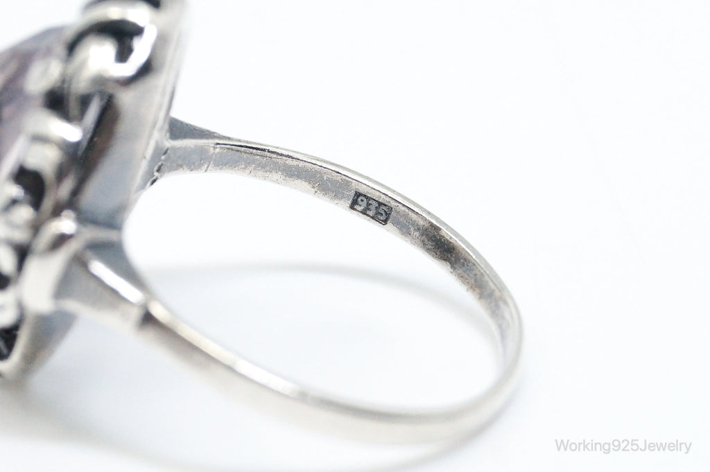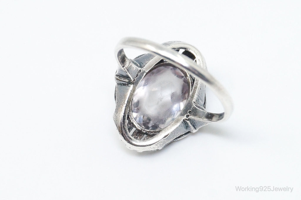Antique Art Glass Floral 935 Silver Ring - Size 9