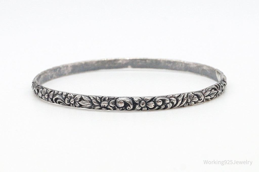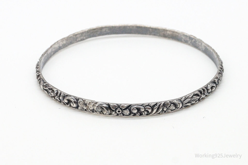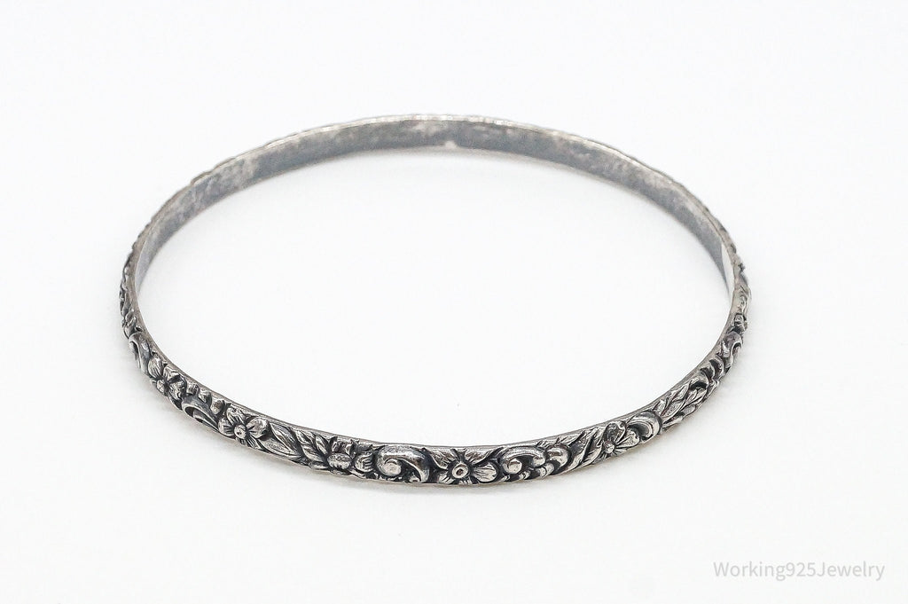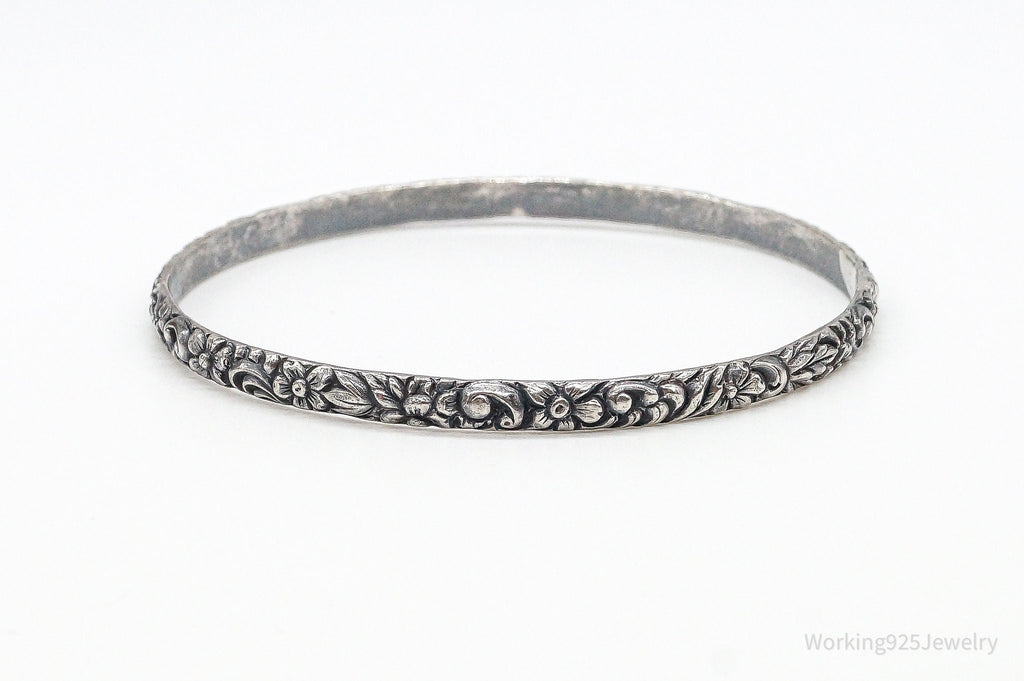 Antique Art Nouveau Motif Floral Sterling Silver Bracelet
