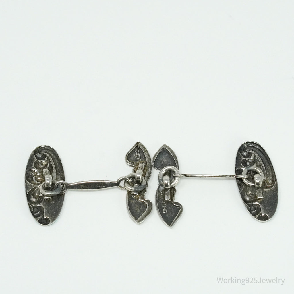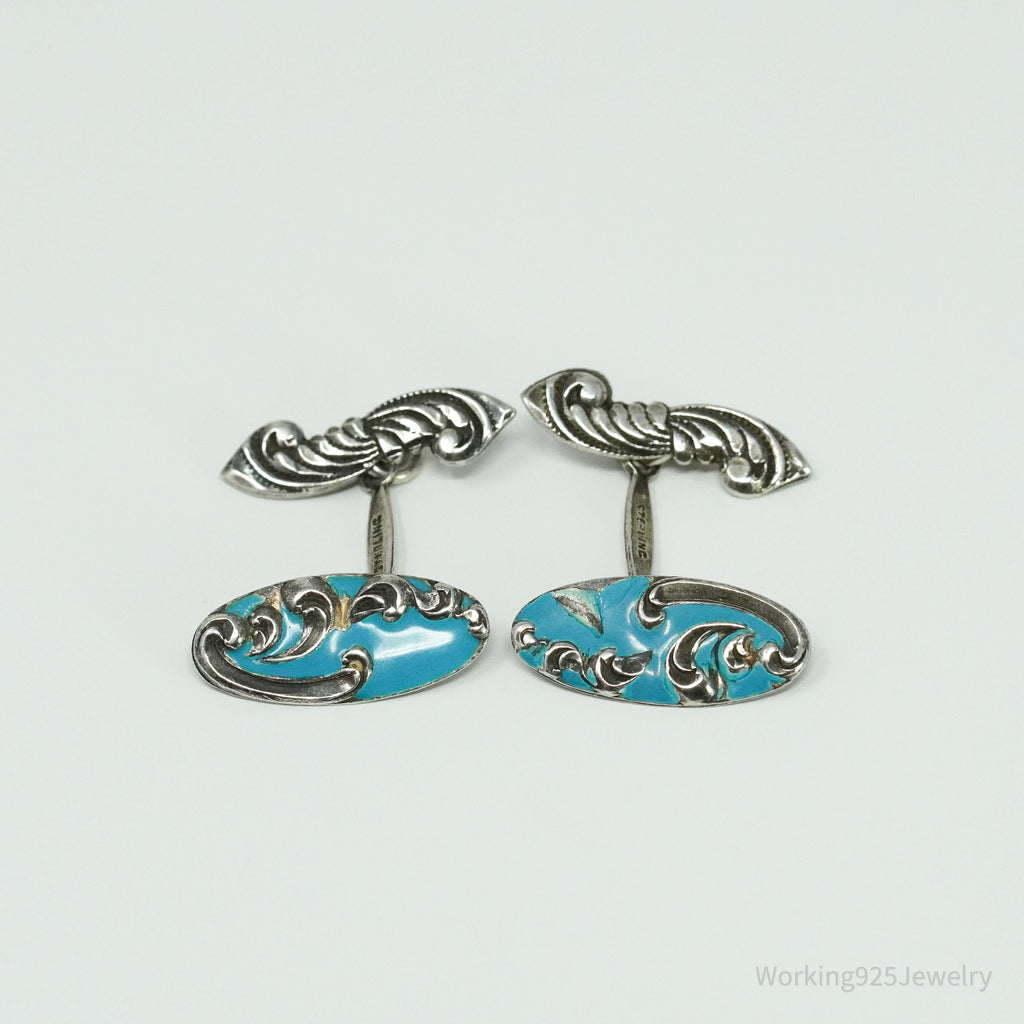 Antique Blue Enamel Sterling Silver Cufflinks