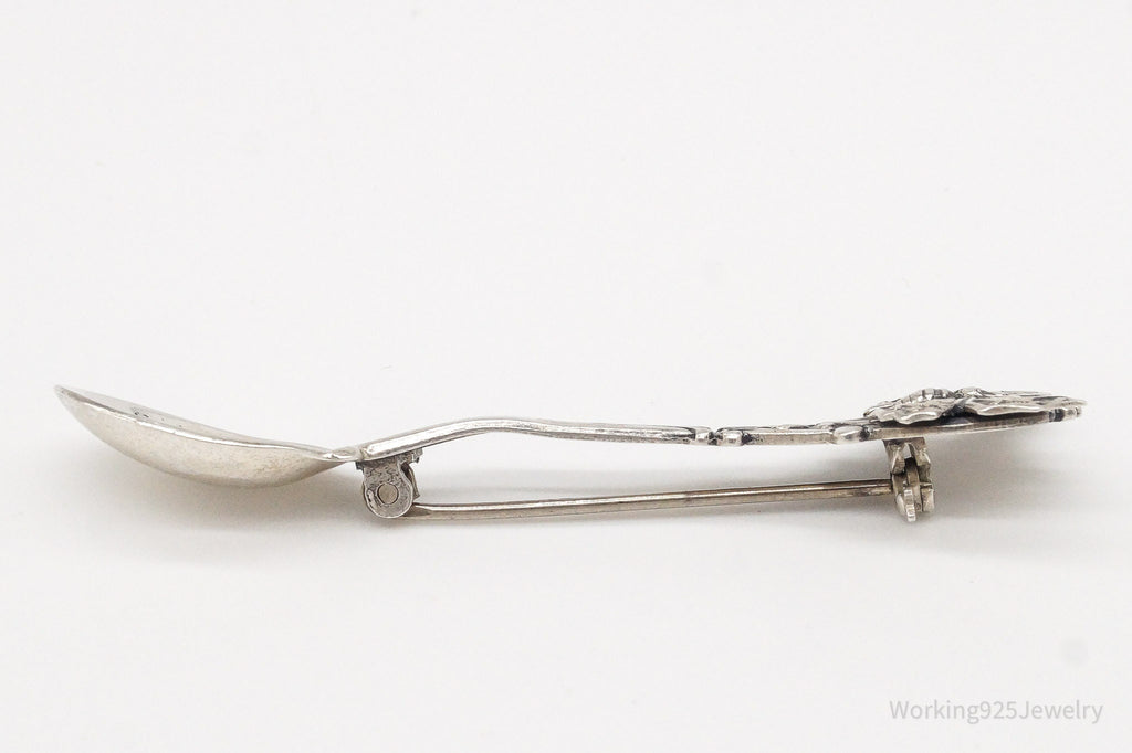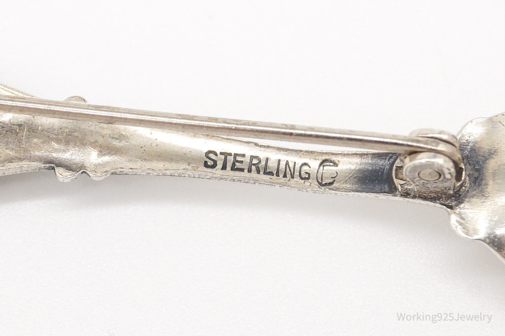 Antique Butterfly Sterling Silver Spoon Brooch Pin