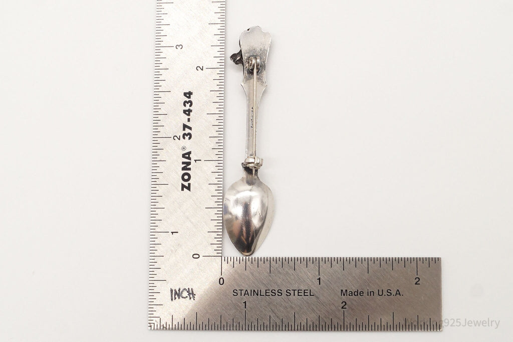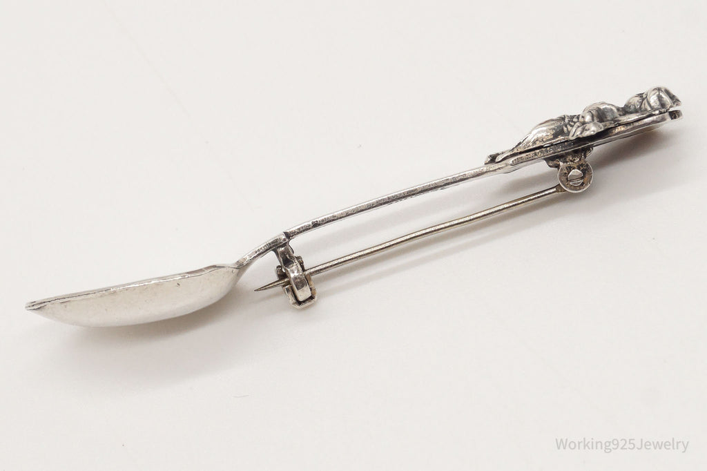 Antique Cherub Sterling Silver Spoon Brooch Pin