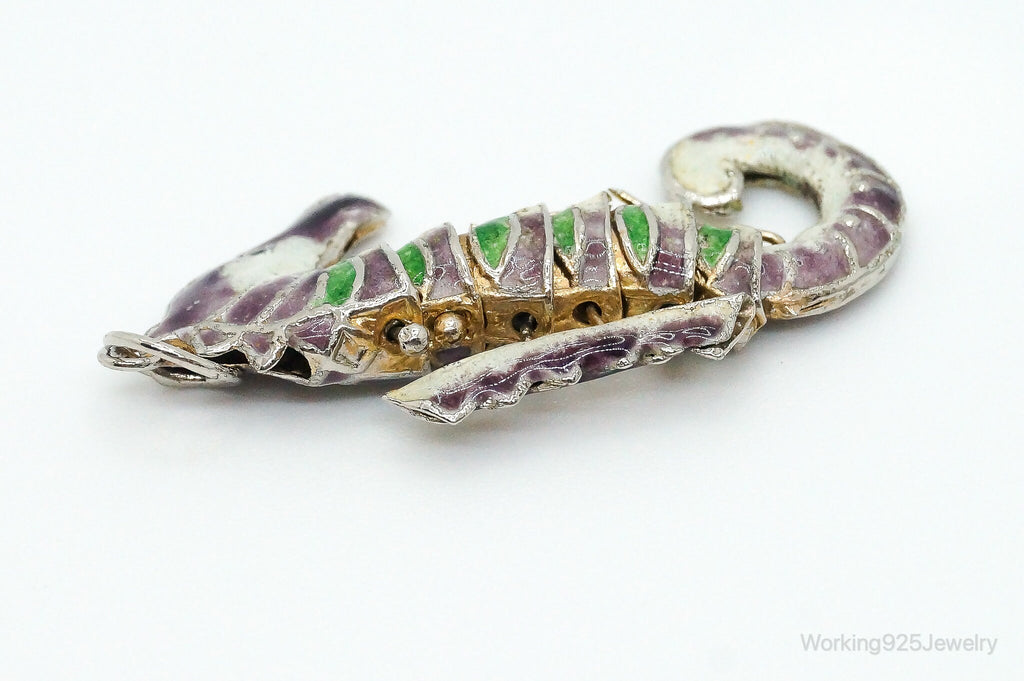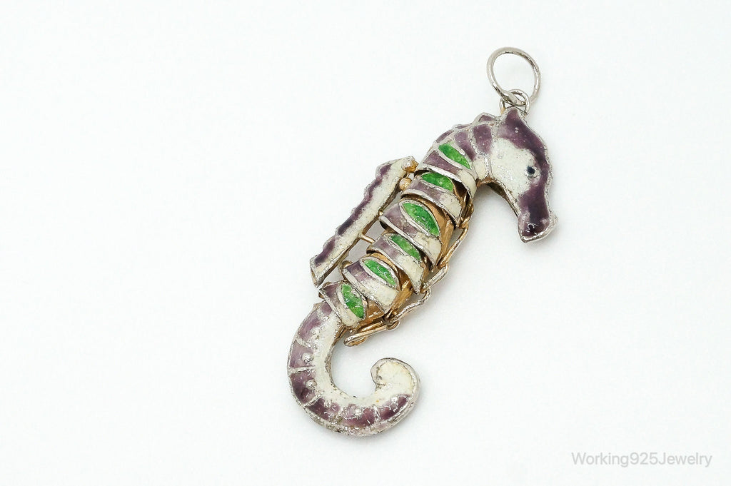 Antique Chinese Articulated Cloisonne Enameled Vermeil Silver Seahorse Pendant