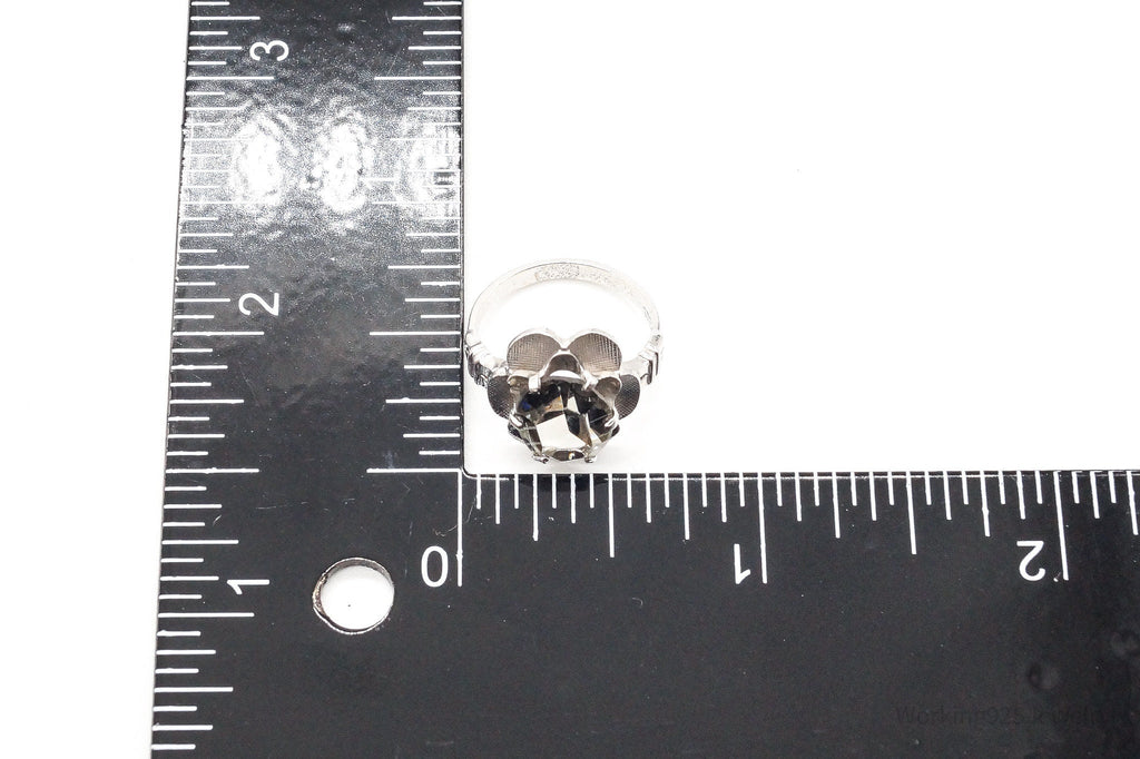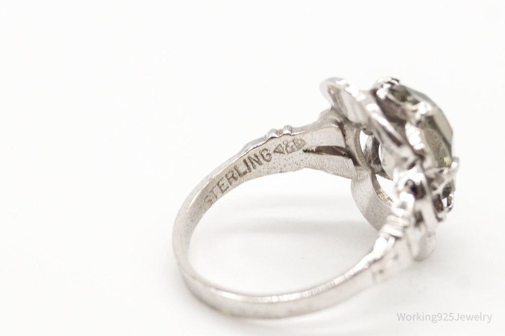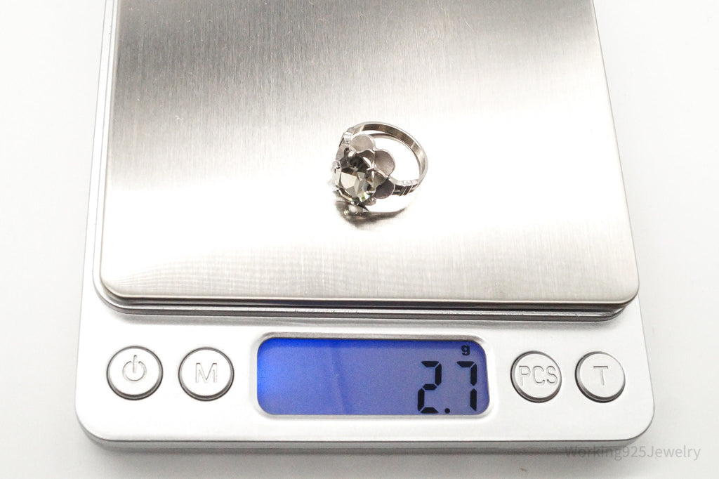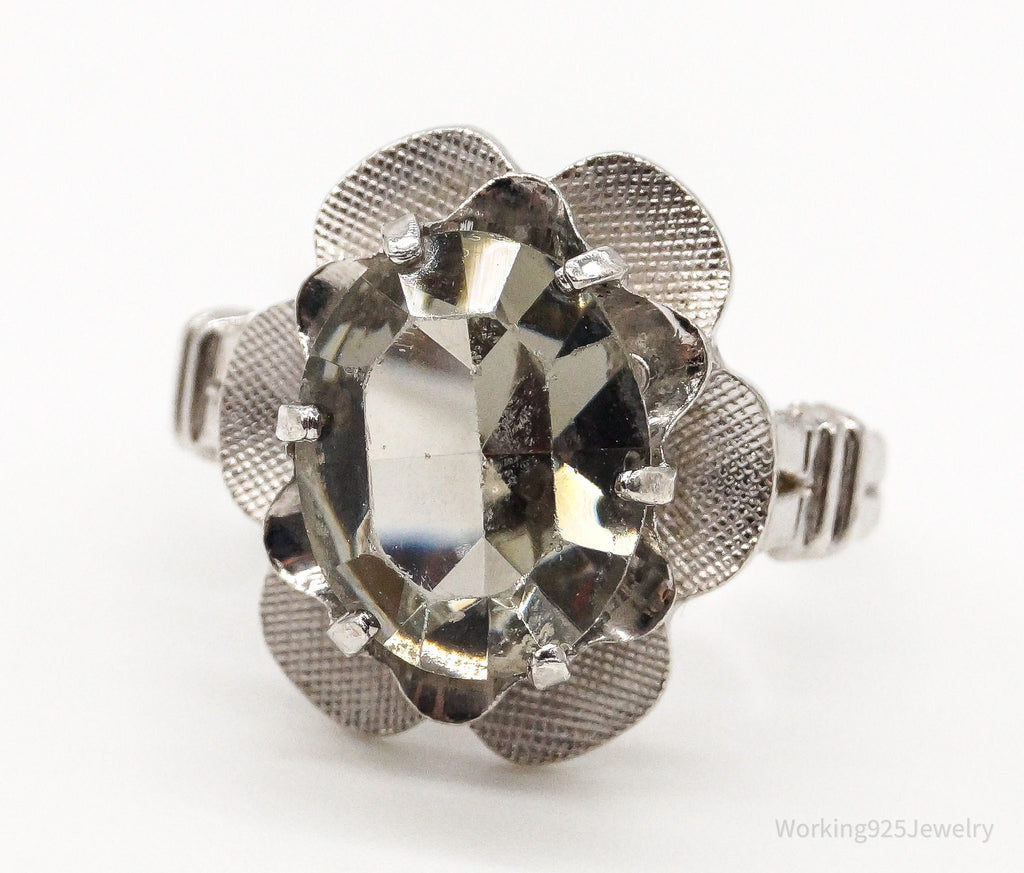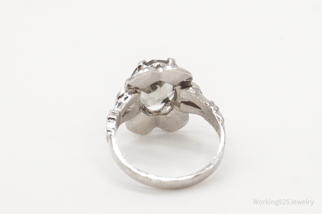 Antique Clark & Coombs Glass Flower Sterling Silver Ring - Size 4