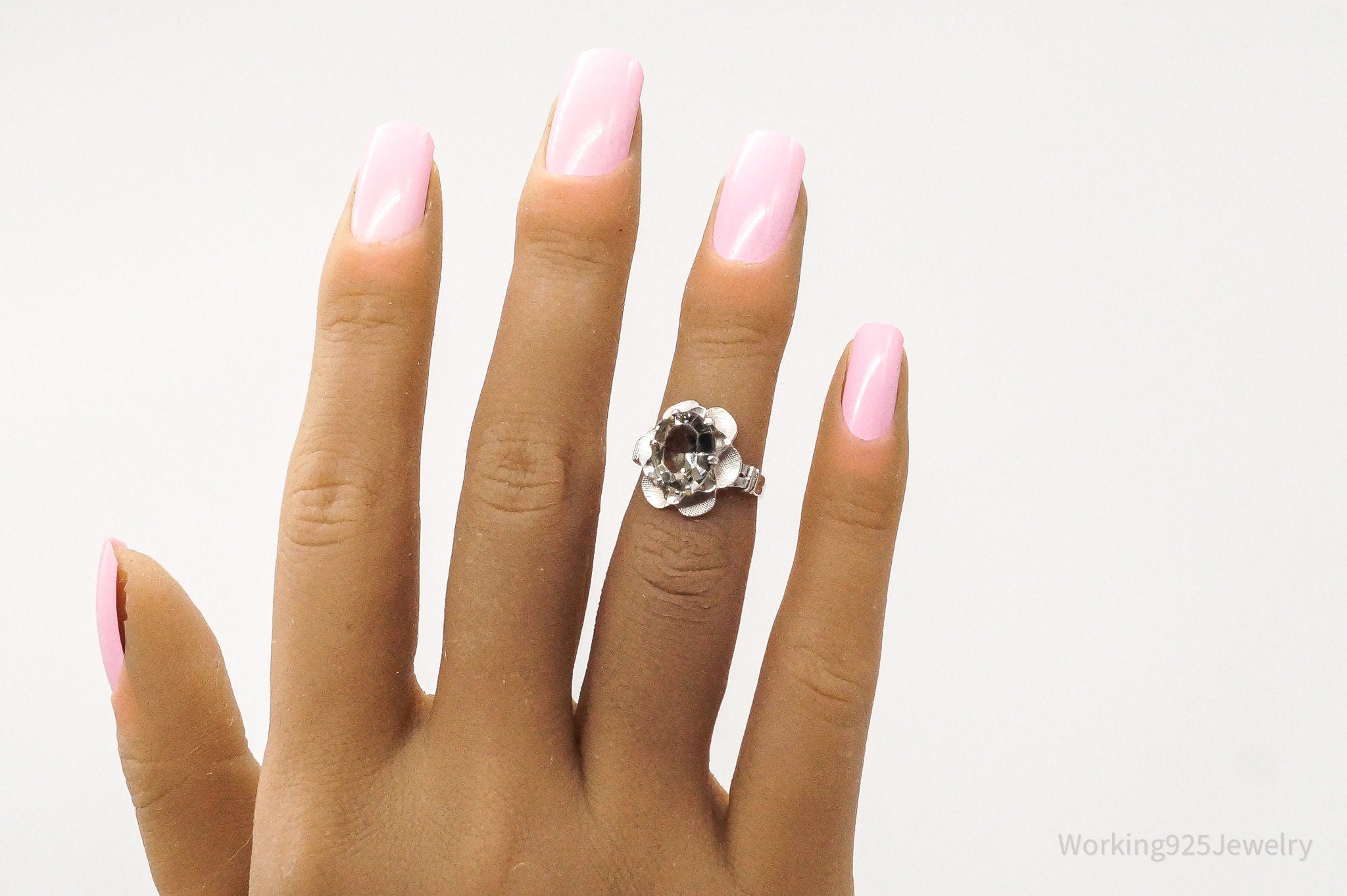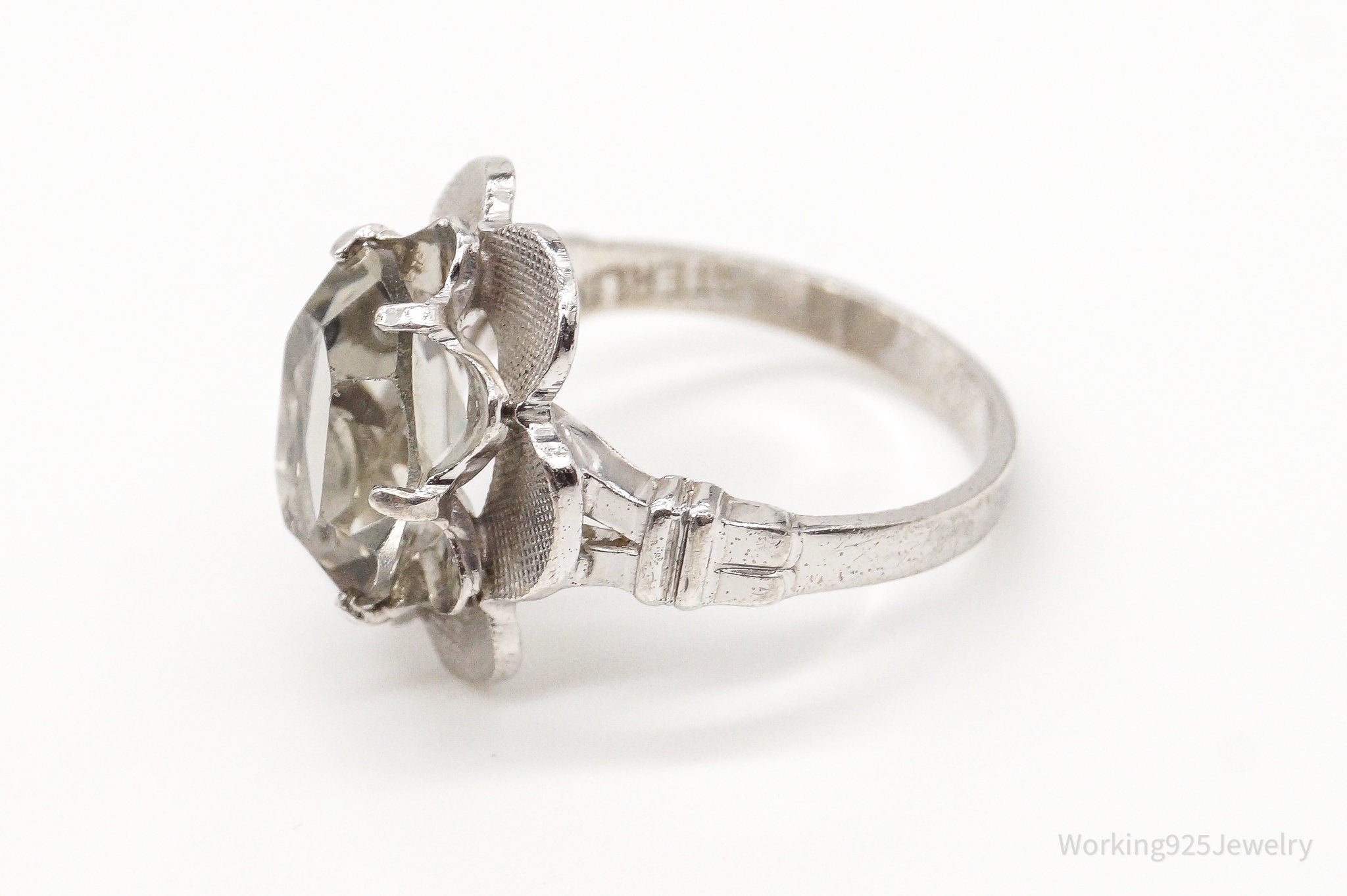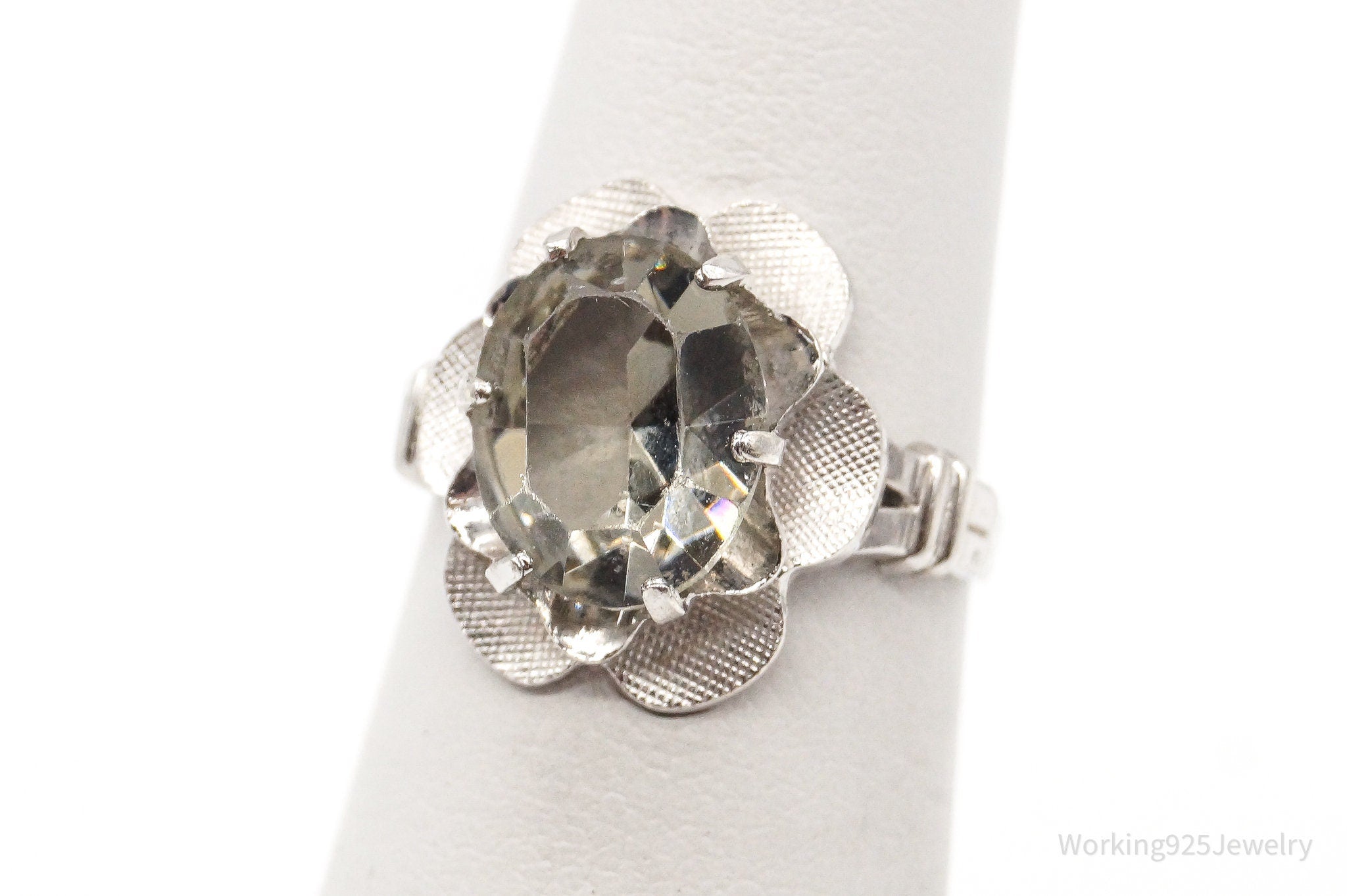 Antique Clark & Coombs Glass Flower Sterling Silver Ring - Size 4