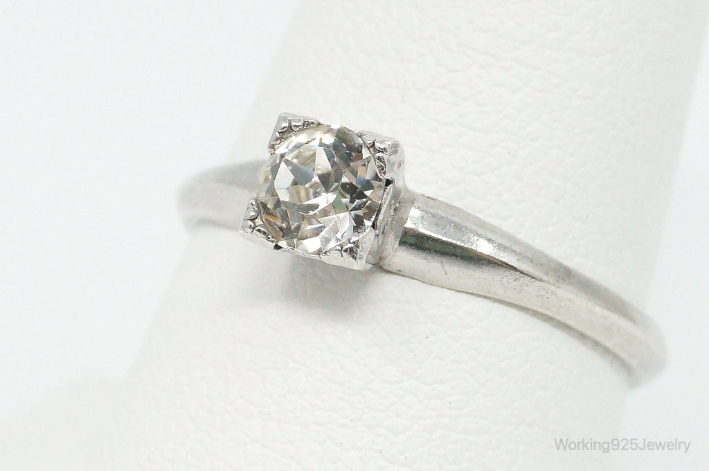 Antique Clark & Coombs Rhinestone Sterling Silver Ring - Size 9