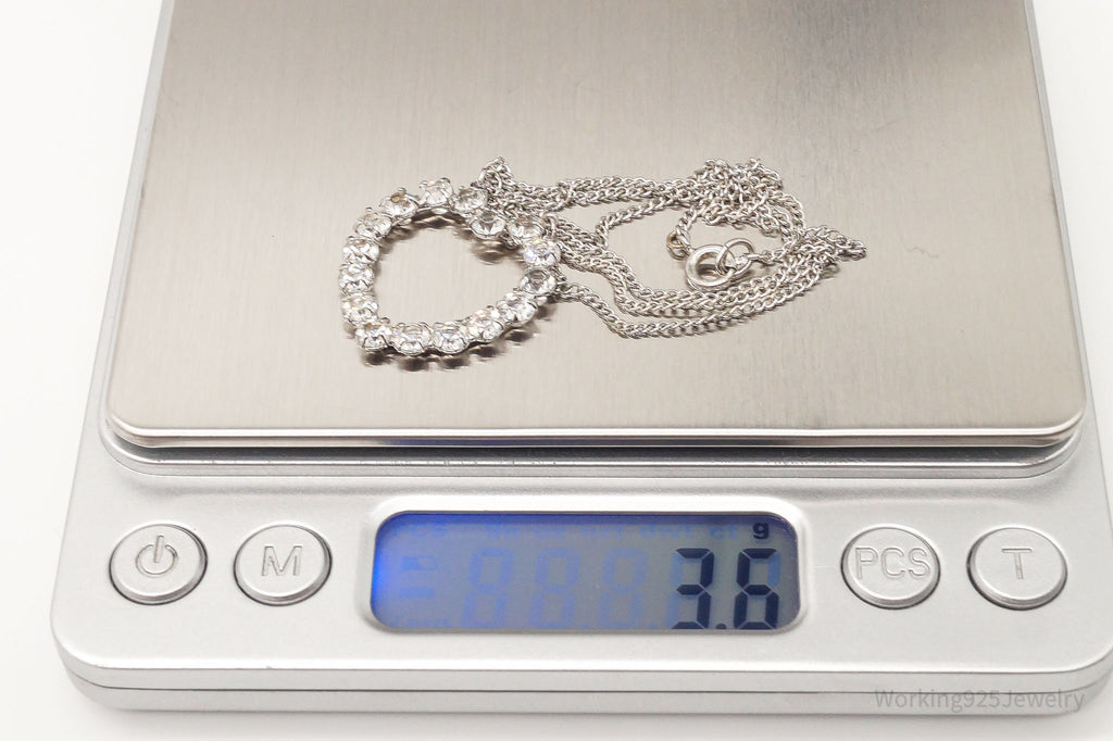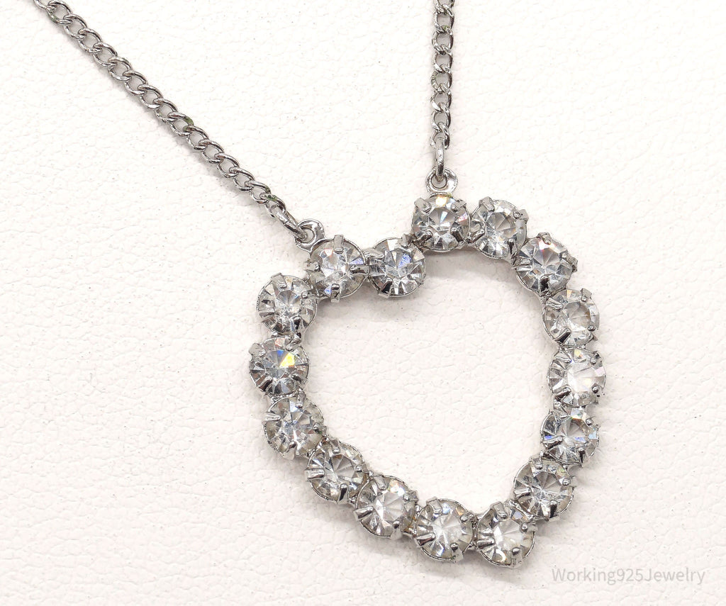 Antique Crystal Heart Sterling Silver Necklace 16"
