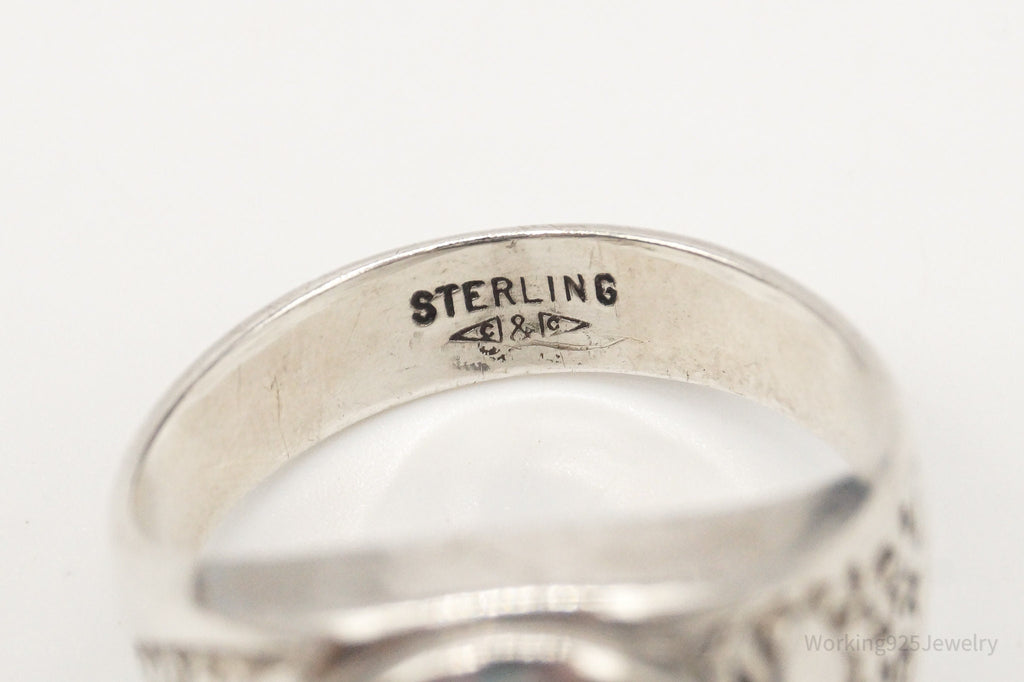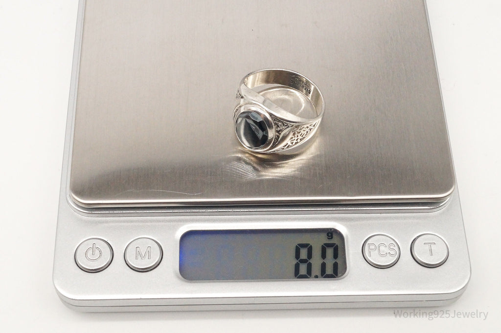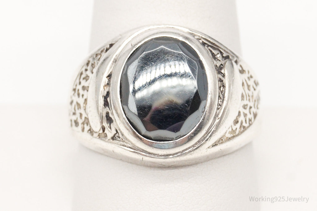 Antique Designer Clark & Coombs Hematite Sterling Silver Ring - Size 10.75
