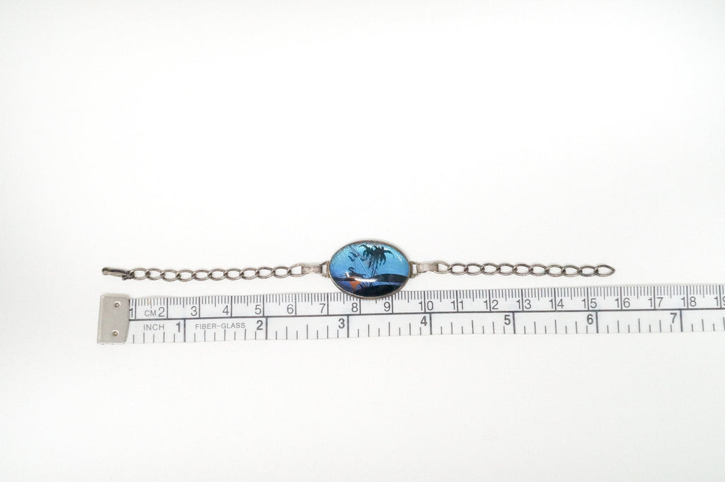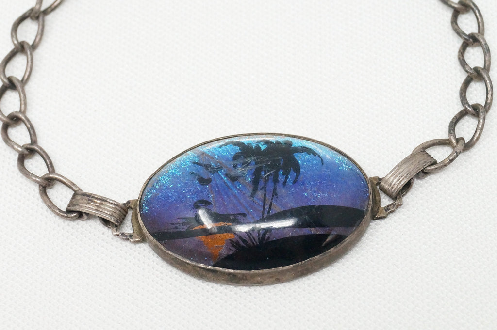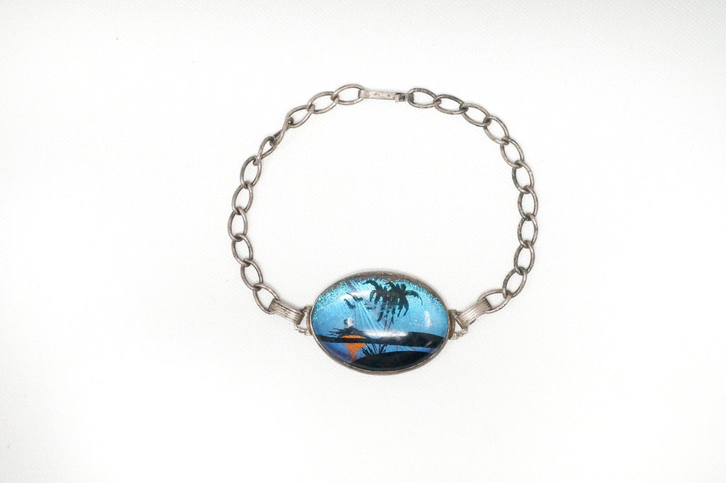 Antique Designer Hoffman Butterfly Wing Beach Scene Sterling Silver Bracelet