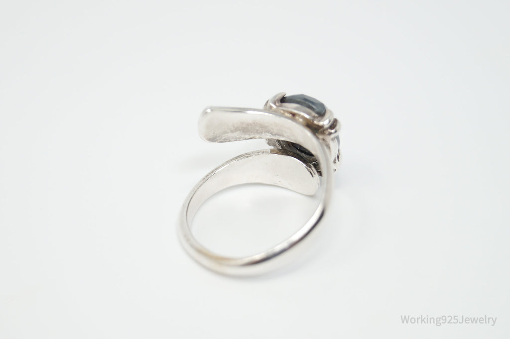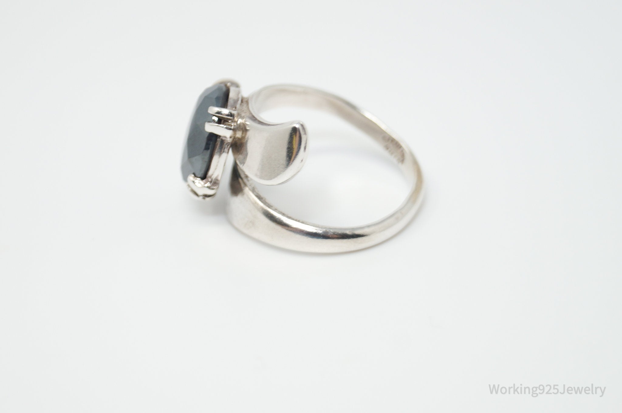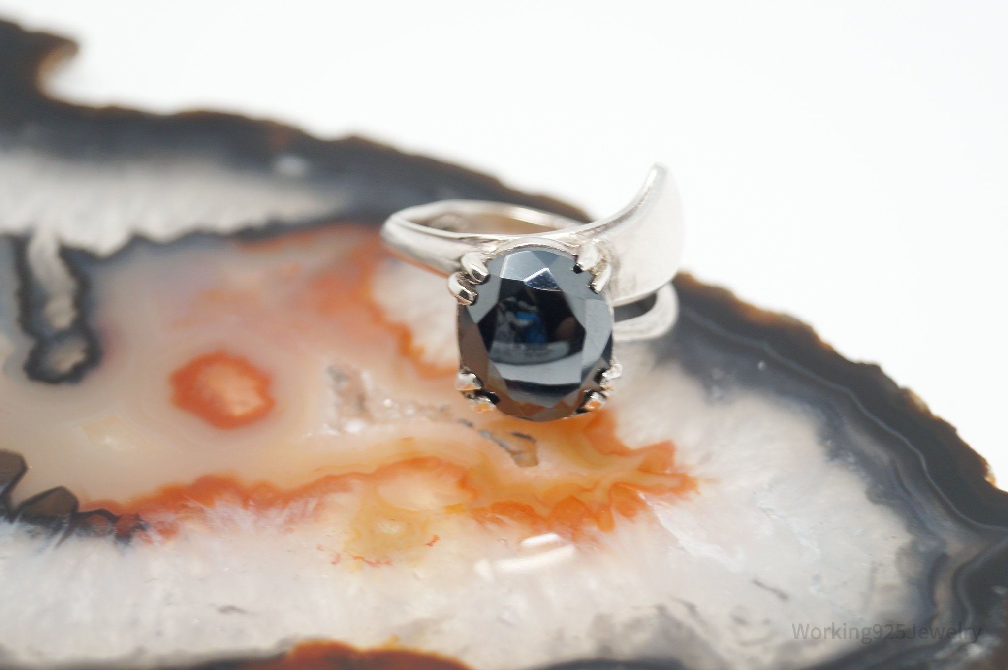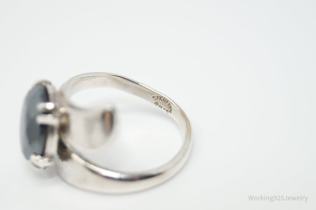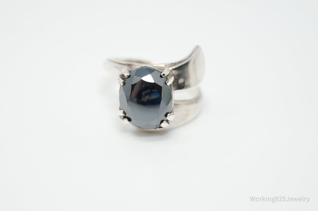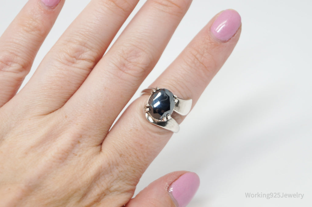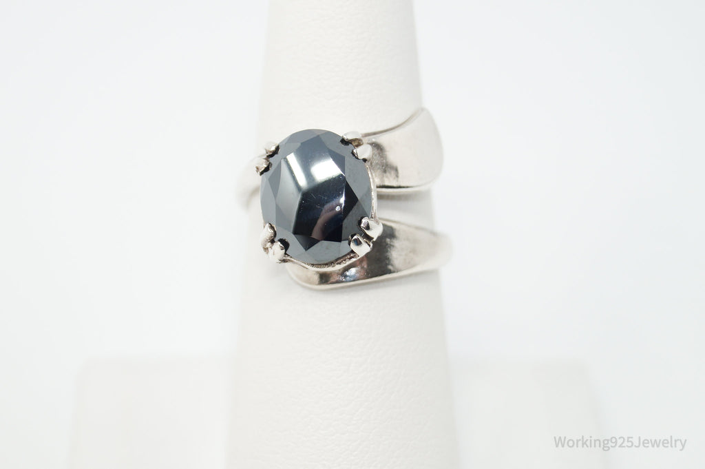 Antique Designer MMA BM Co Hematite Edwardian Sterling Silver Ring - Sz 7.5