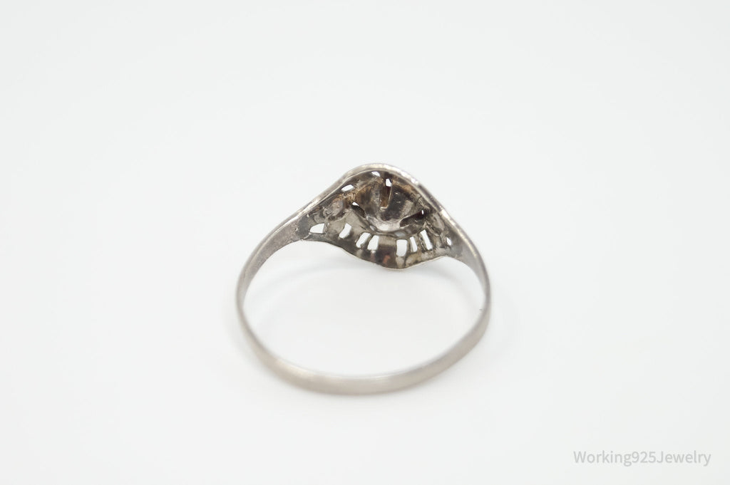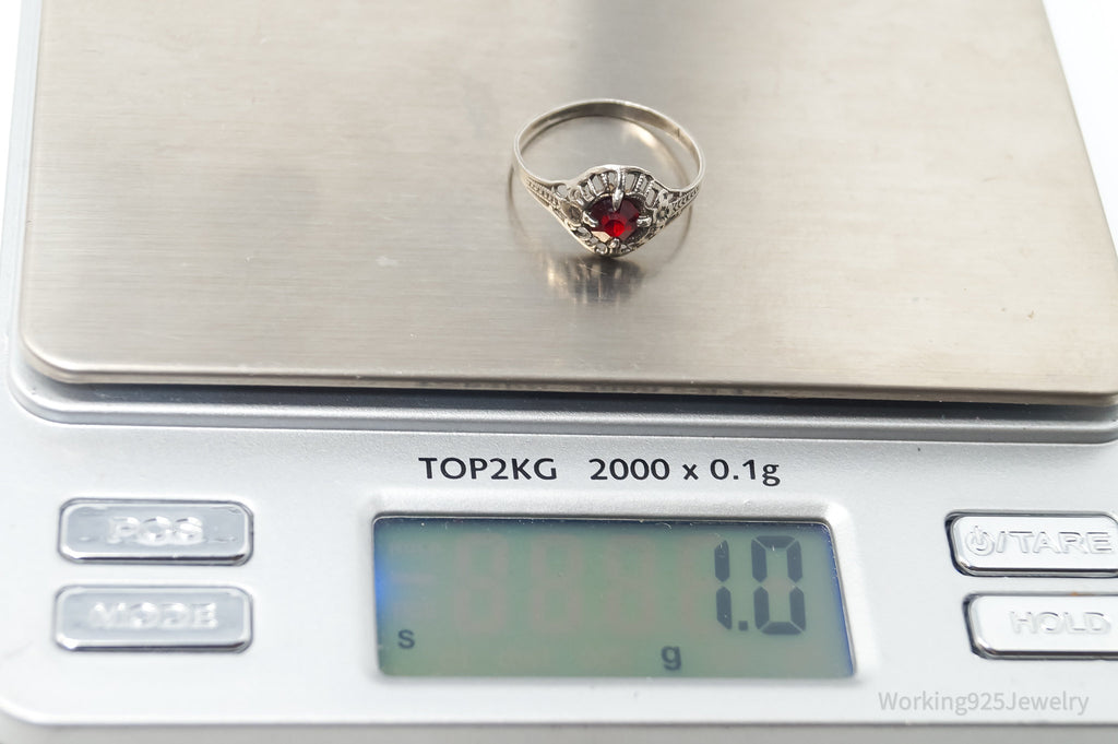 Antique Designer Red Art Glass Sterling Silver Ring - Size 5.75