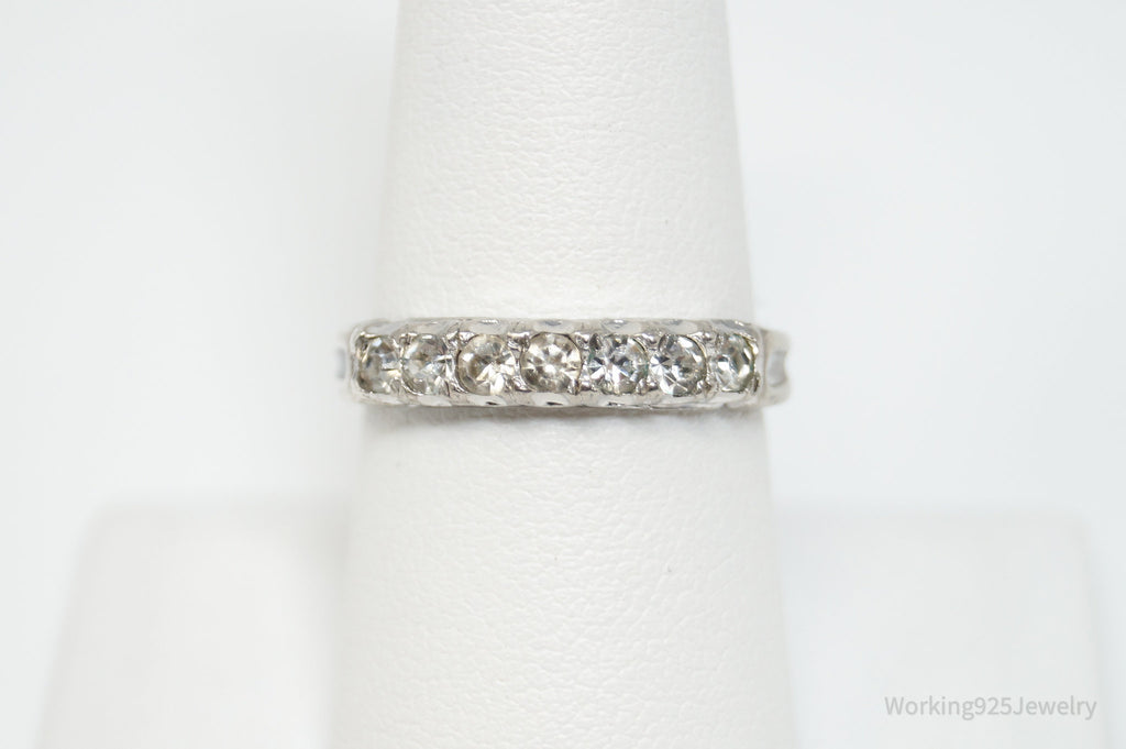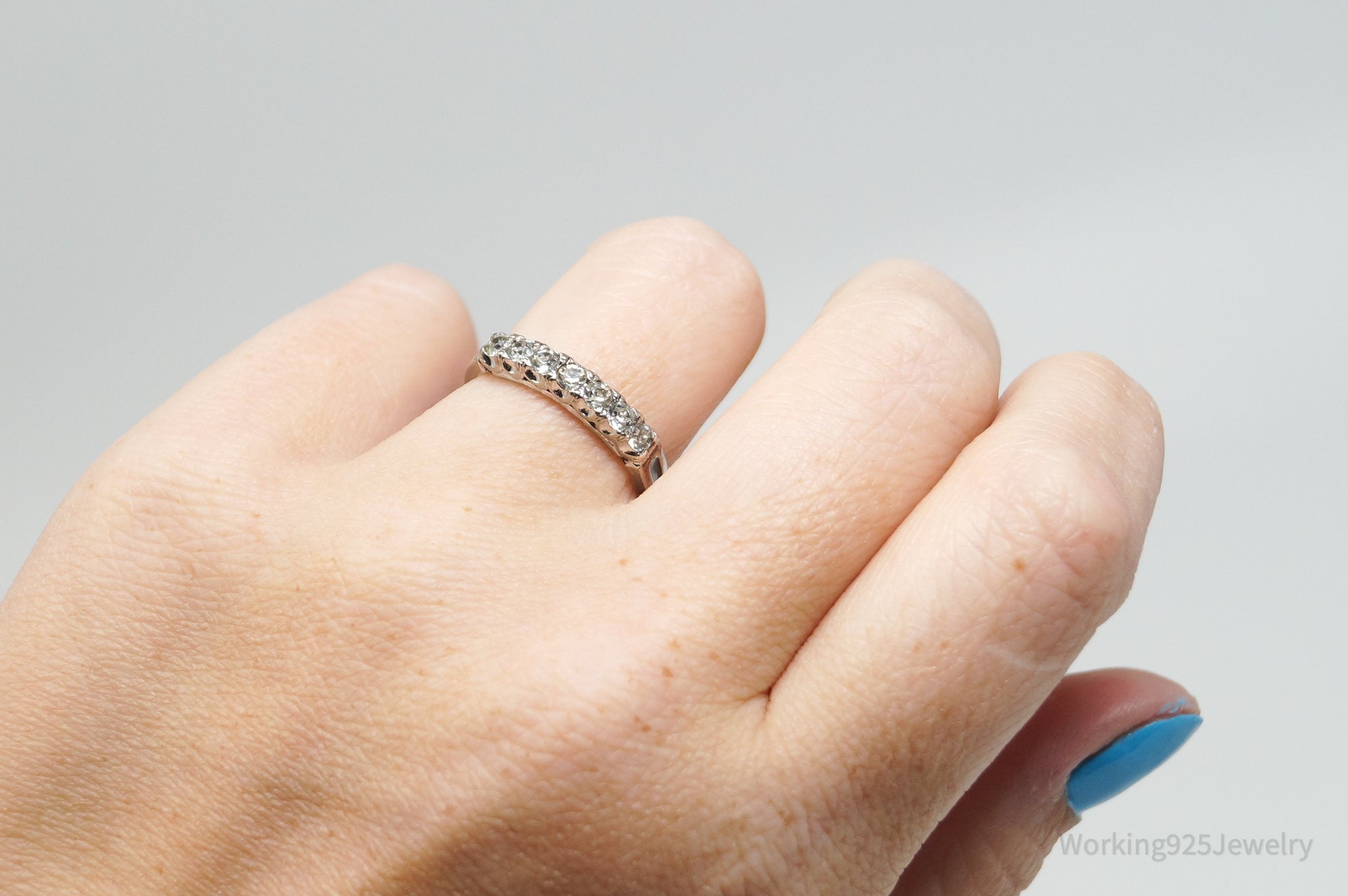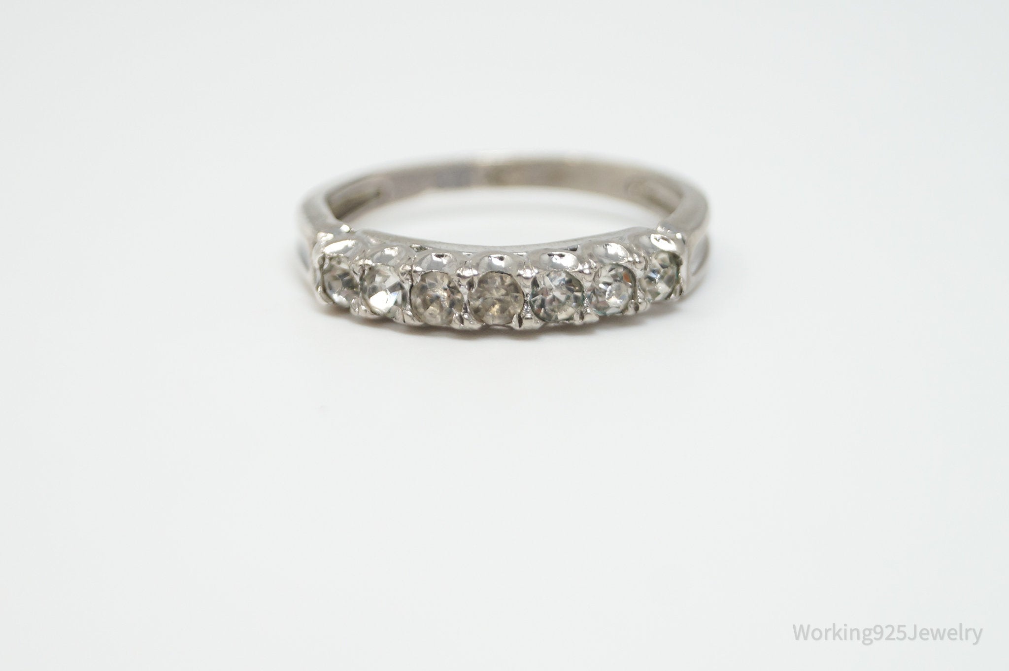 Antique Designer Uncas CZ Sterling Silver Band Ring - Sz 8.25