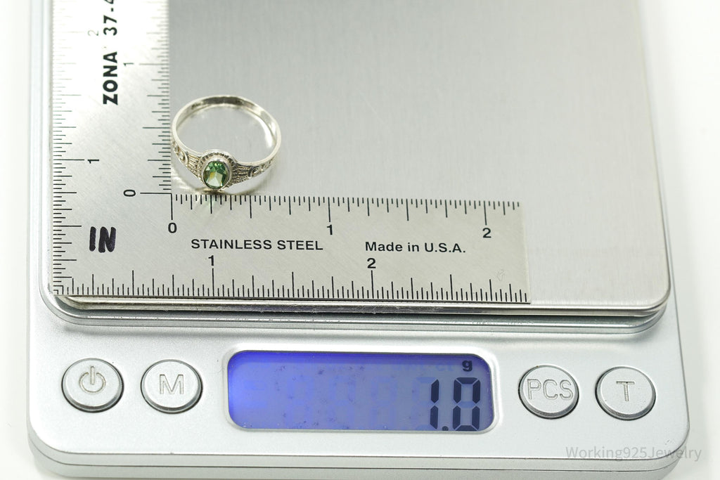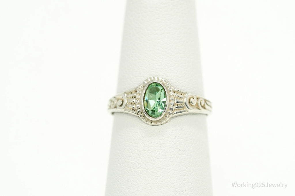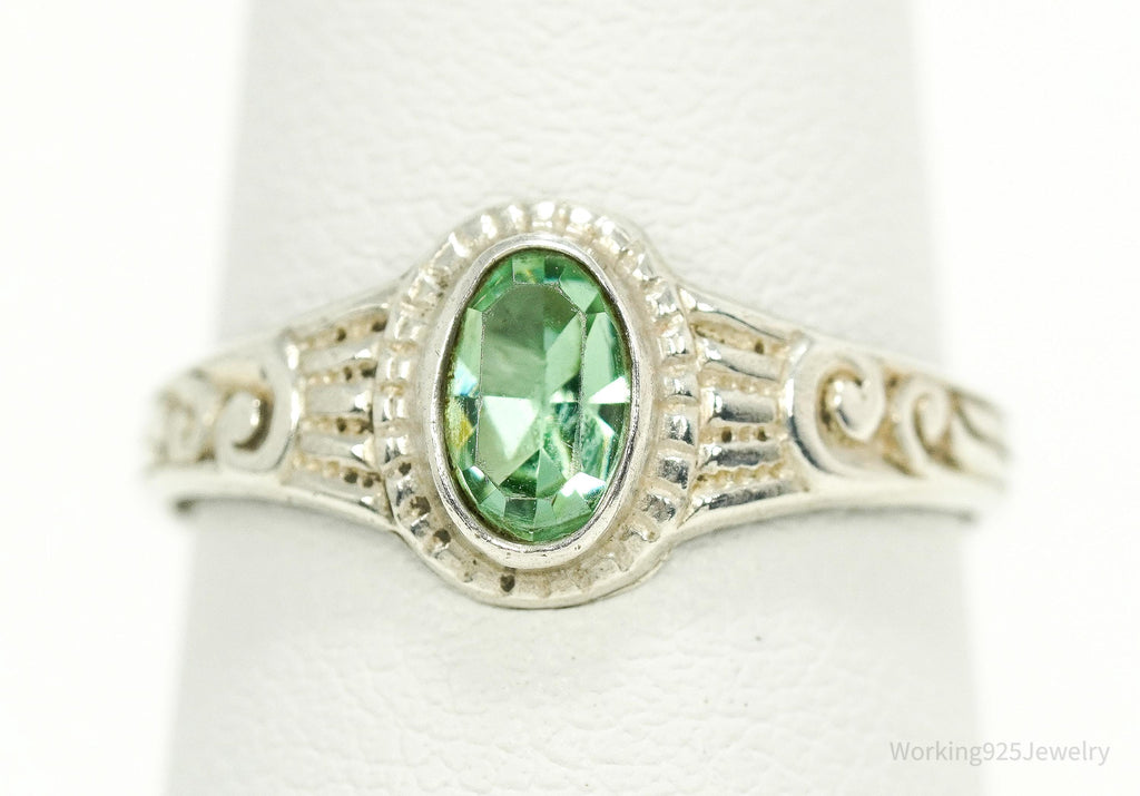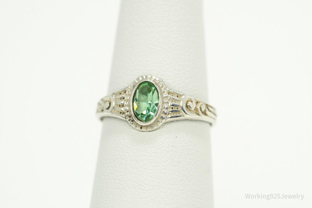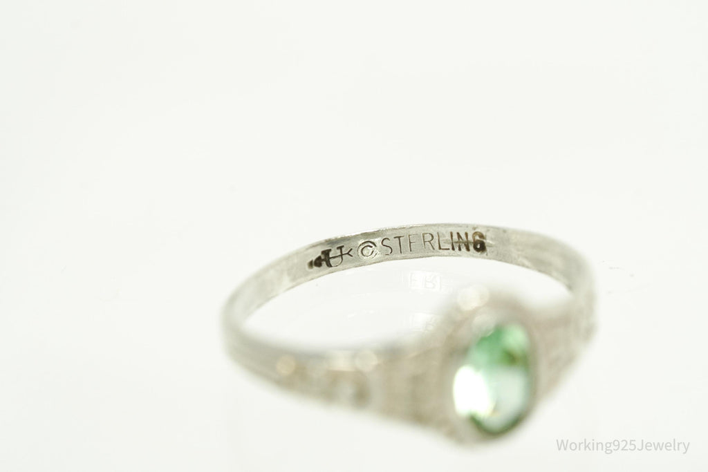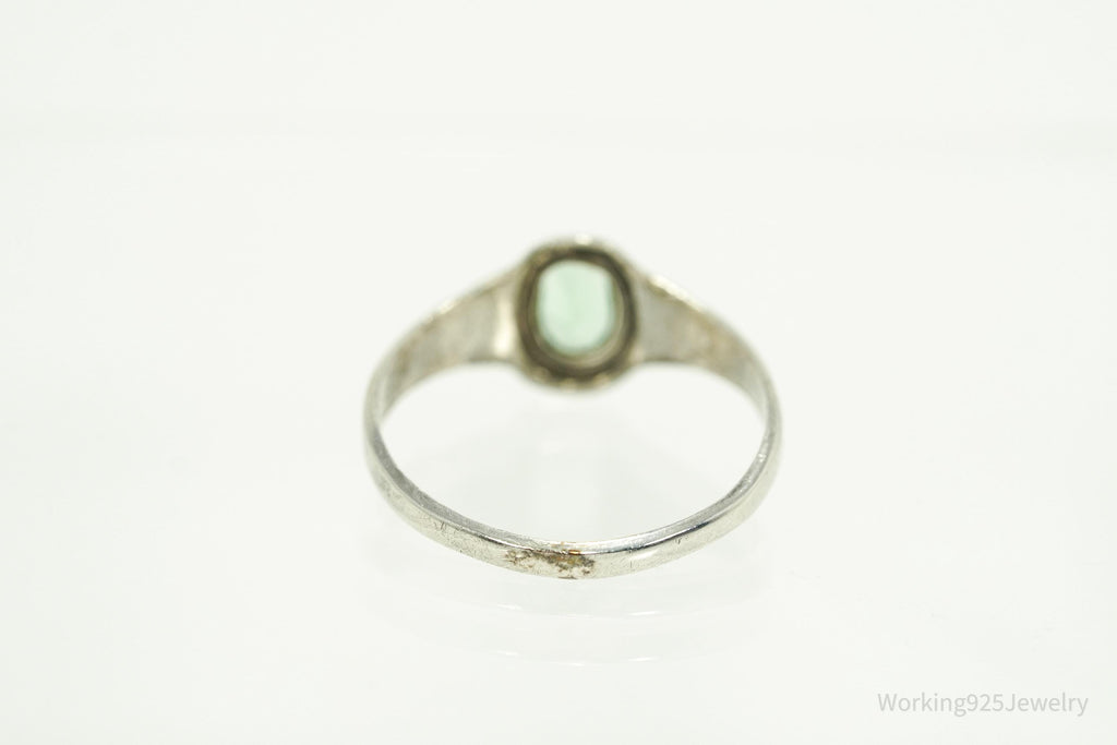 Antique Designer Uncas Green Glass Stone Sterling Silver Ring - Size 6