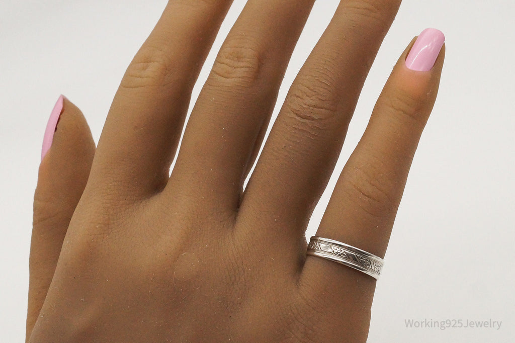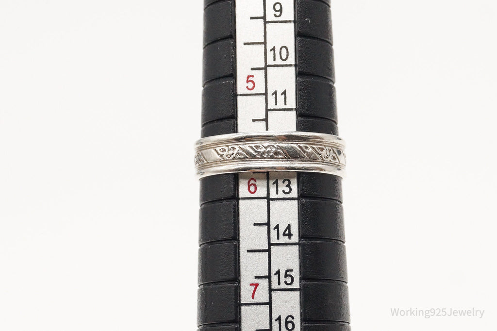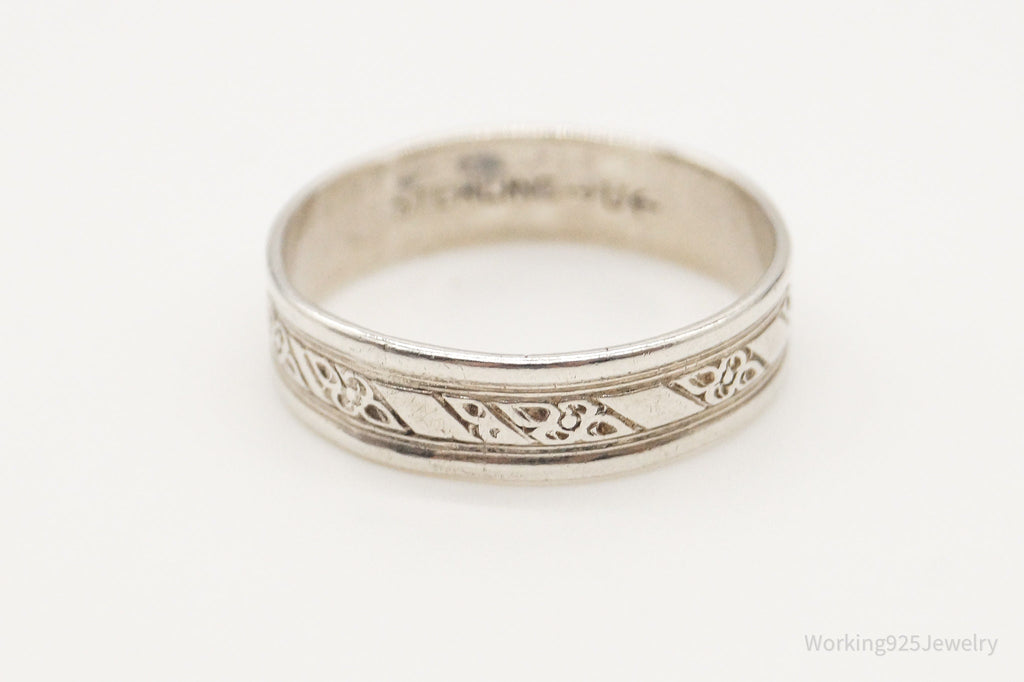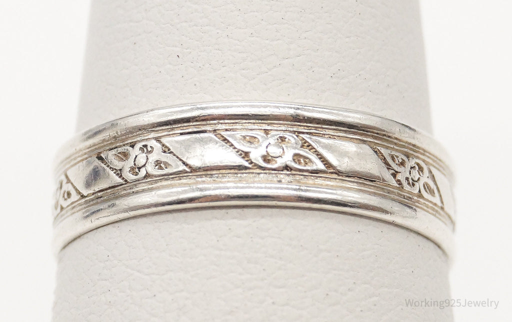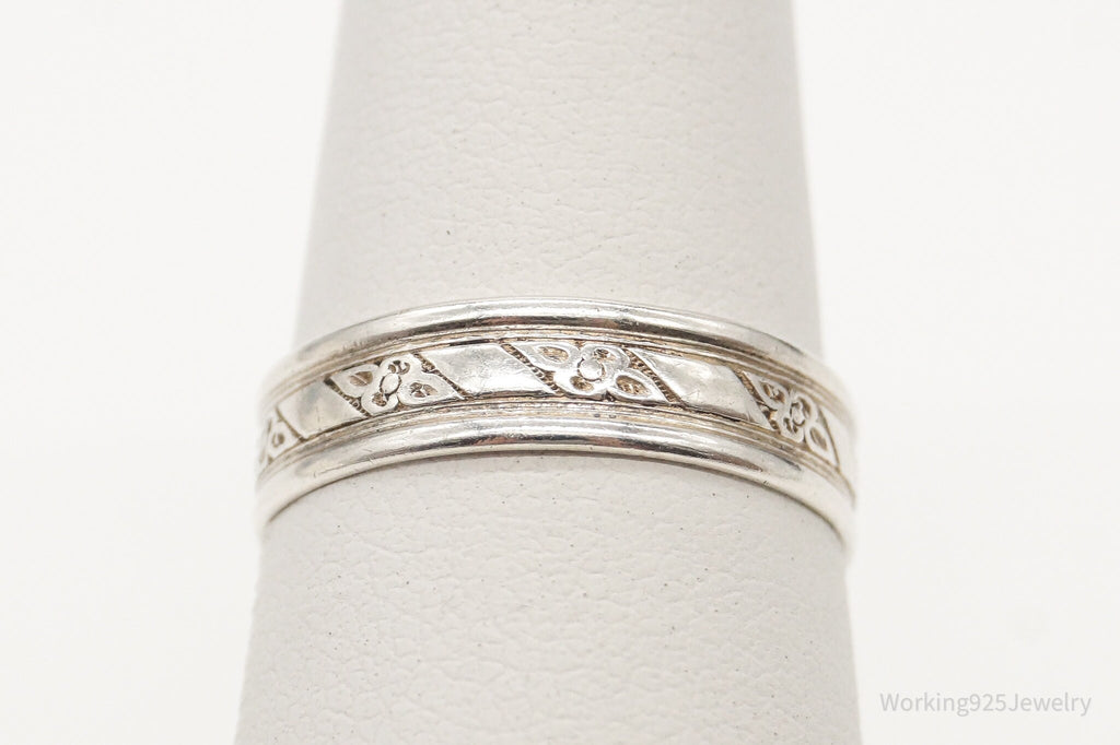 Antique Designer Uncas MFG Co Floral Sterling Silver Band Ring - Size 5.5