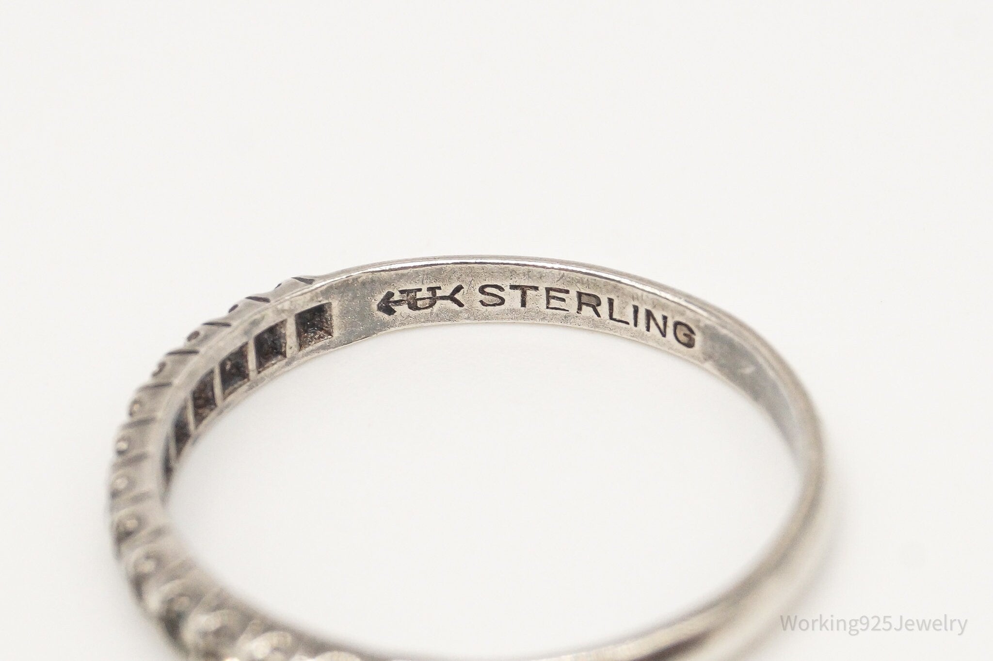 Antique Designer Uncas Rhinestone Sterling Silver Ring - Size 7.75