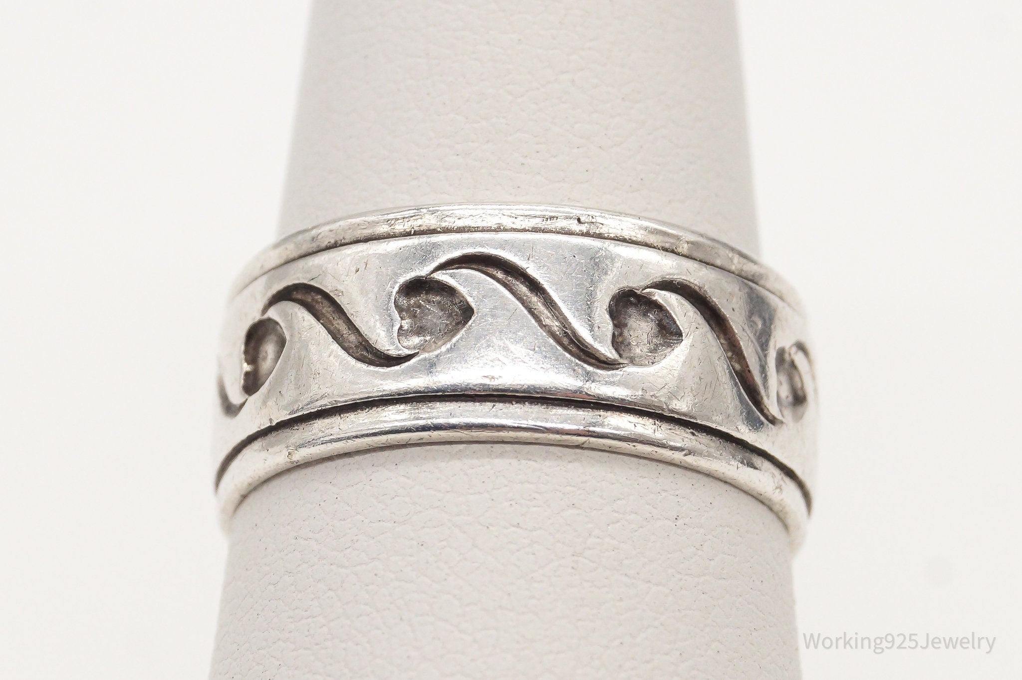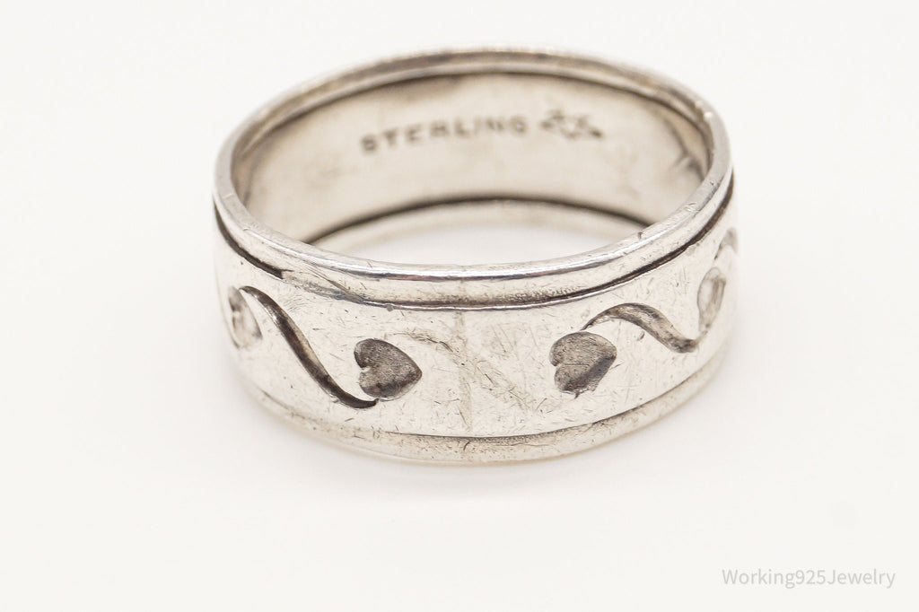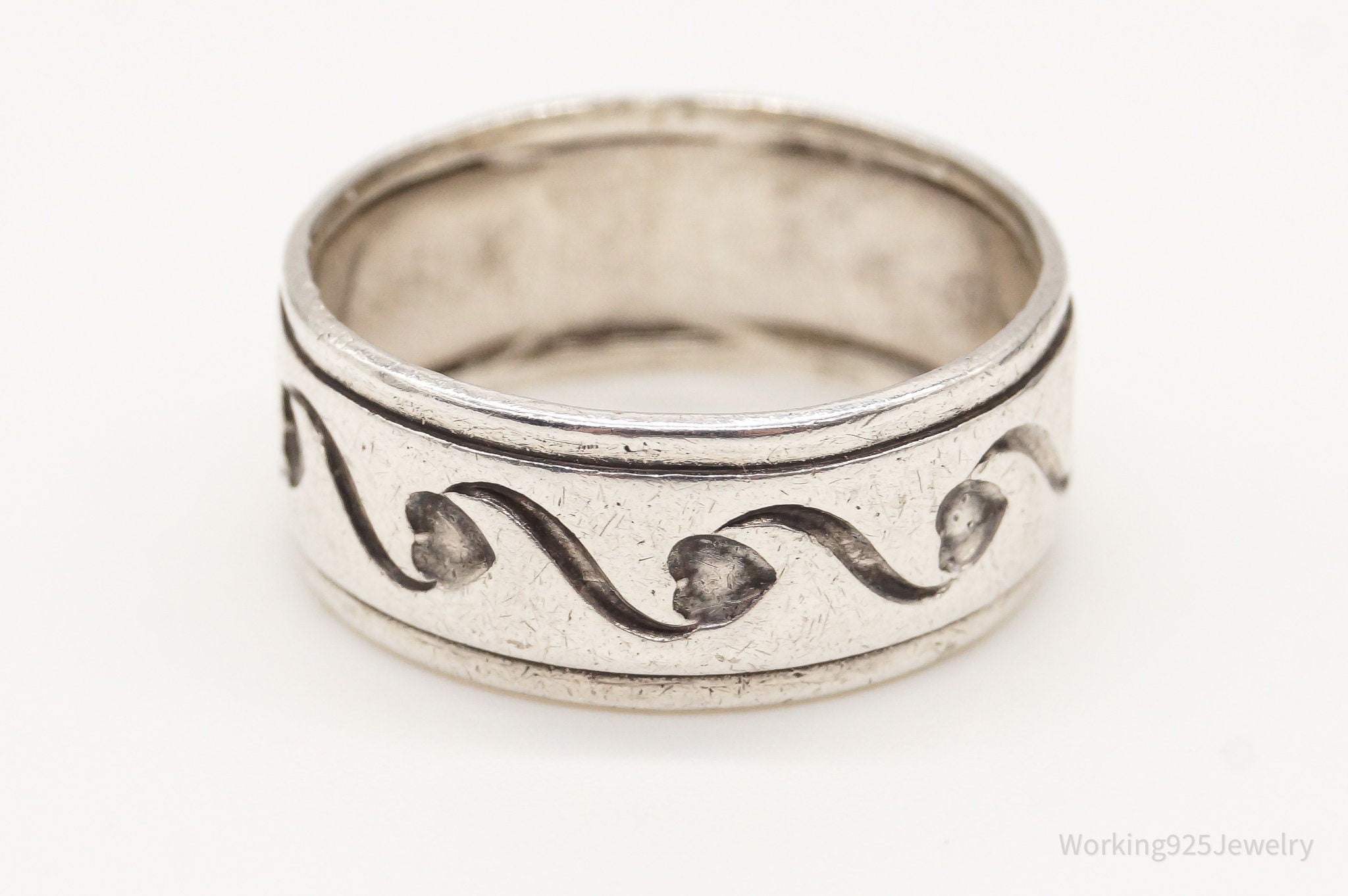 Antique Designer Vargas Hearts Pattern Sterling Silver Band Ring - Size 7