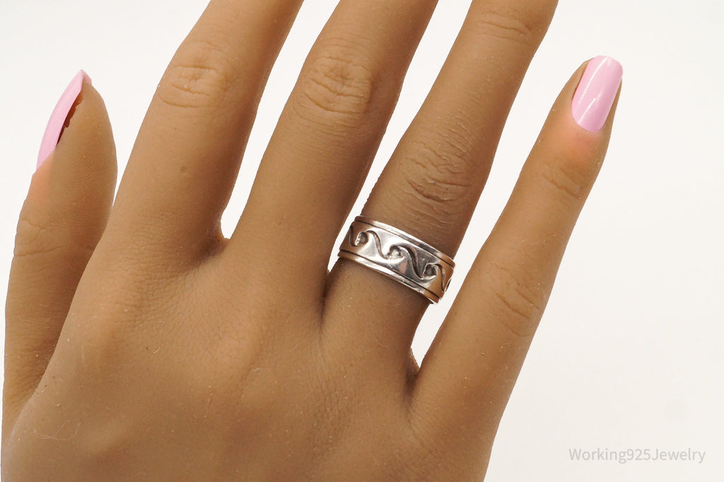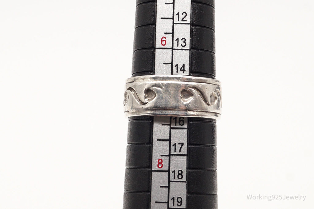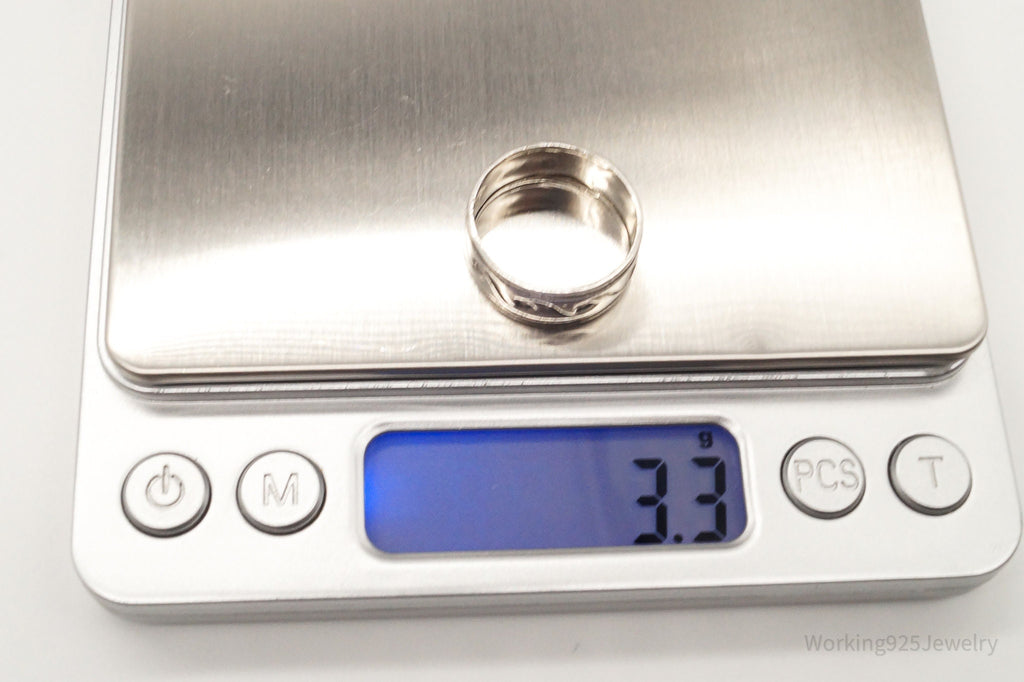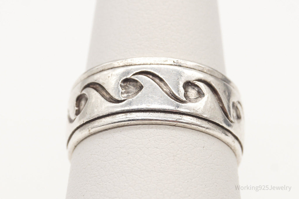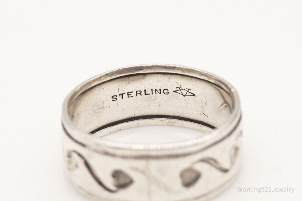 Antique Designer Vargas Hearts Pattern Sterling Silver Band Ring - Size 7