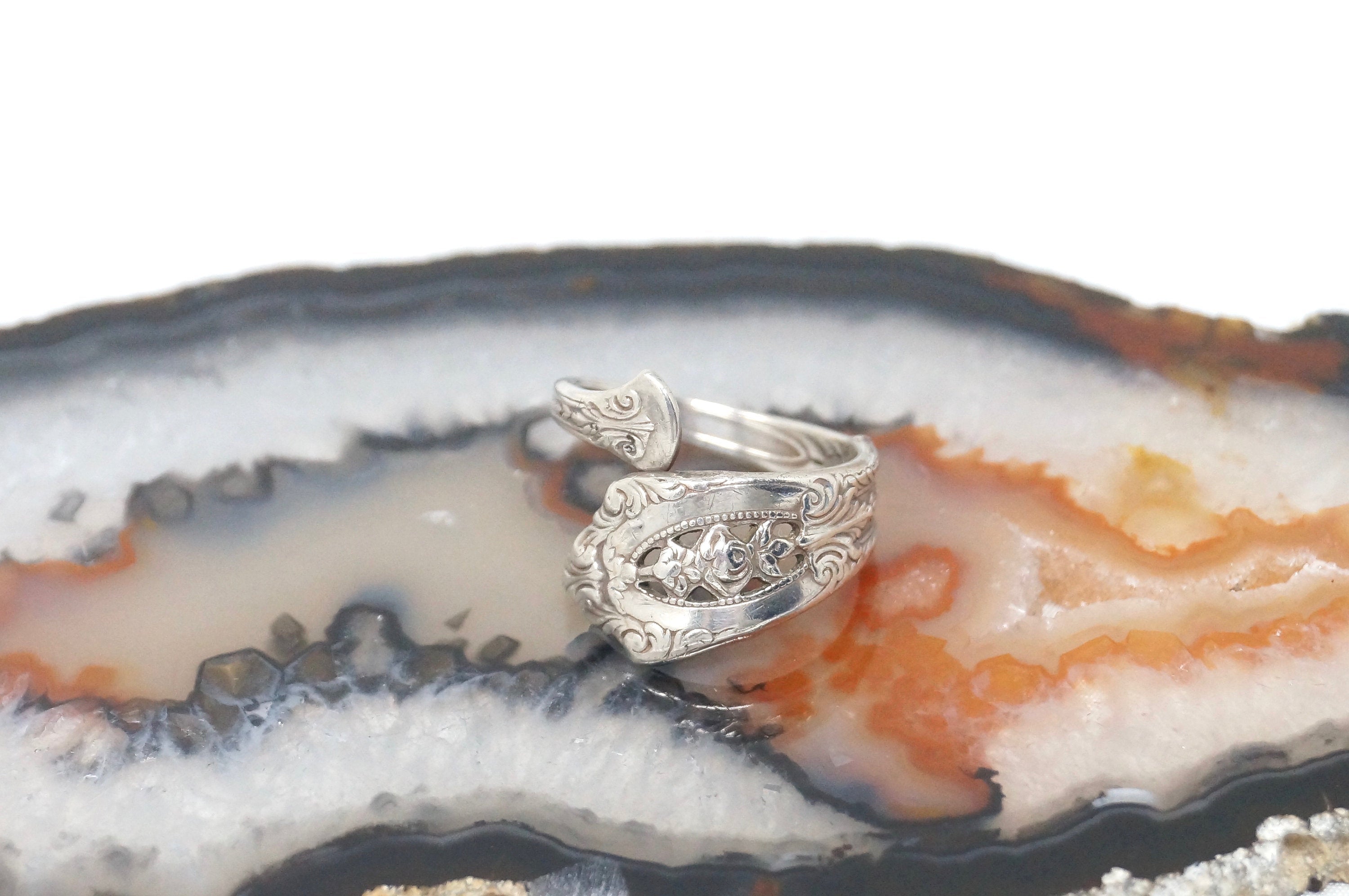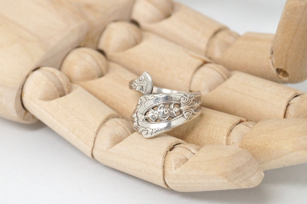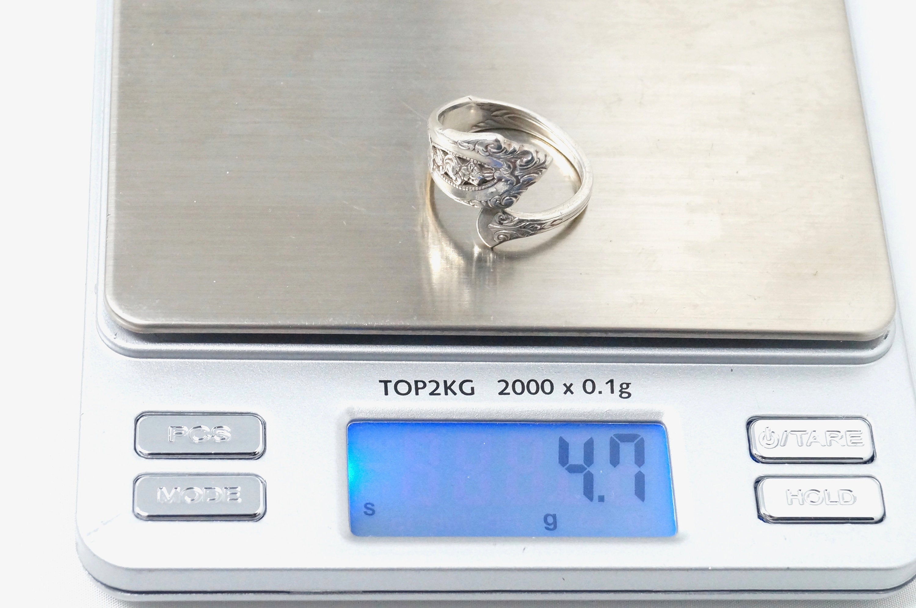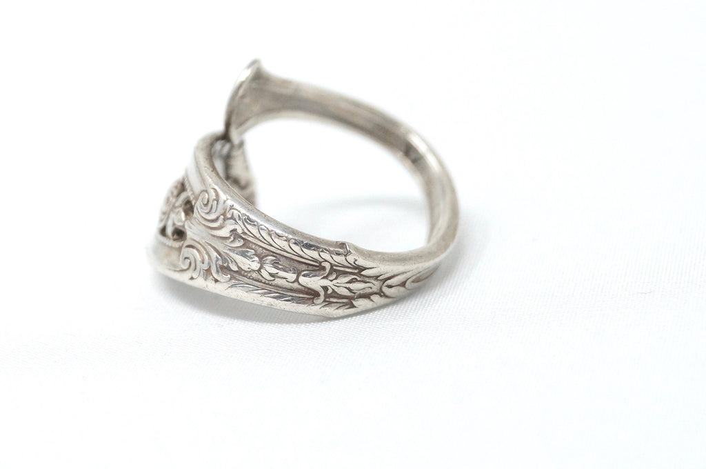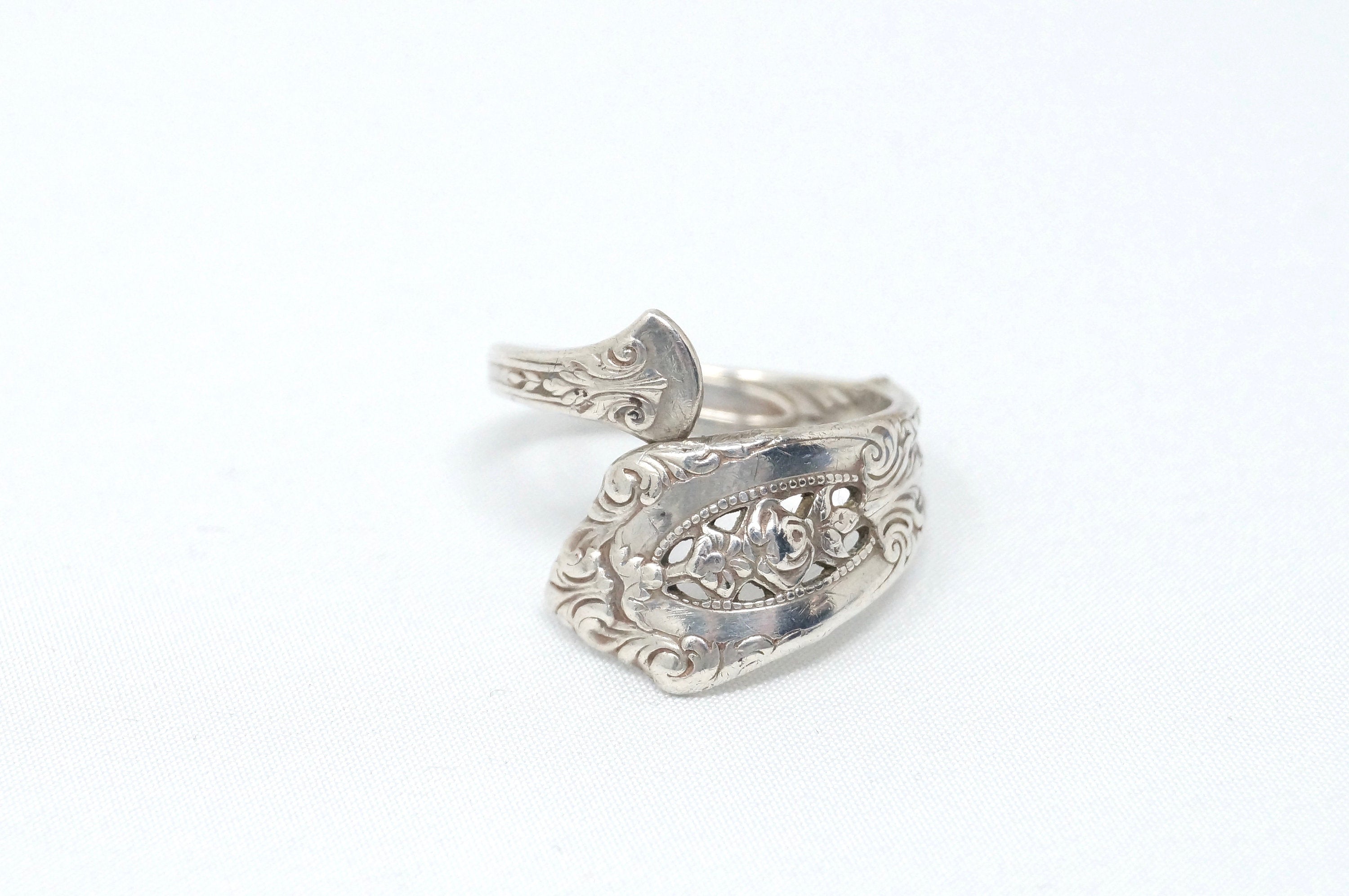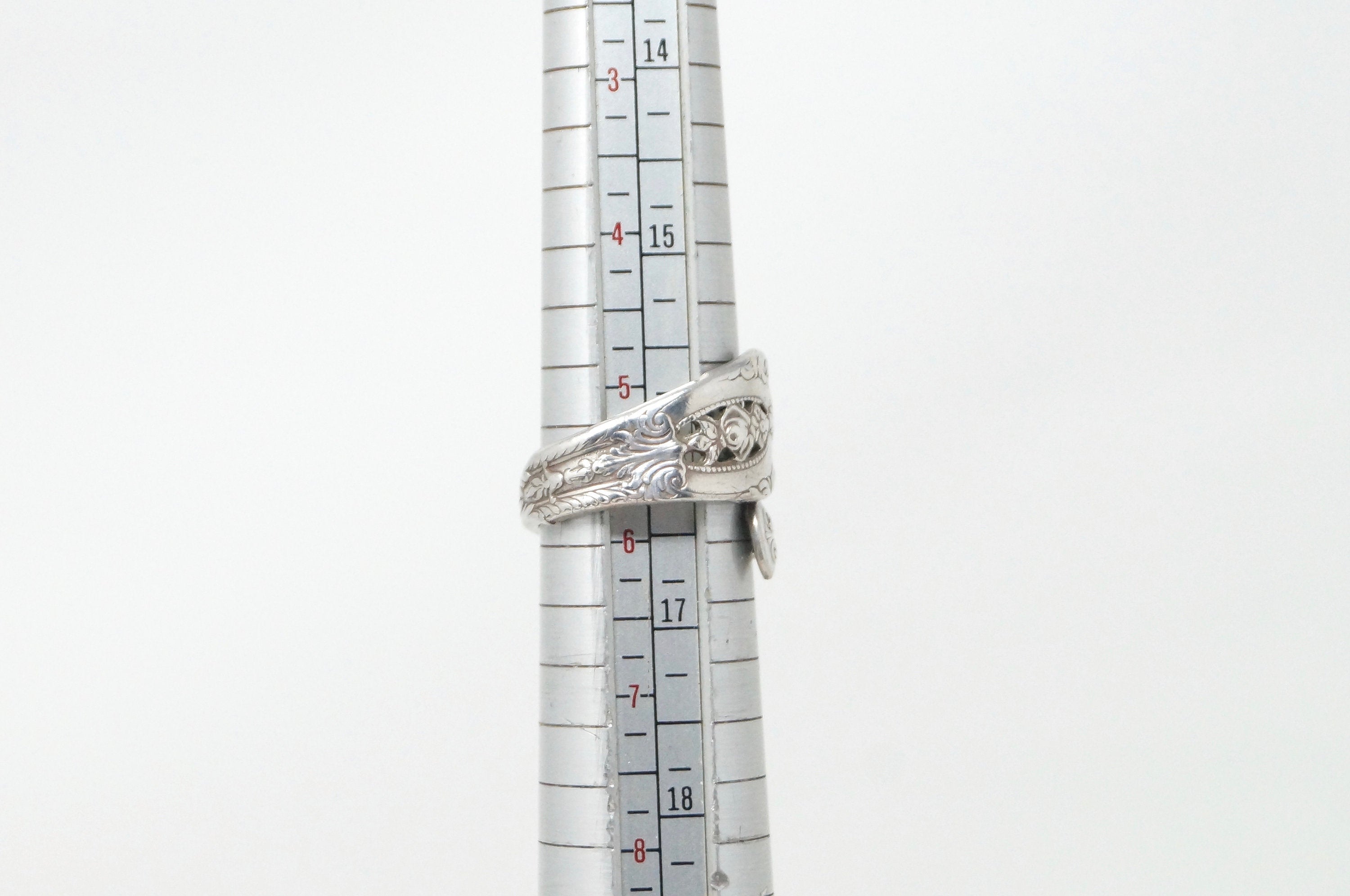 Antique Designer Wallace Repousse Floral Sterling Silver Wrap Spoon Ring Sz 5.5