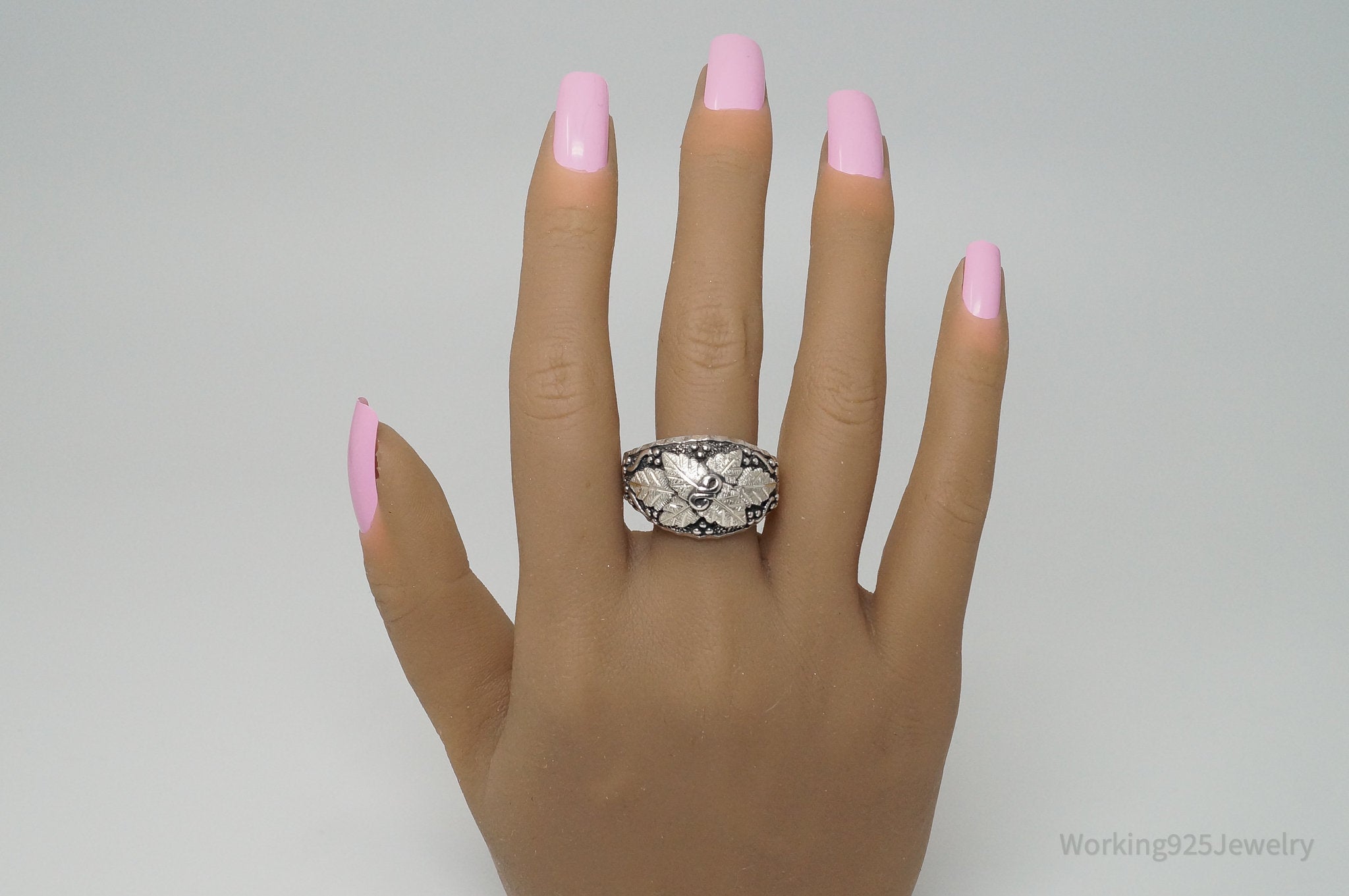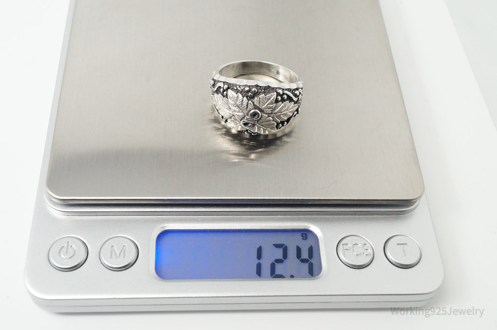 Antique Designer WM Co Grape Vine Sterling Silver Ring - Size 12