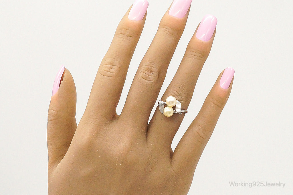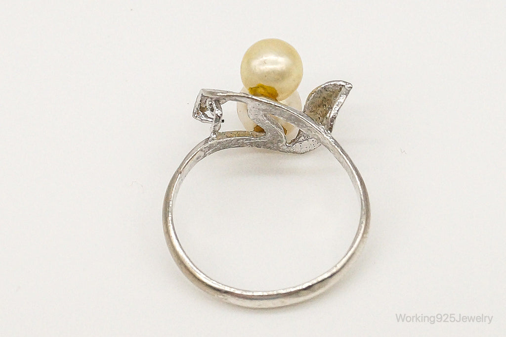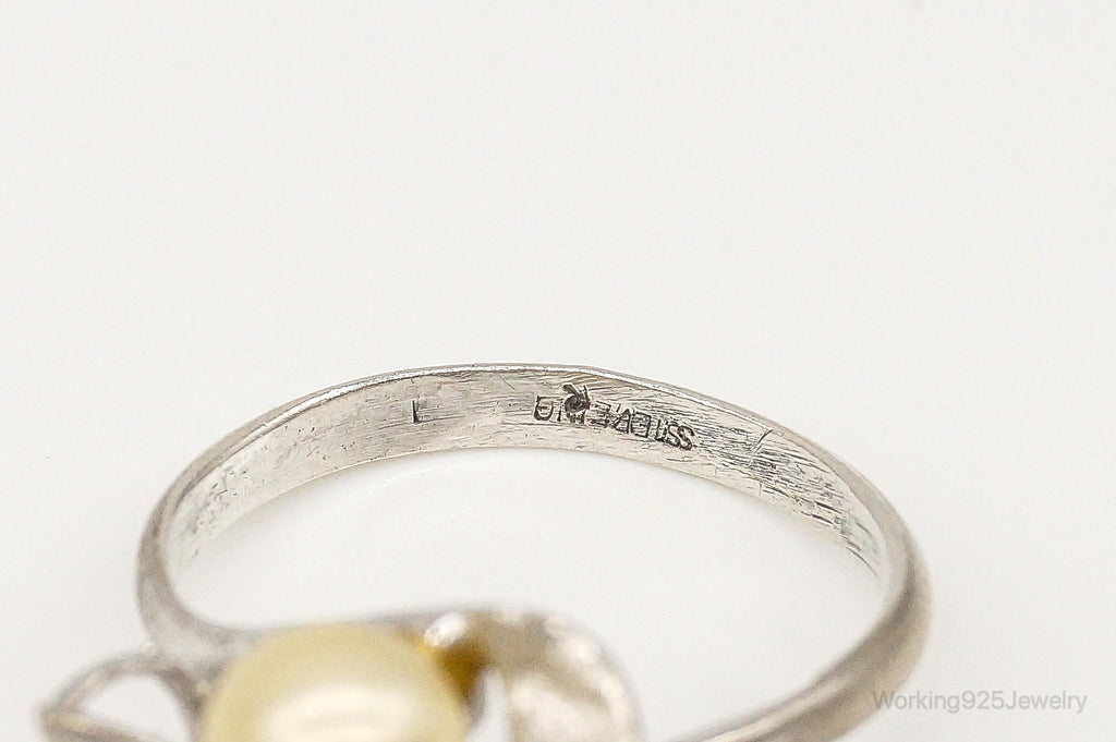 Antique Faux Pearl Sterling Silver Ring - Size 7