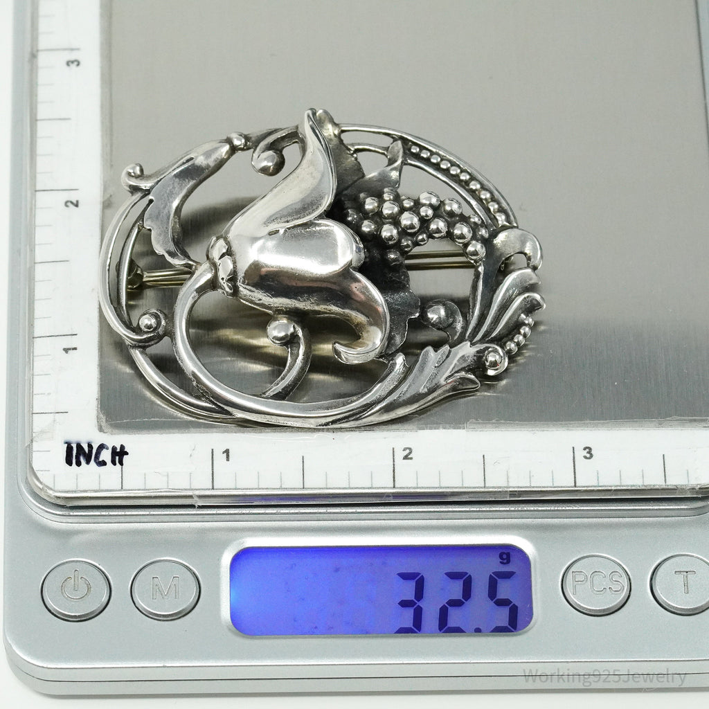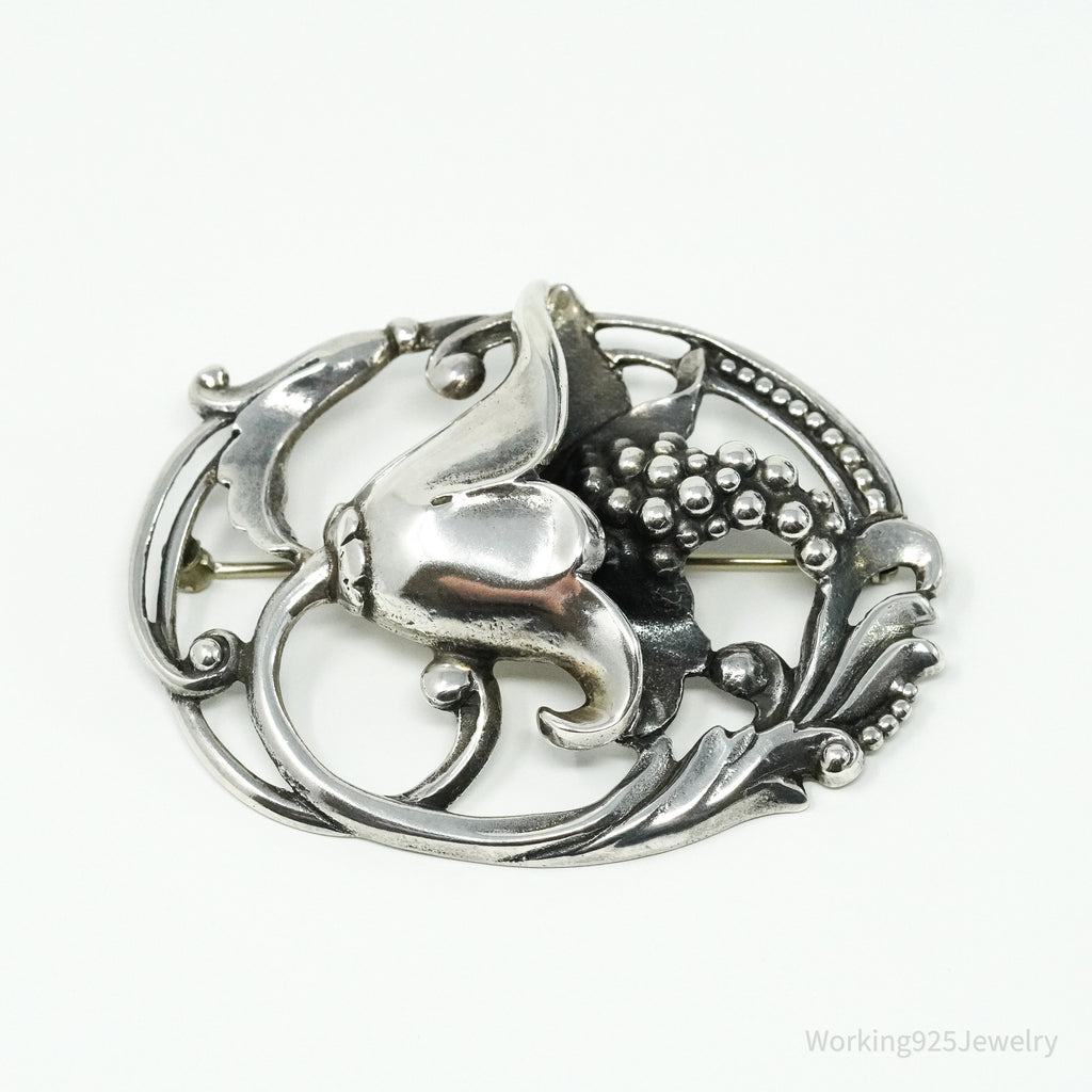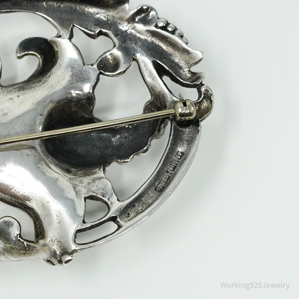 Antique Floral Sterling Silver Brooch Pin 2.5"