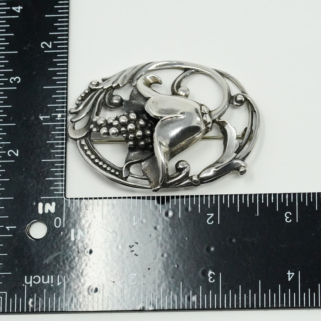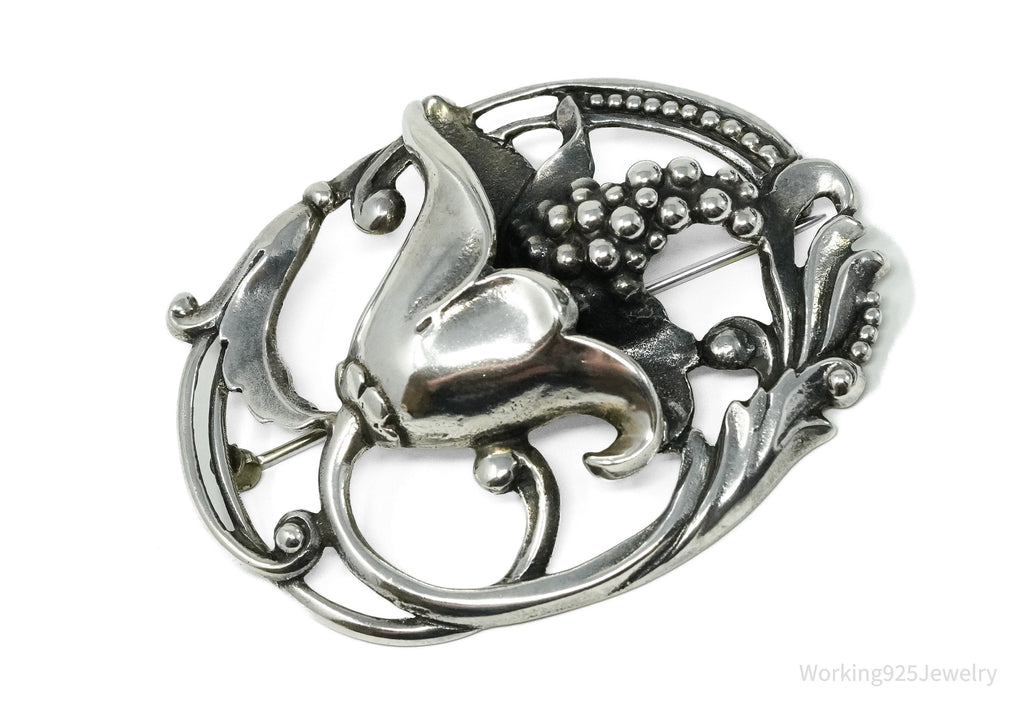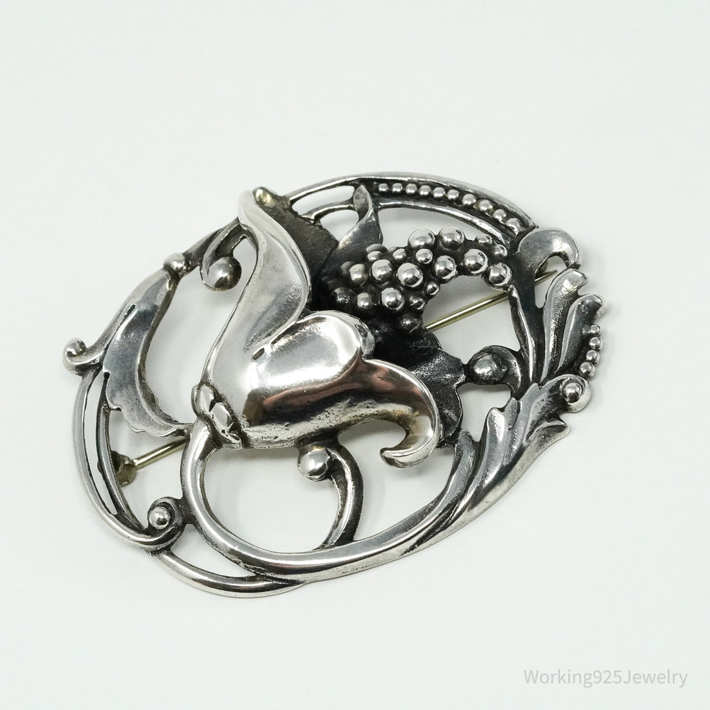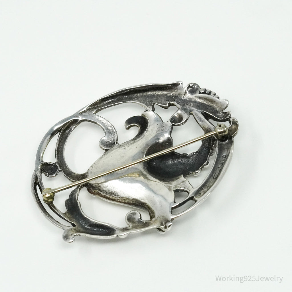 Antique Floral Sterling Silver Brooch Pin 2.5"