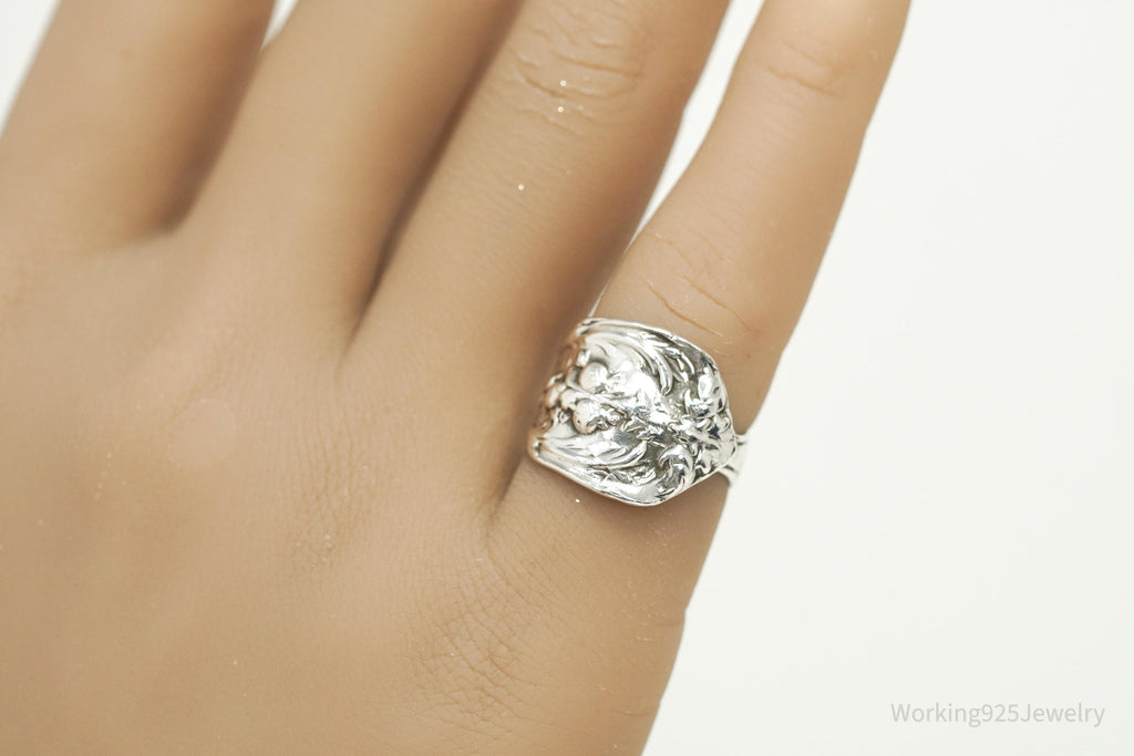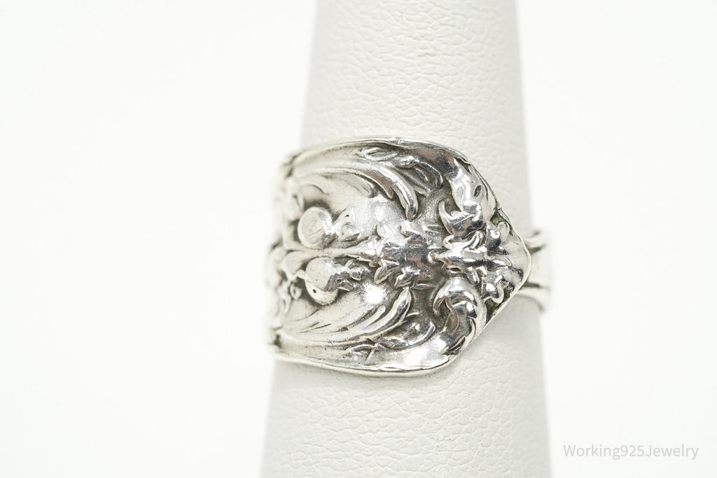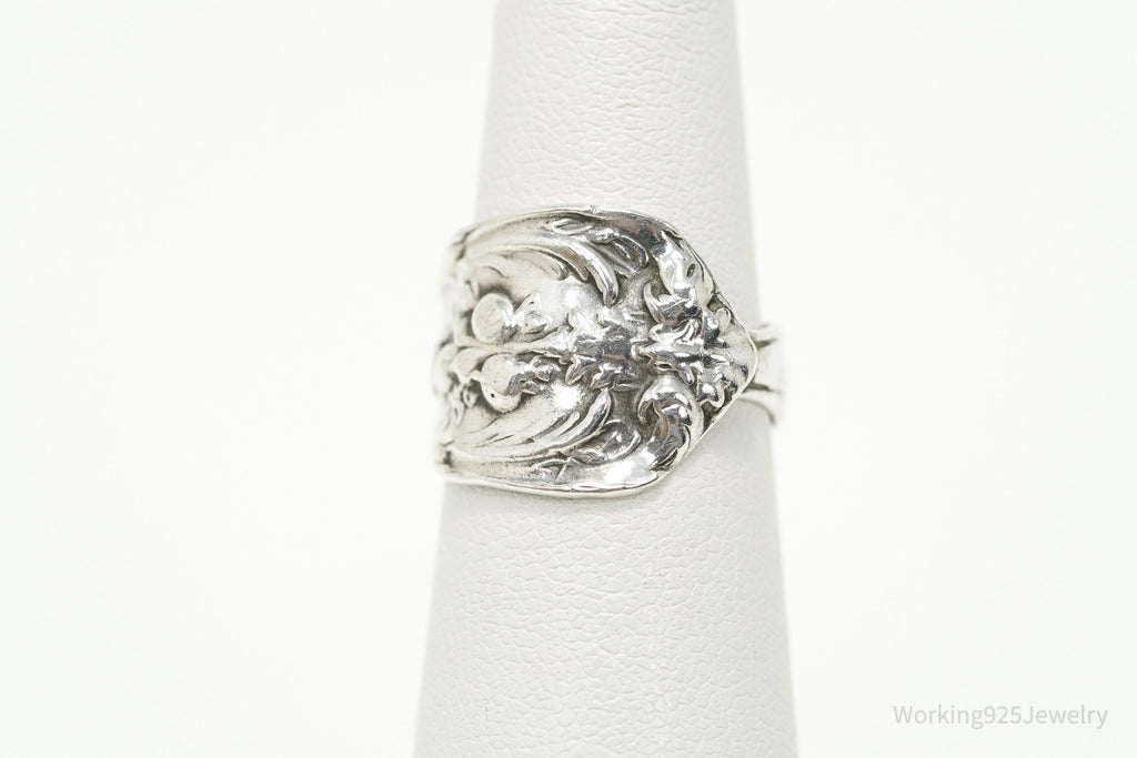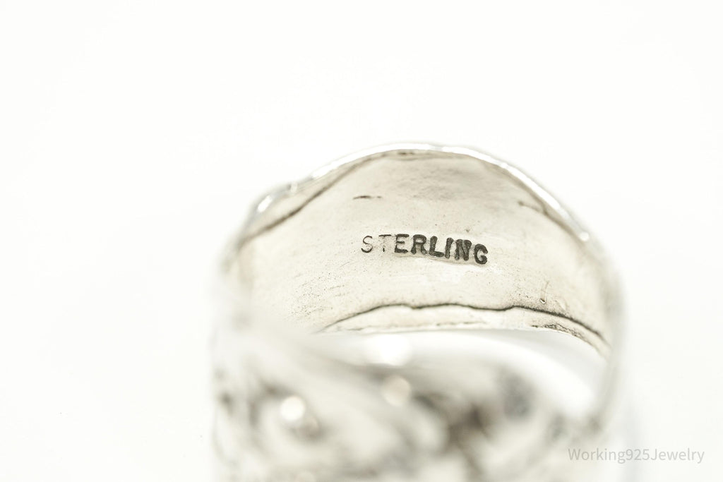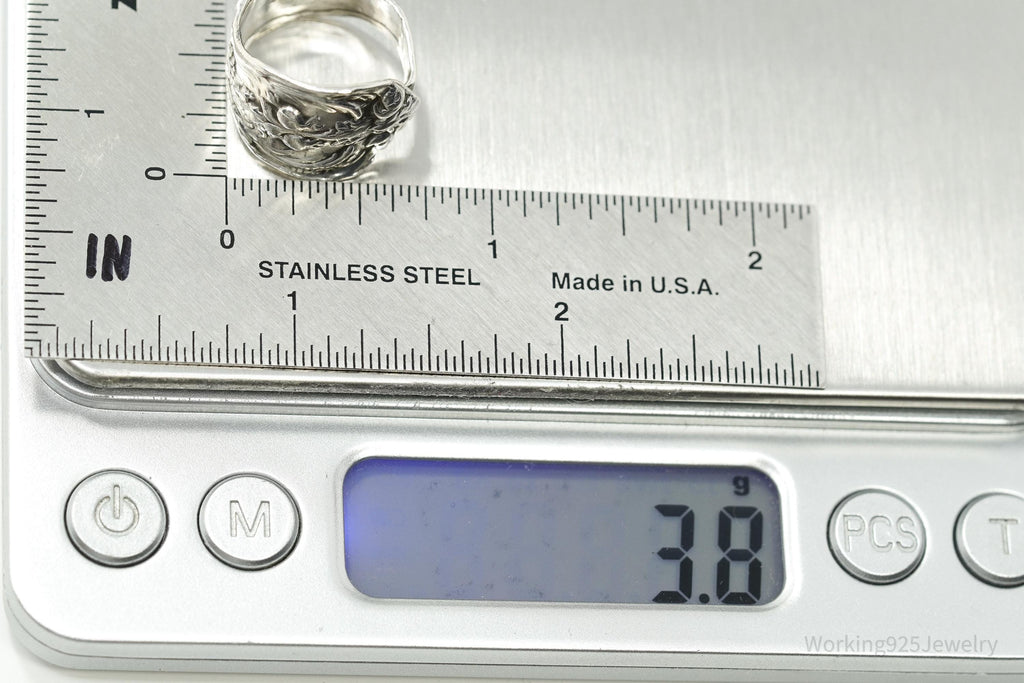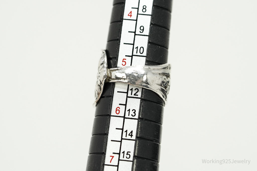 Antique Floral Sterling Silver Spoon Ring - Size 5.25