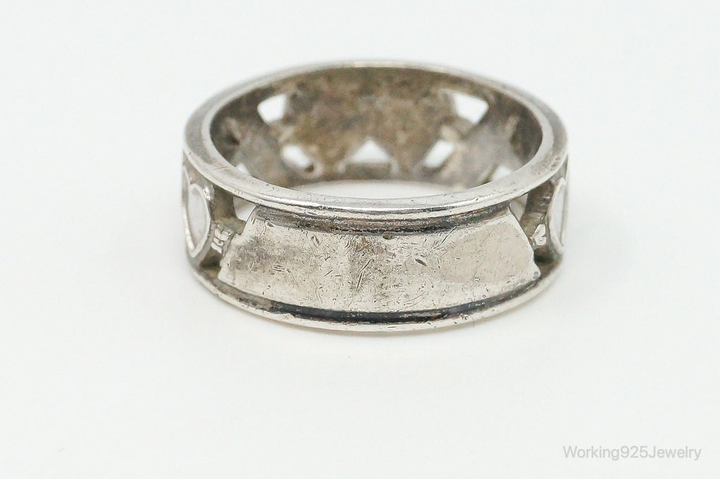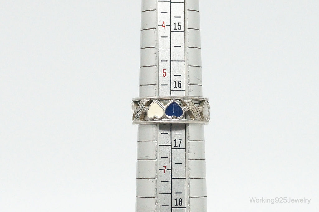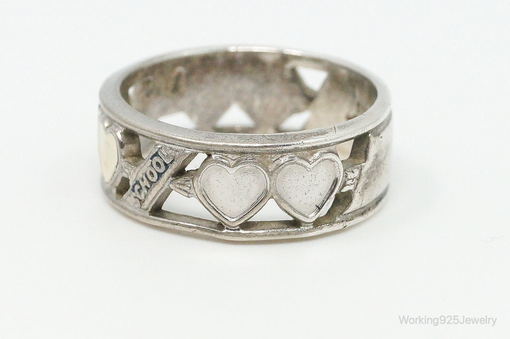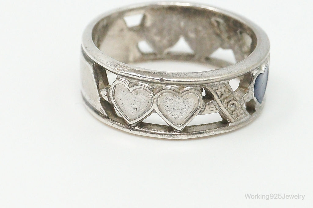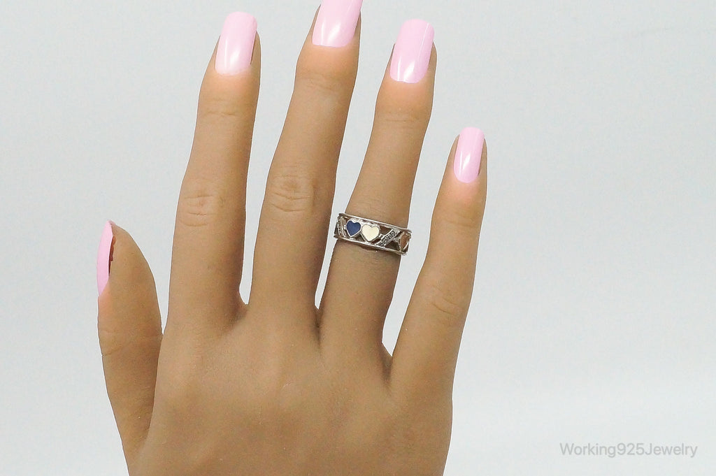 Antique Gainsboro Enamel Hearts High School Sterling Silver Ring - Size 6