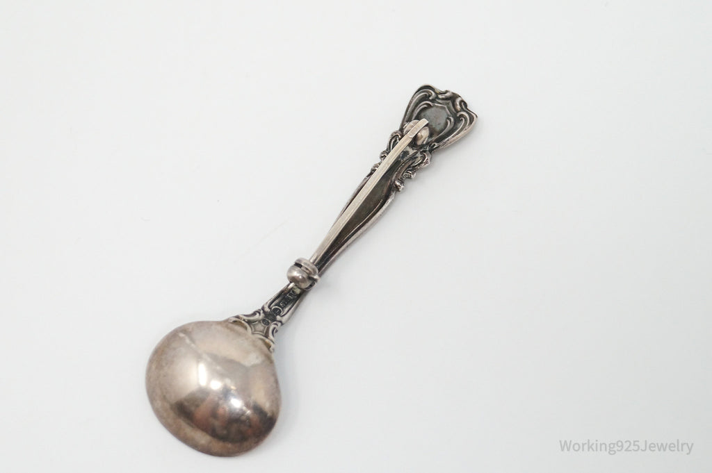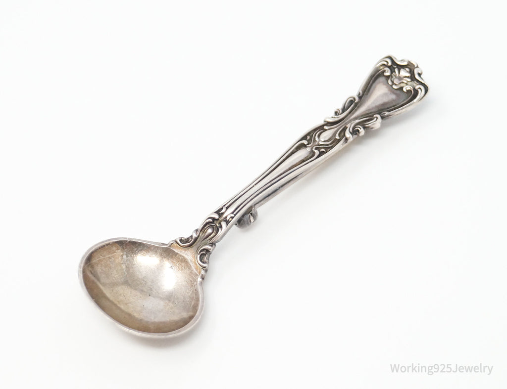 Antique GORHAM Floral Spoon Sterling Silver Brooch Pin