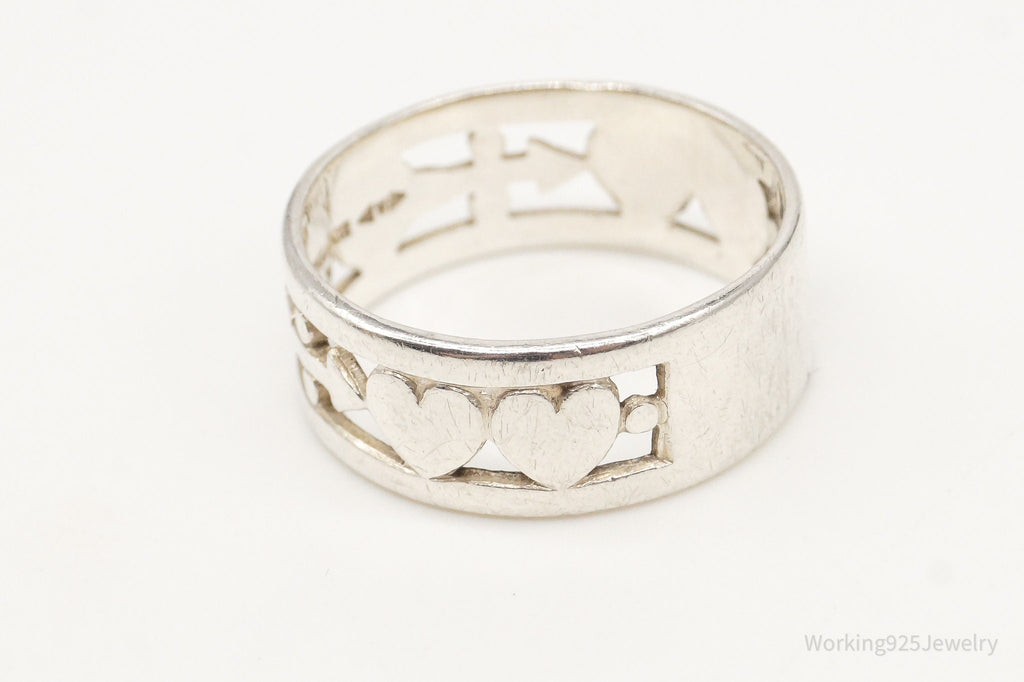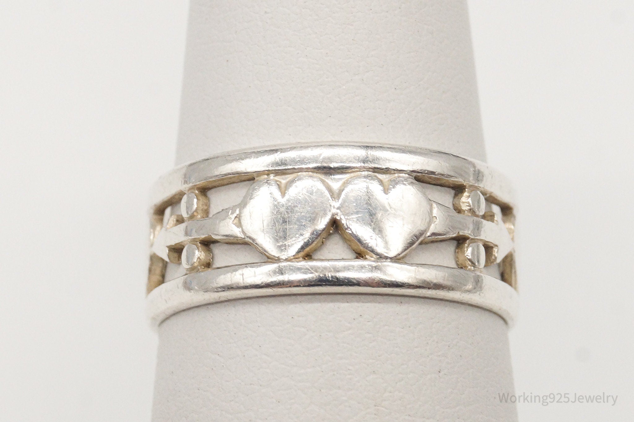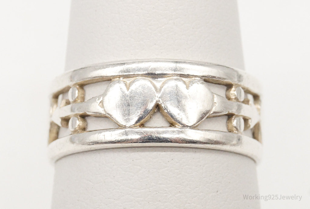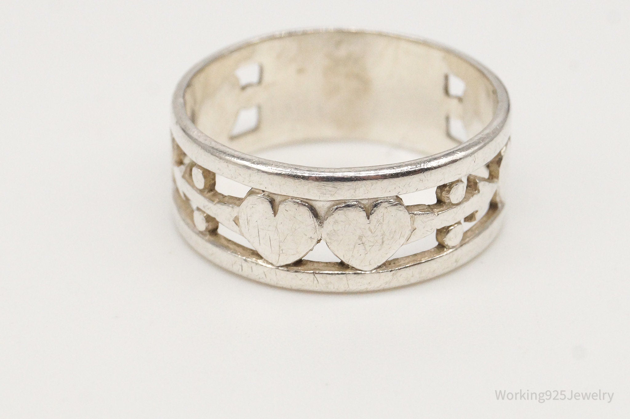Antique Hearts Sterling Silver Band Ring - Size 6.75