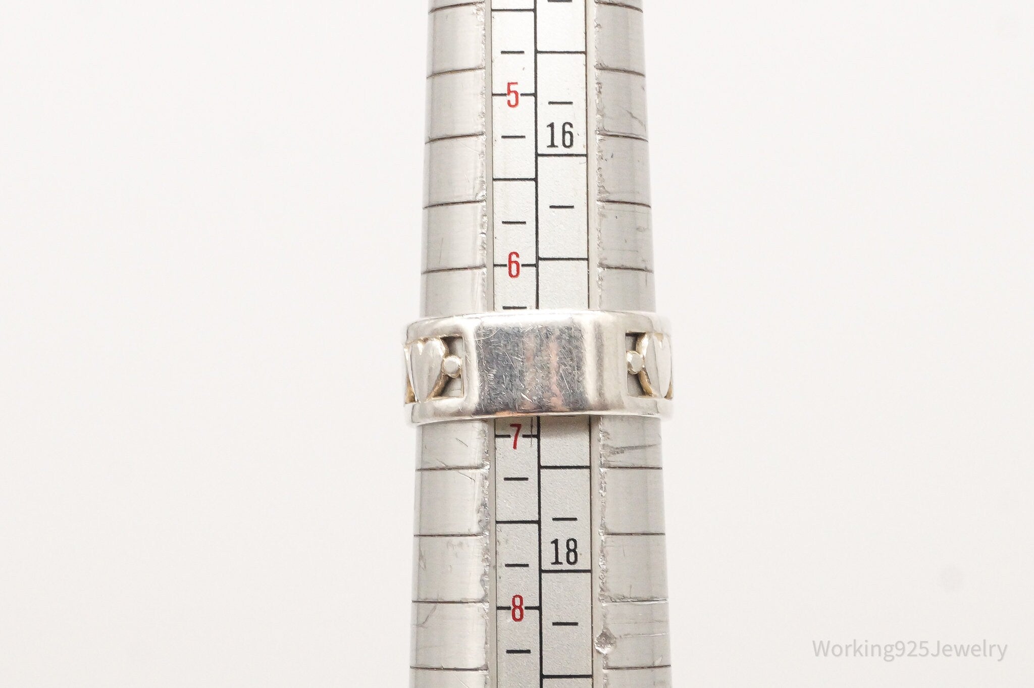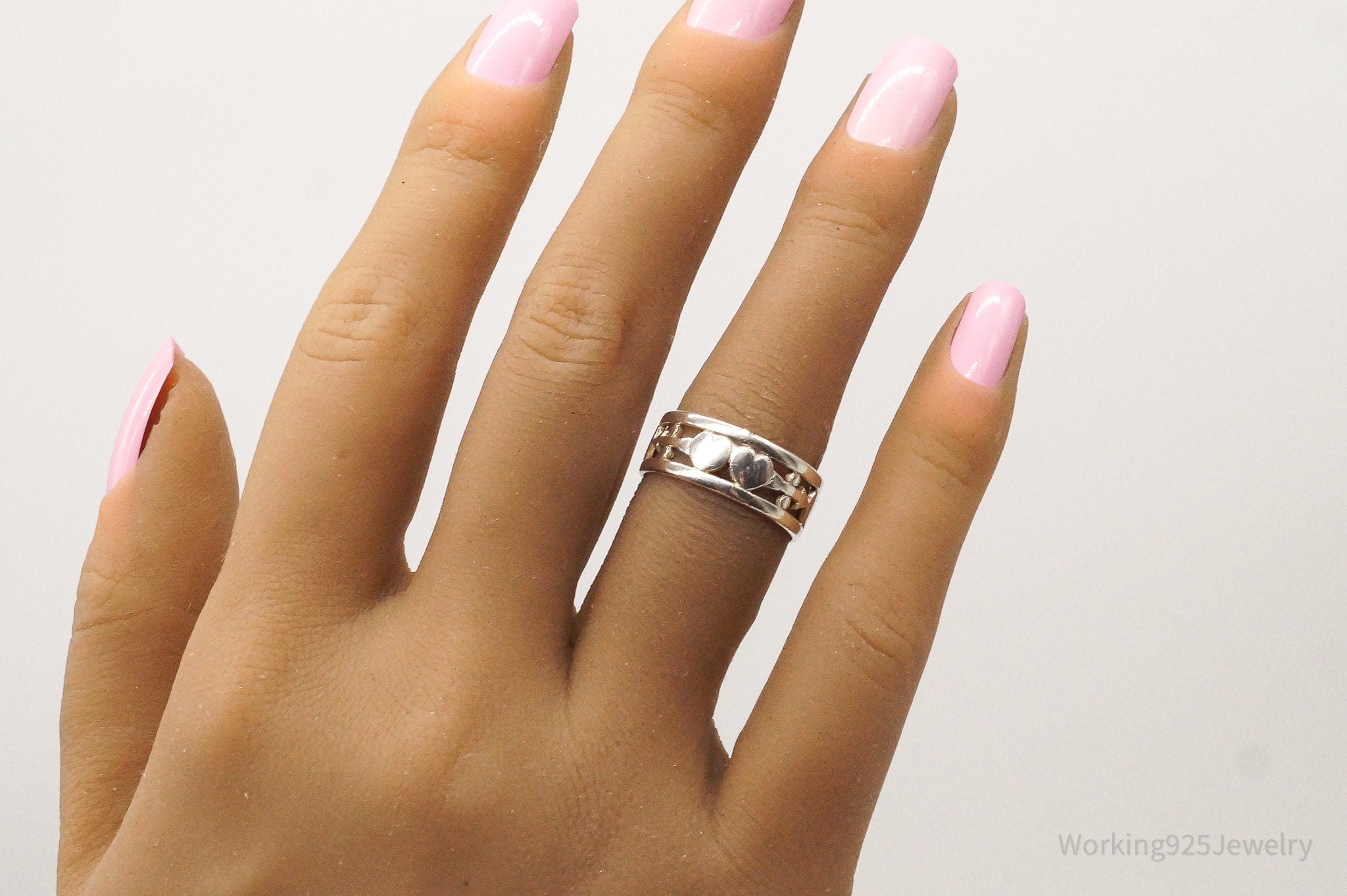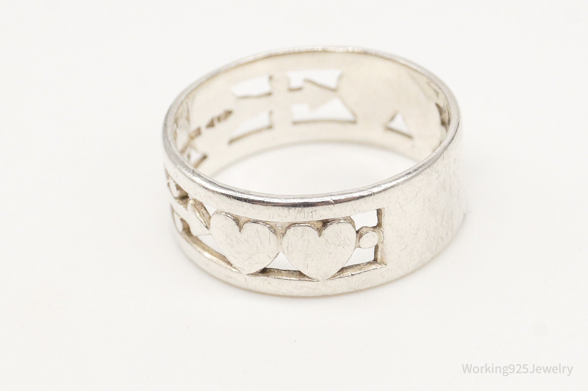 Antique Hearts Sterling Silver Band Ring - Size 6.75