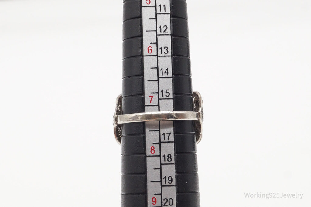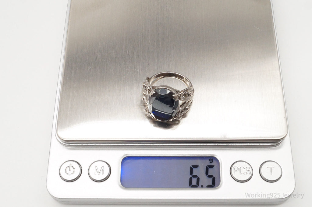Antique Hematite Filigree Silver Ring - Size 7.25