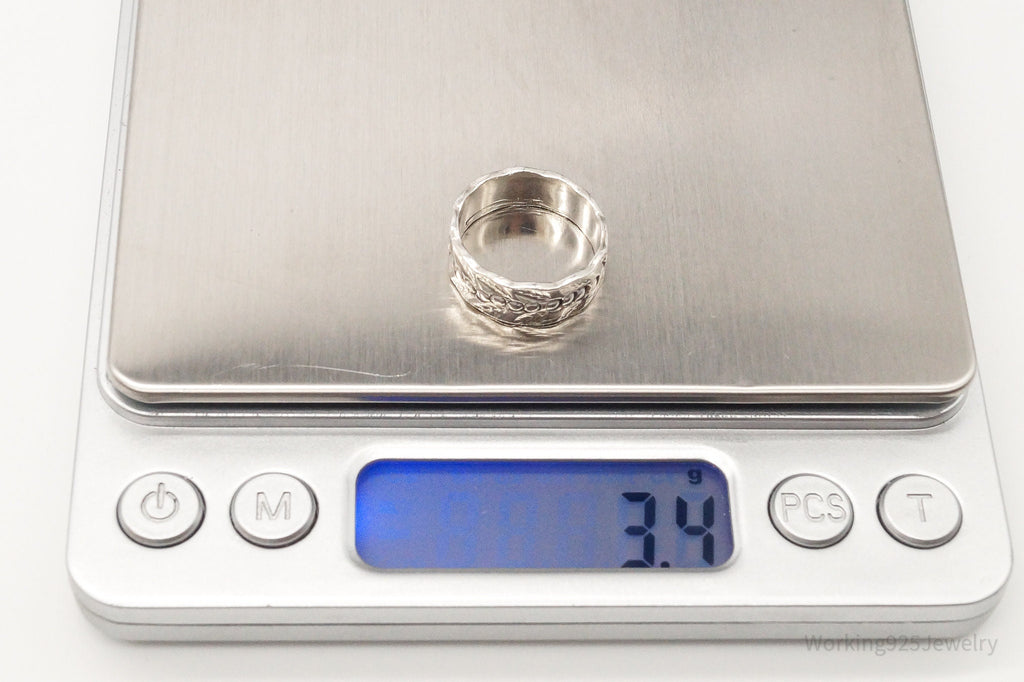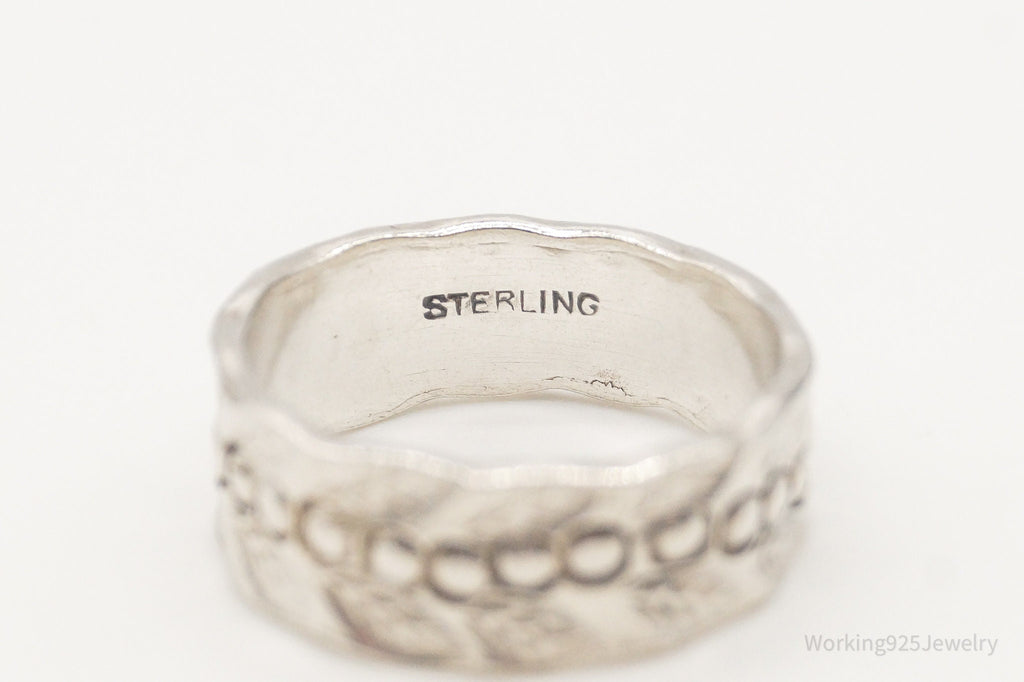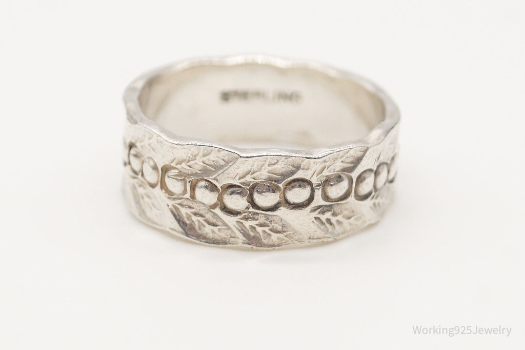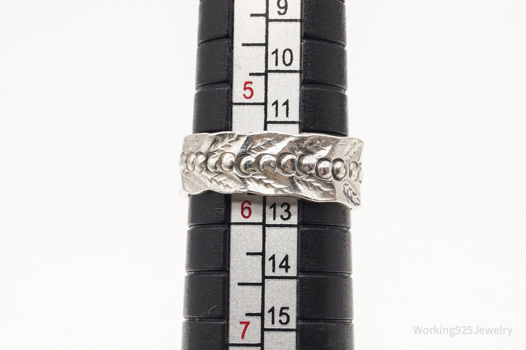 Antique Holly Floral Pattern Sterling Silver Band Ring - Size 5.75