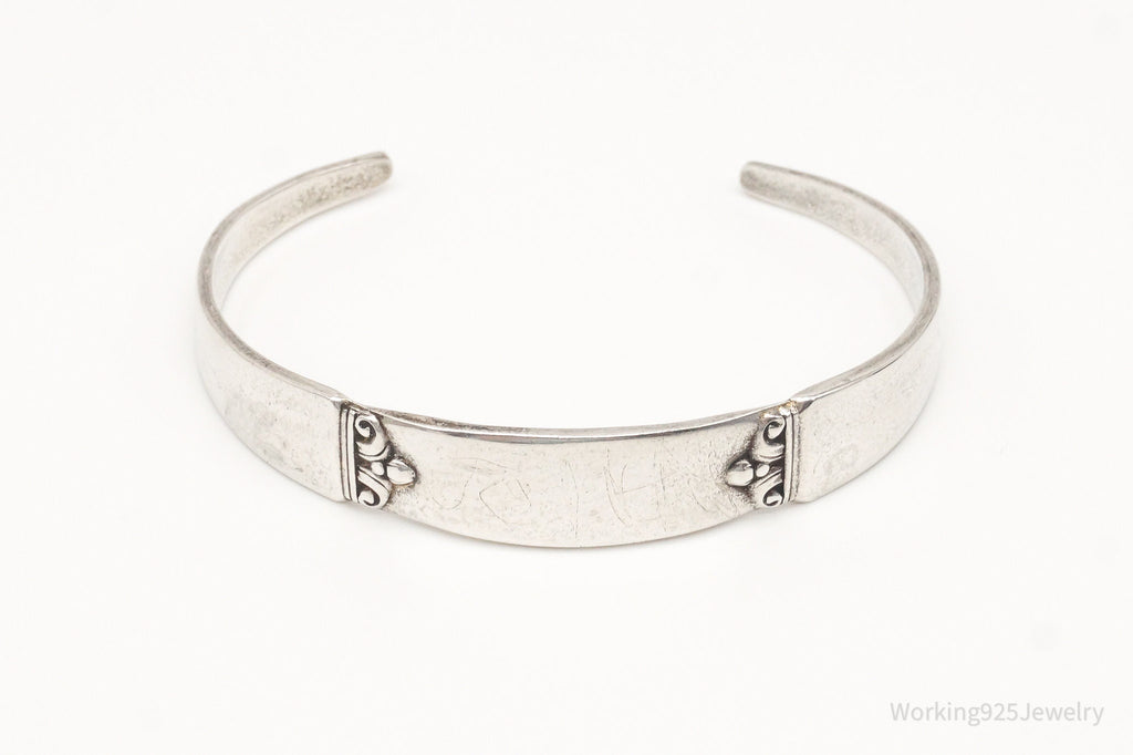 Antique Initials Name Plate Sterling Silver Cuff Bracelet