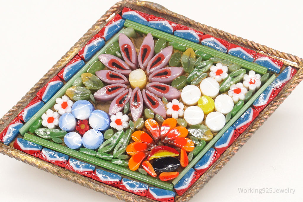 Antique Italian Micro Mosaic Flowers Brooch Pin