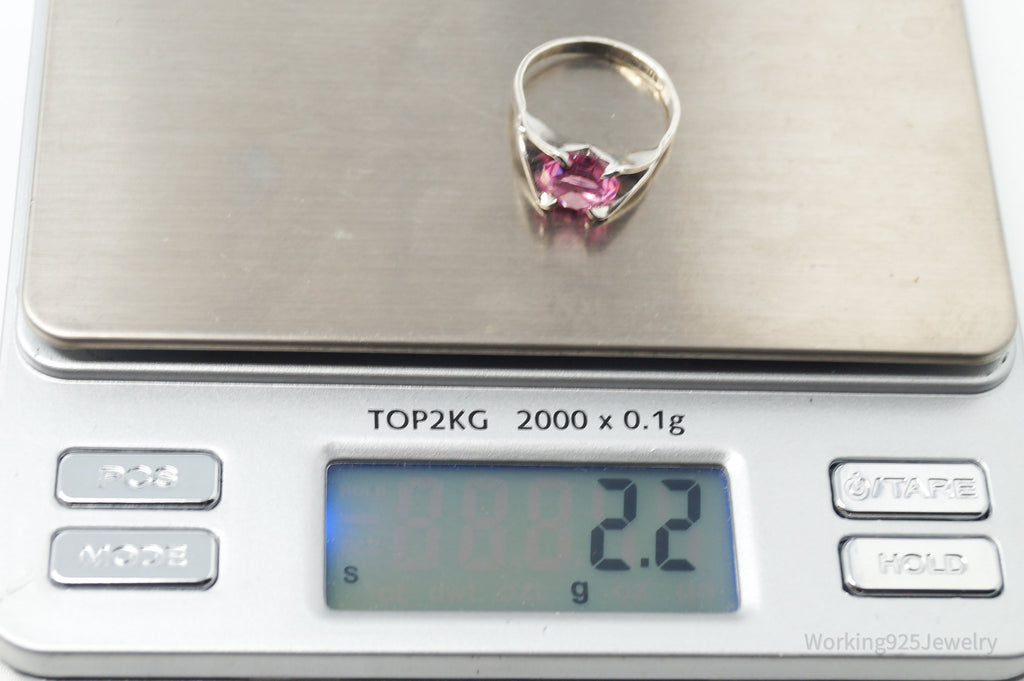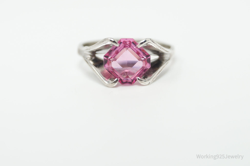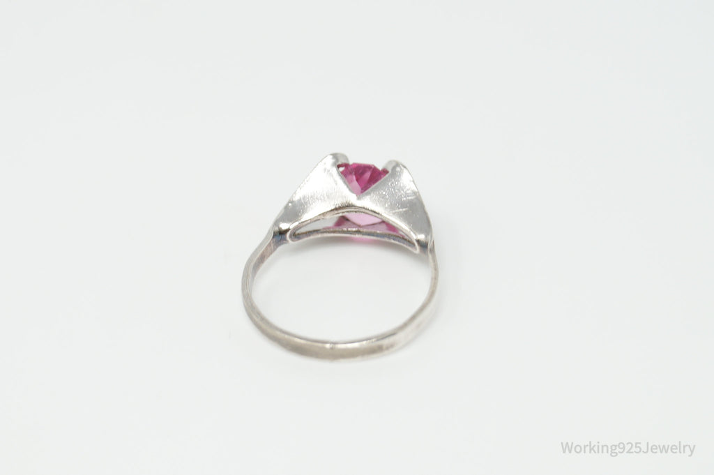 Antique Joseph Esposito Espo Pink Art Glass Sterling Silver Ring Size 4.75