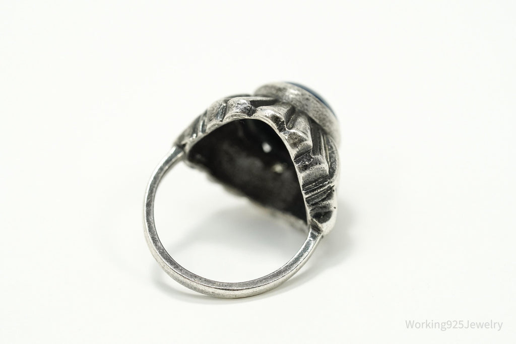 Antique Lapis Lazuli Sterling Silver Ring Size 3.75