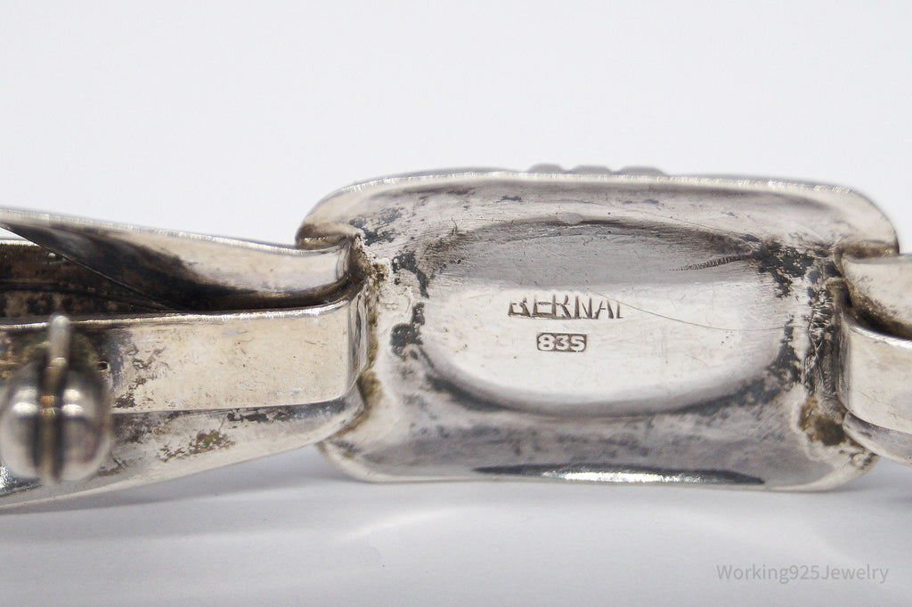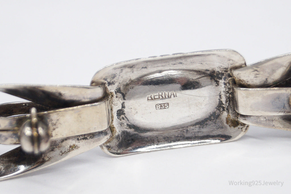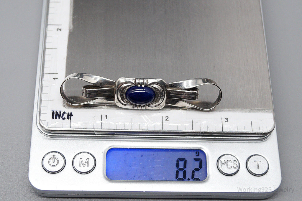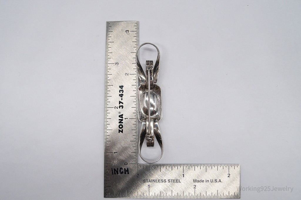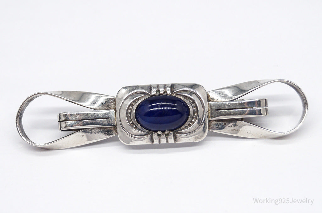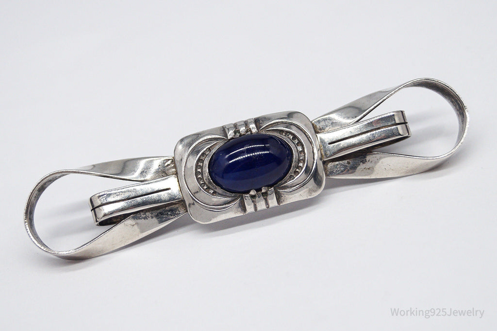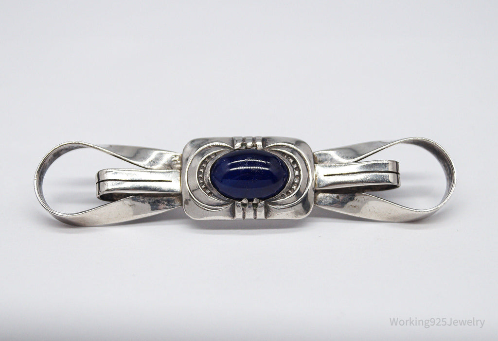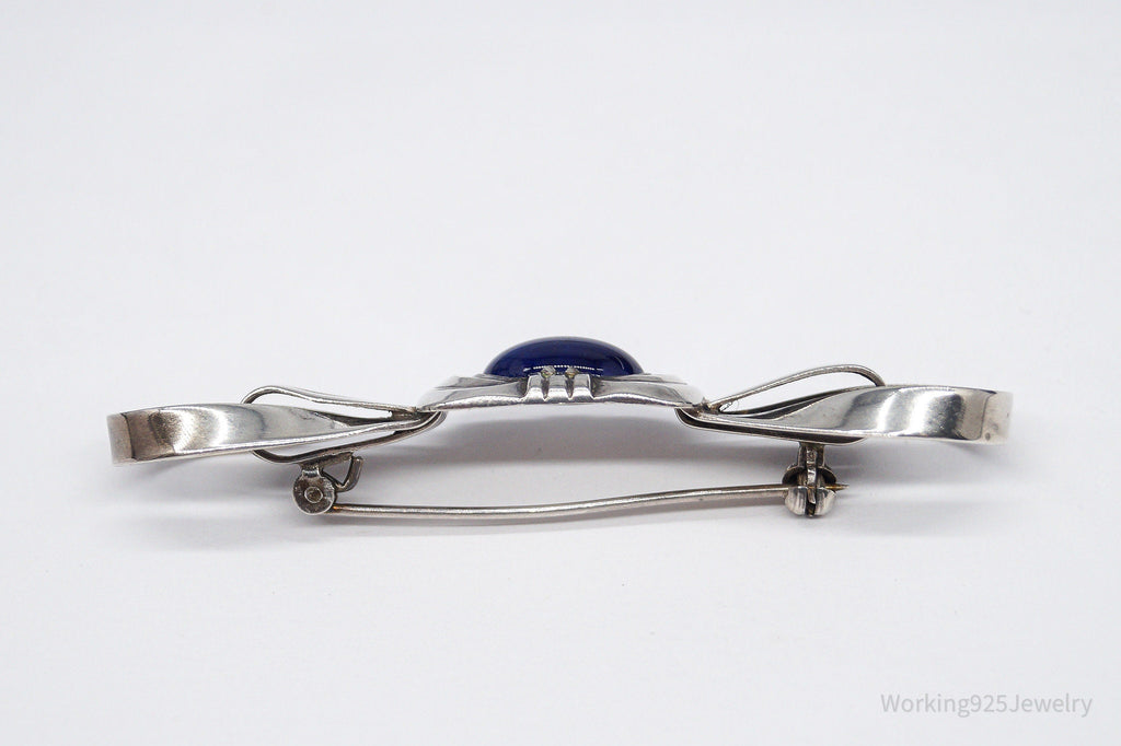 Antique Large Blue Stone Modernist Style 835 Silver Brooch Pin