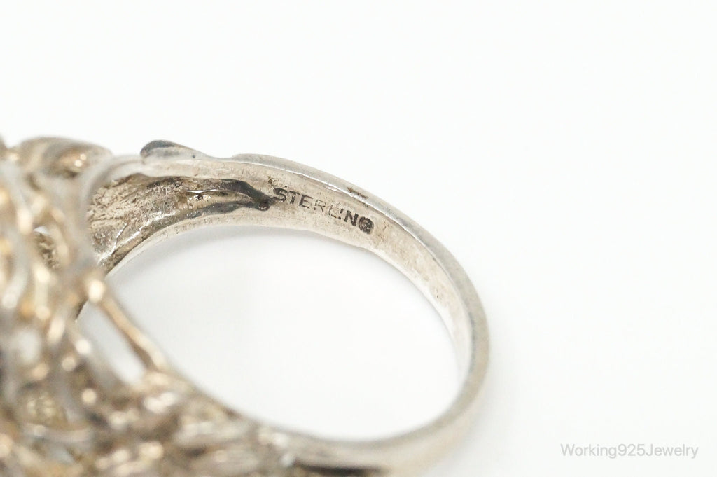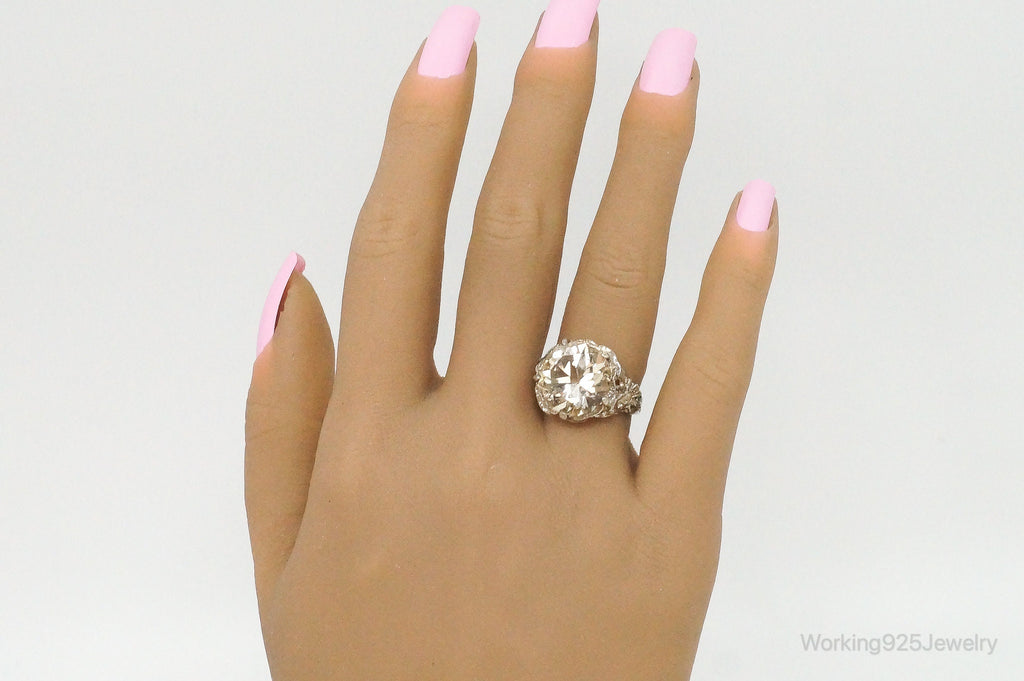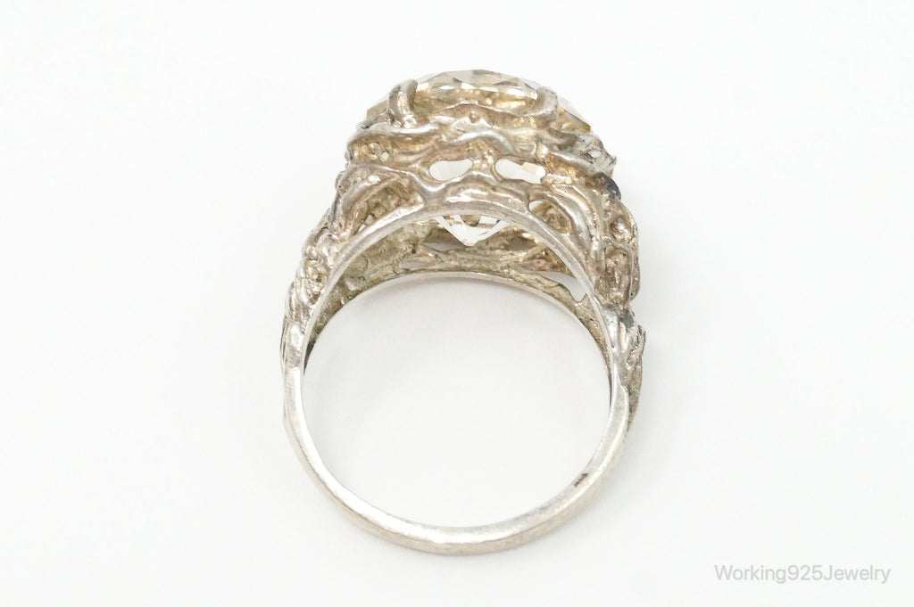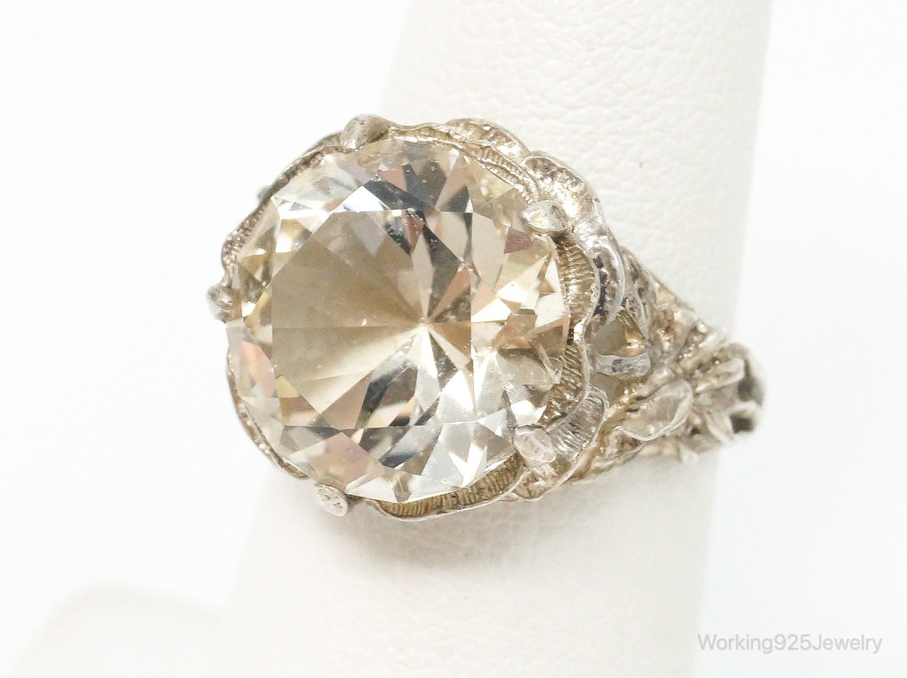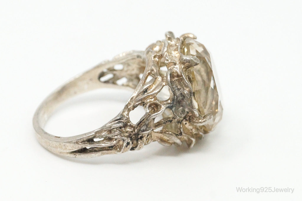 Antique Large Champagne Gemstone Sterling Silver Ring - Size 6.25