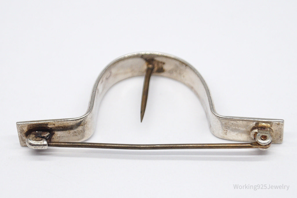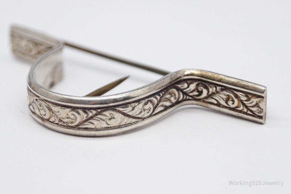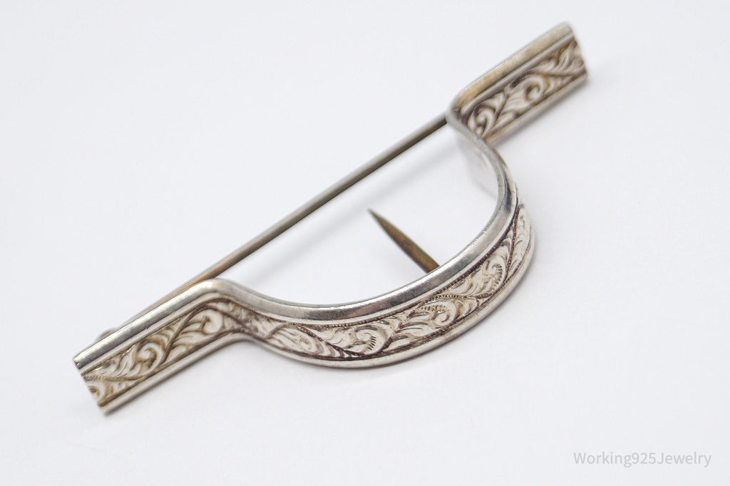 Antique Large Sterling Silver Tussie Mussie Posey Holder Boutonniere Brooch Pin