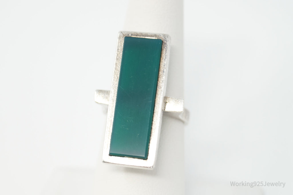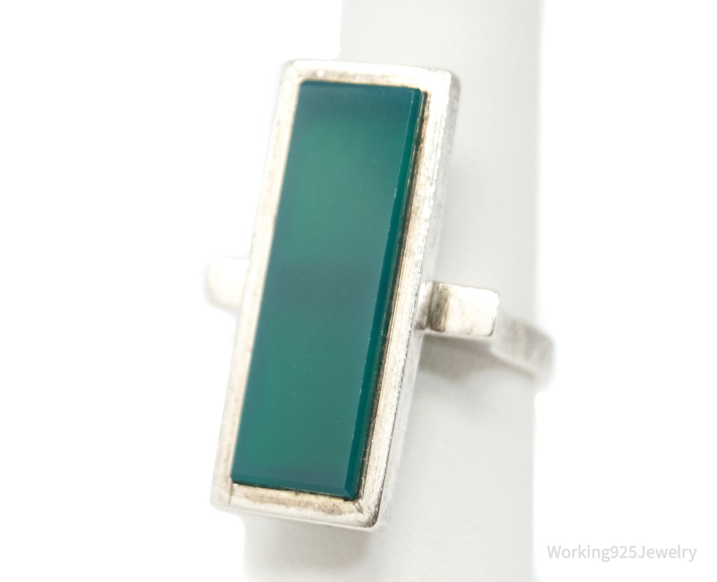 Antique Long Green Onyx Sterling Silver Ring - Size 7