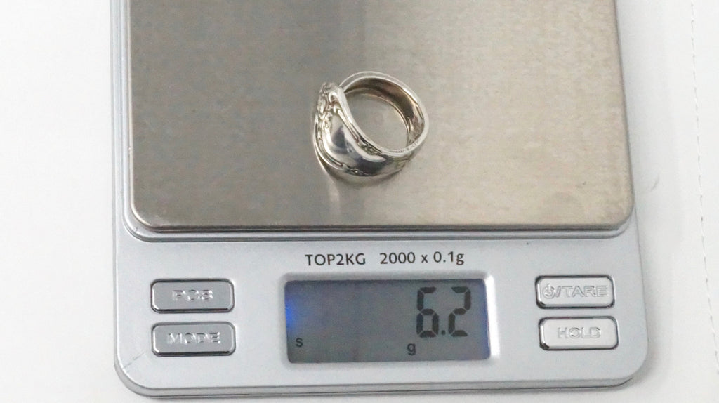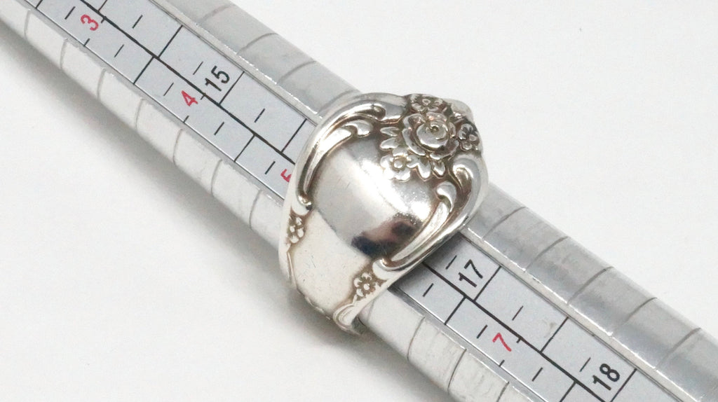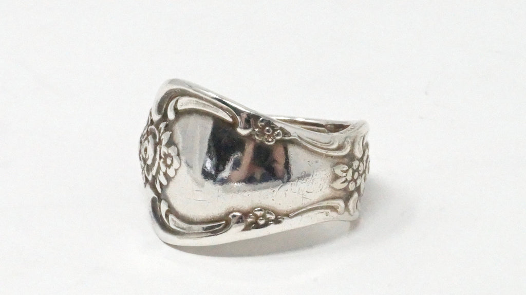 Antique Motif Art Nouveau Flower Sterling Silver Spoon Wrap Ring - Size 6