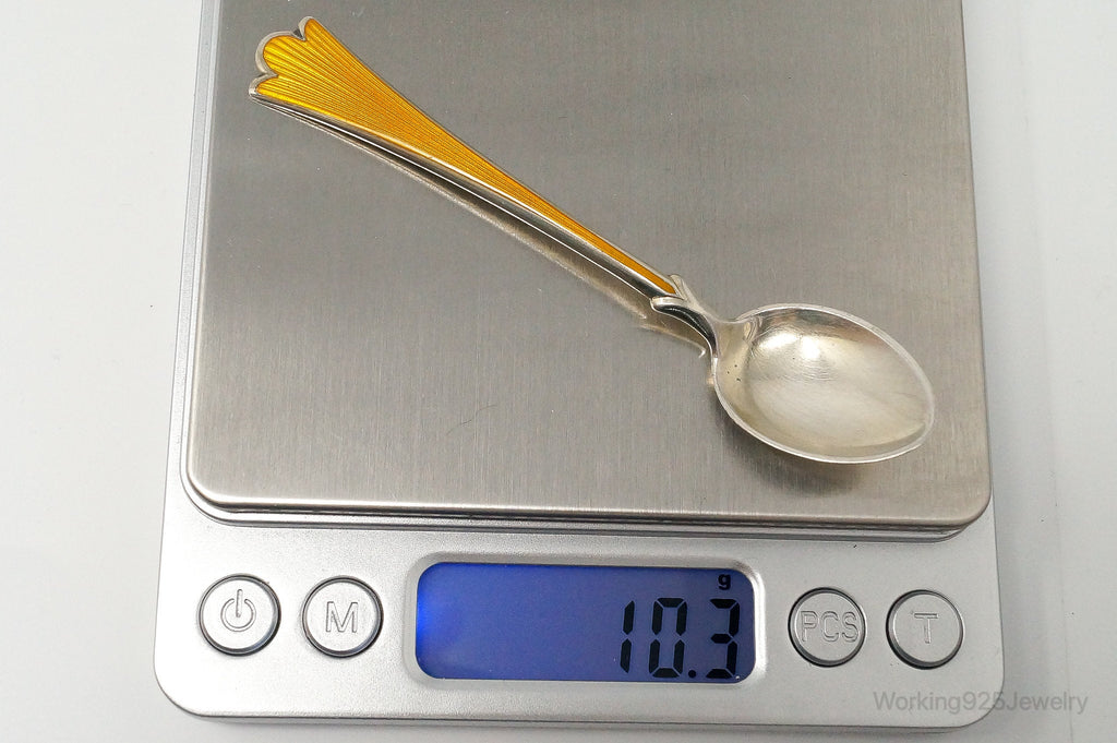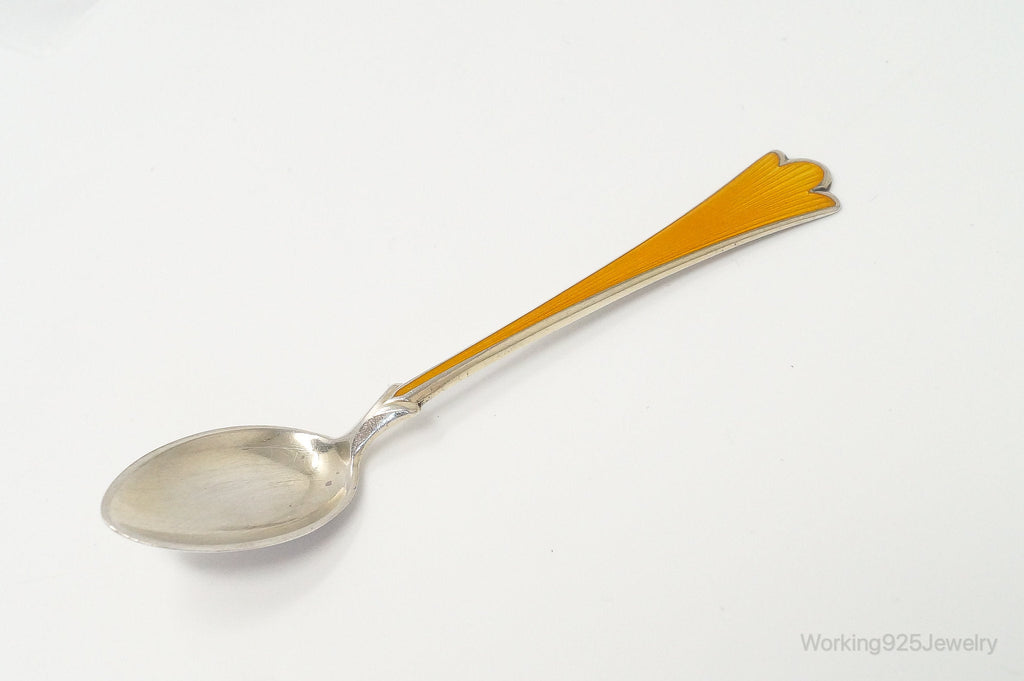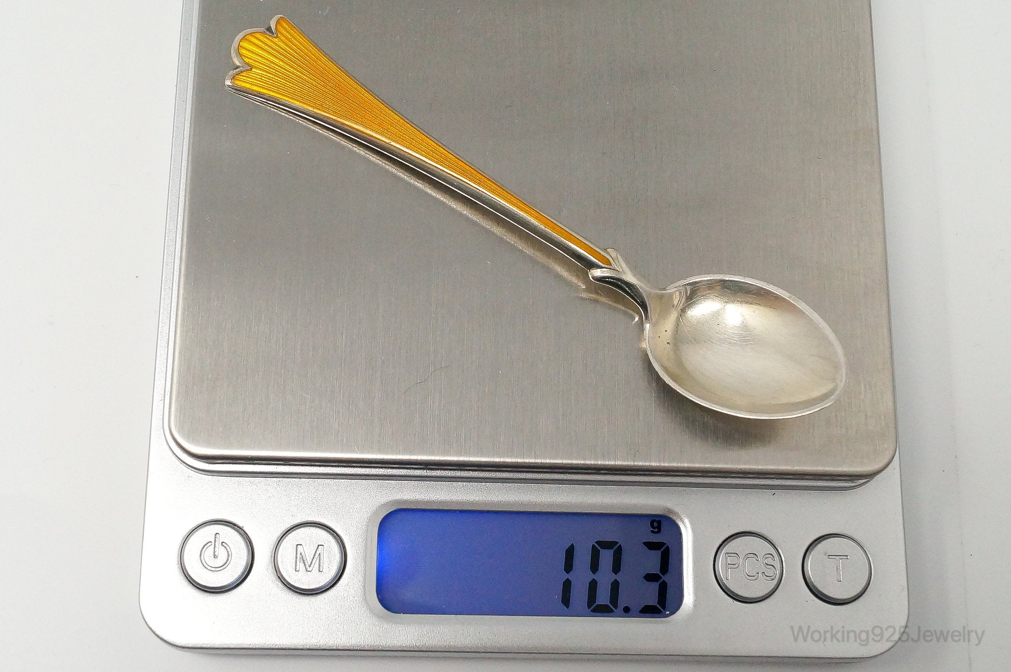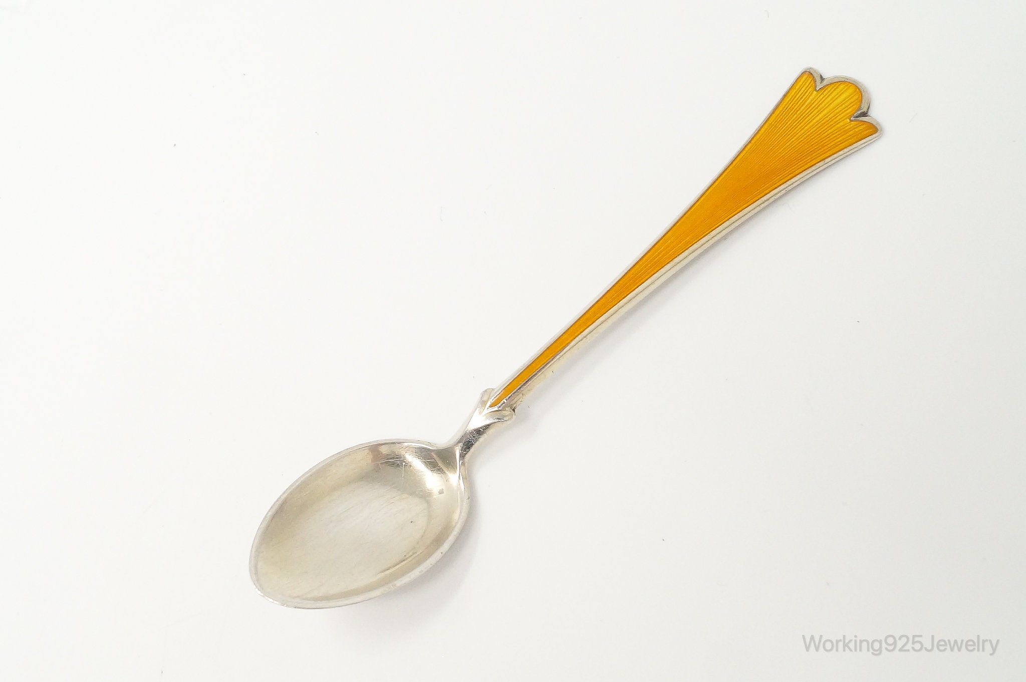Antique Norwegian Theodor Olsen Orange Enamel Large Sterling Silver Spoon