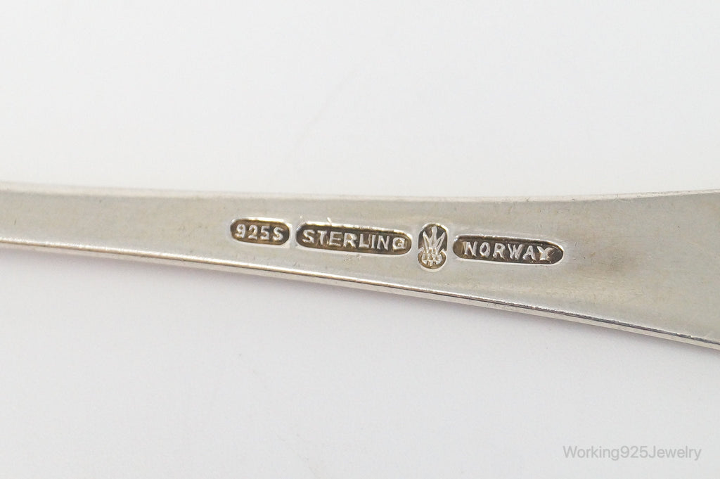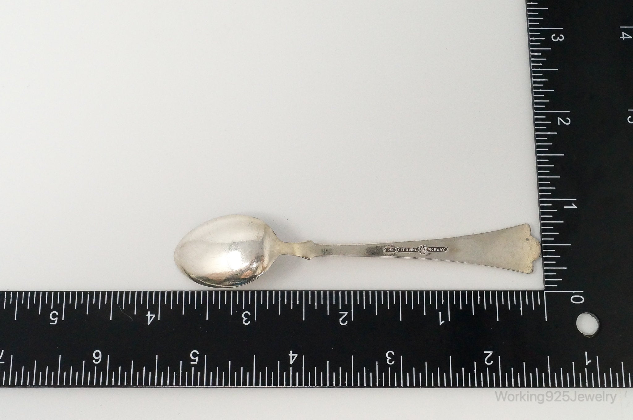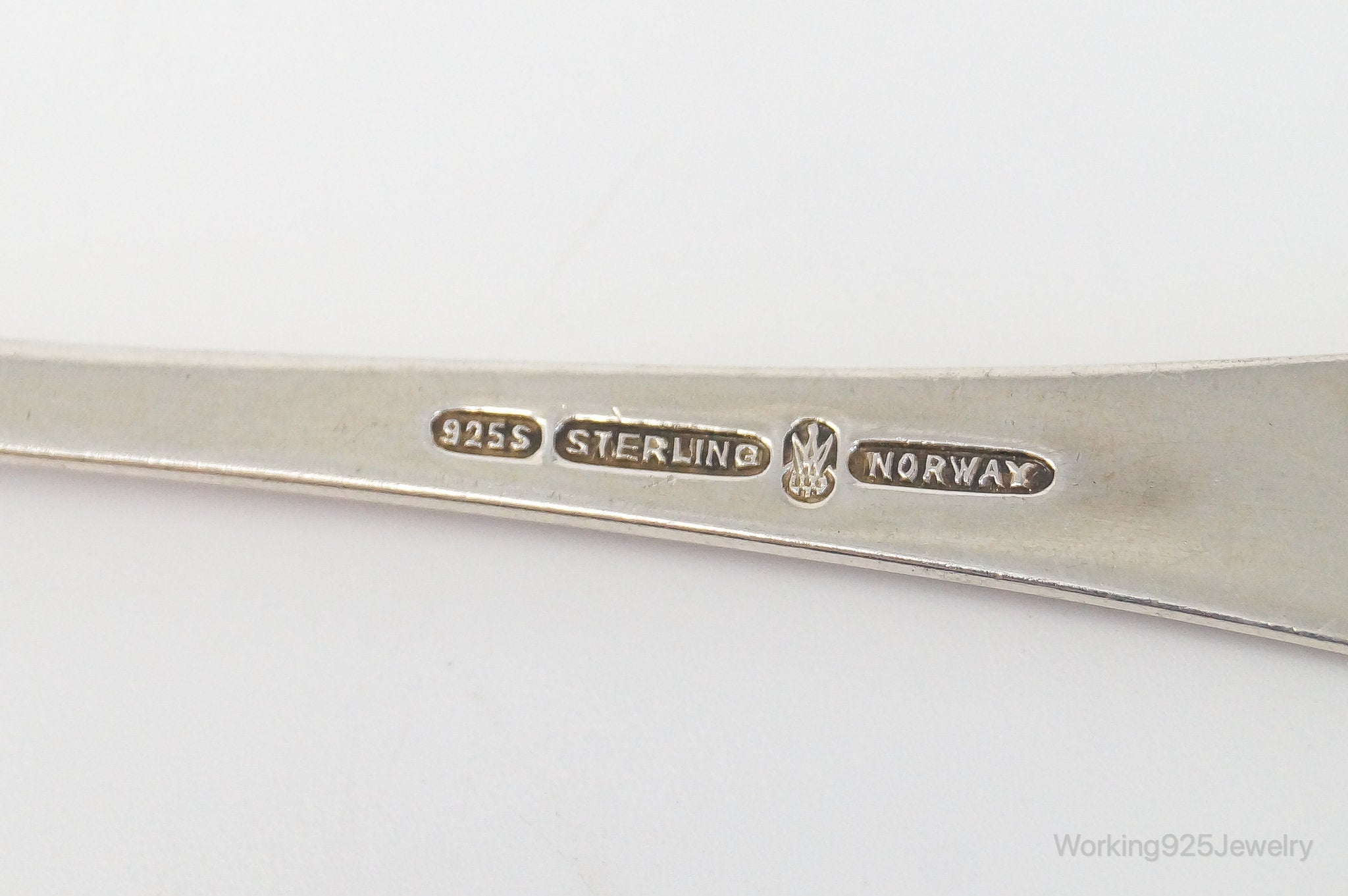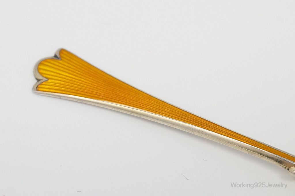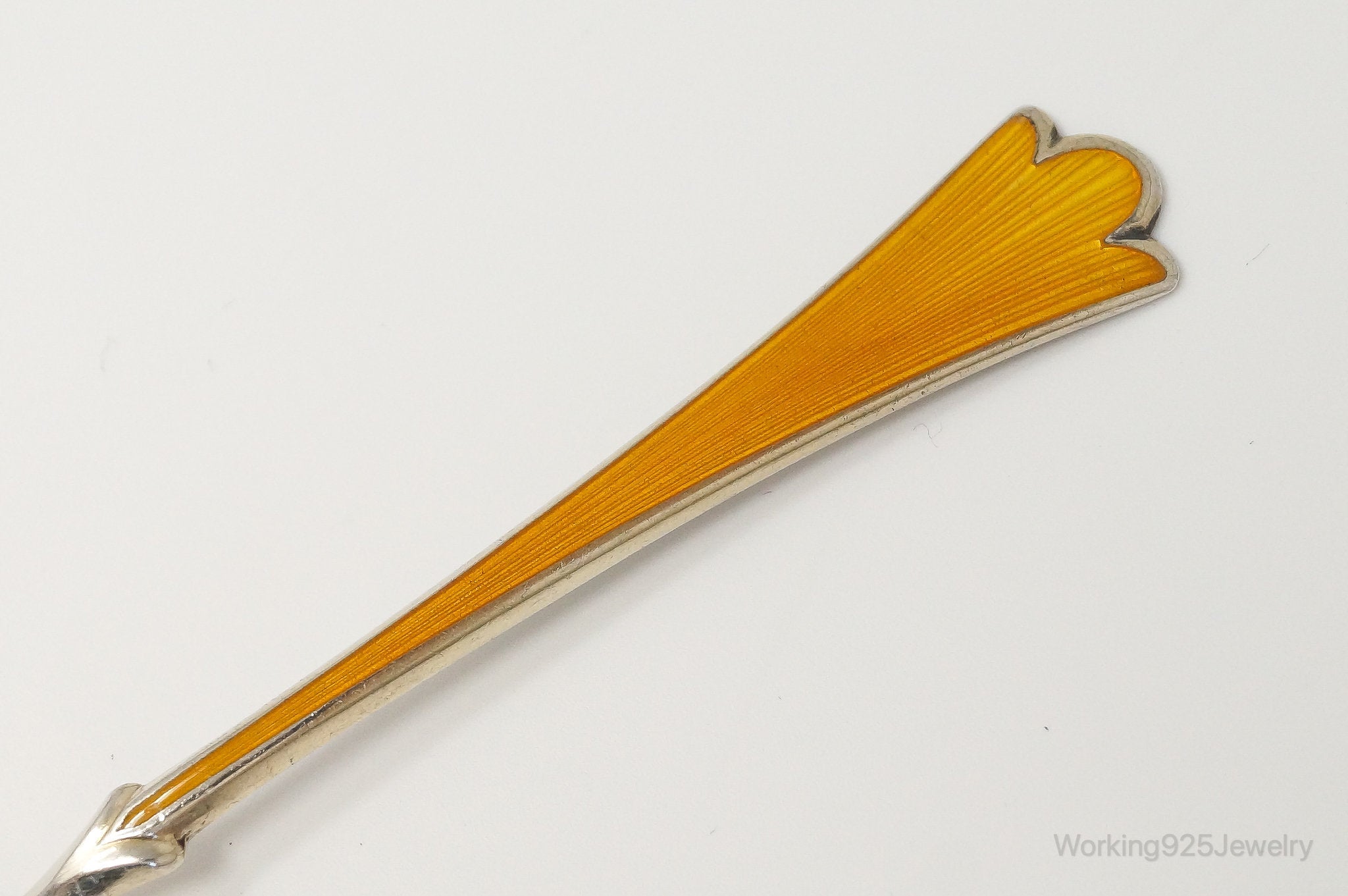Antique Norwegian Theodor Olsen Orange Enamel Large Sterling Silver Spoon