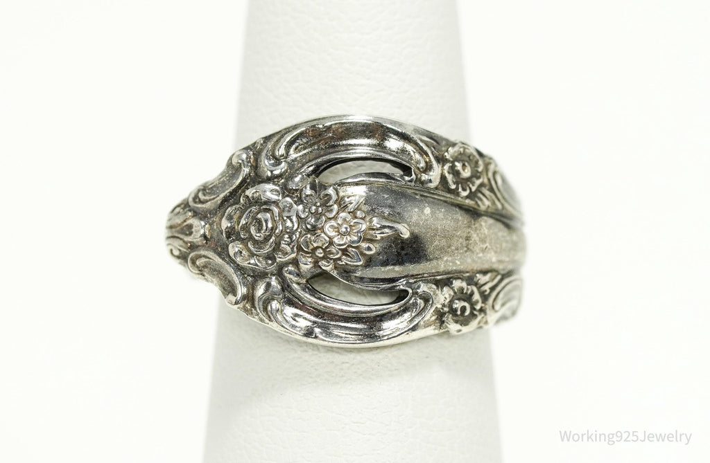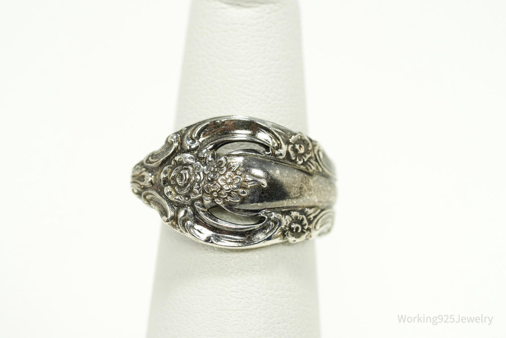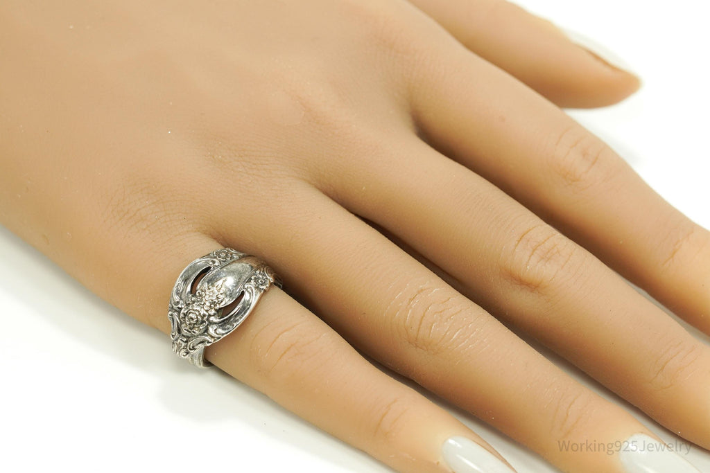 Antique Oneida "Community" Sterling Silver Floral Pattern Spoon Ring - Size 5.5