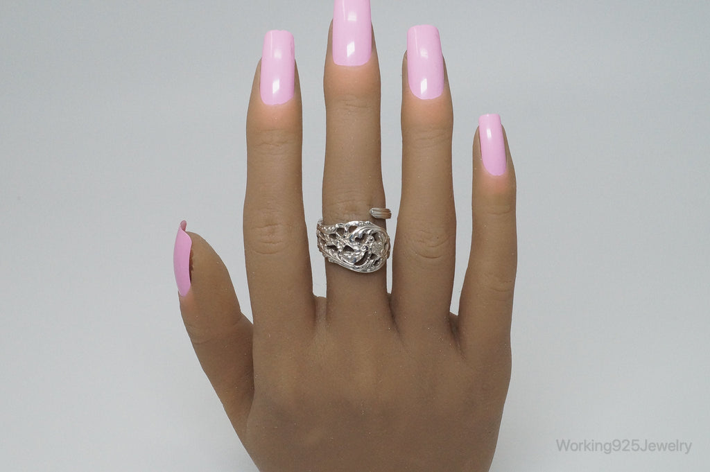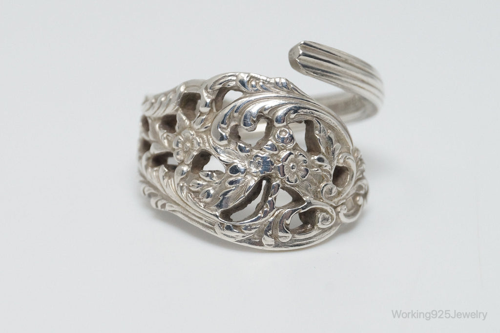 Antique Reed & Barton Floral Repousse Sterling Silver Spoon Ring SZ 6.5