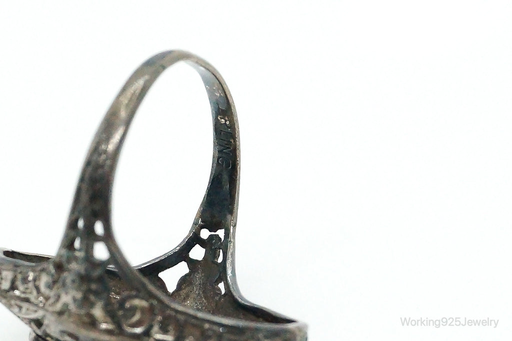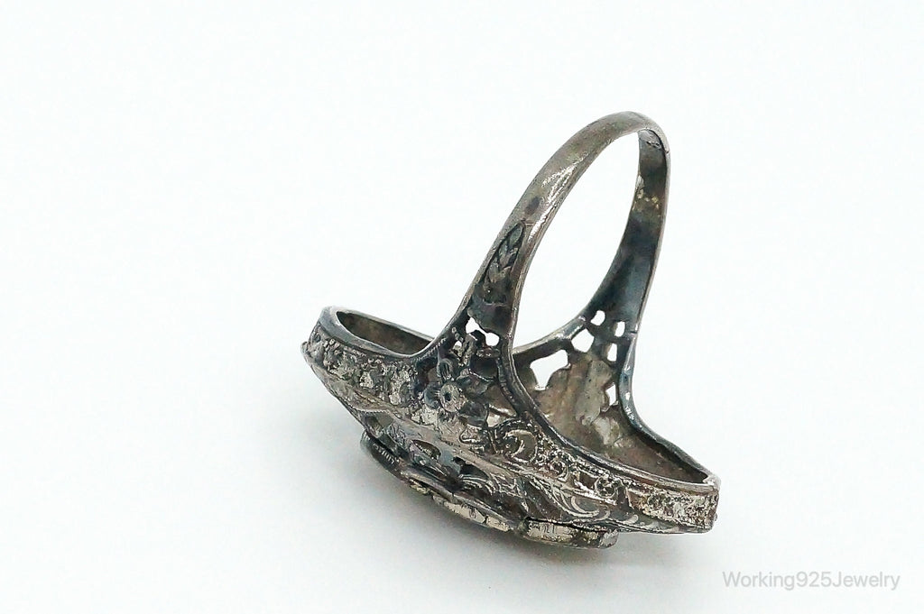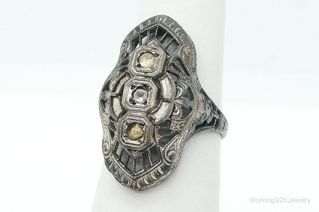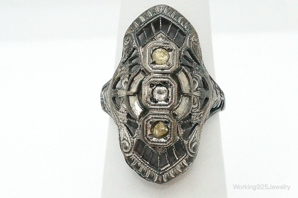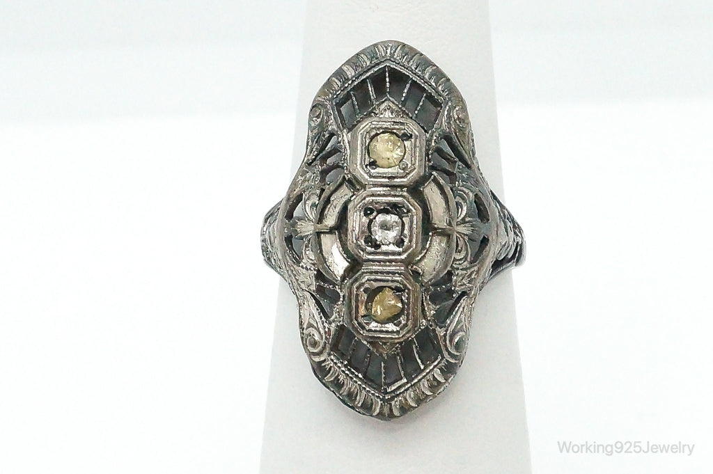 Antique Rhinestone Sterling Silver Ring - Size 5.75