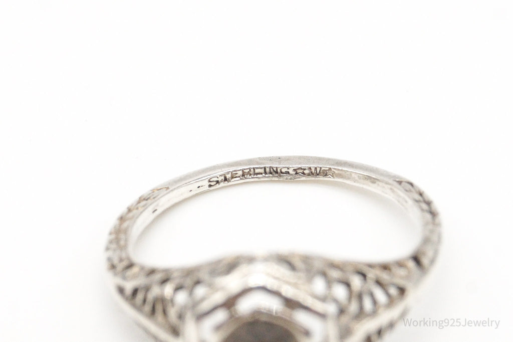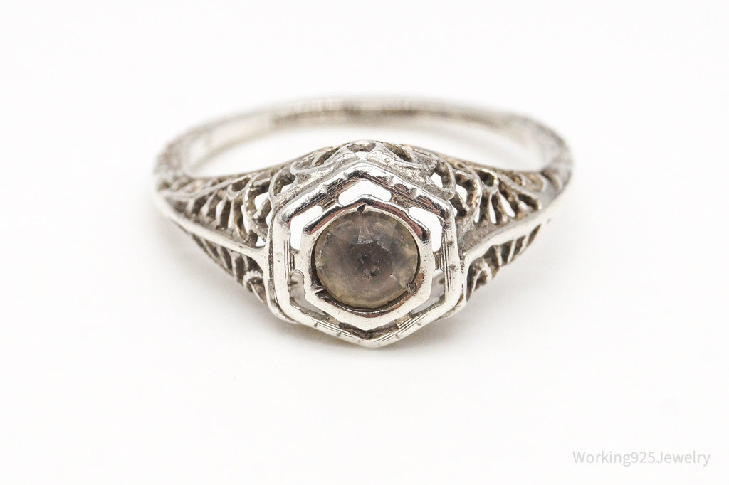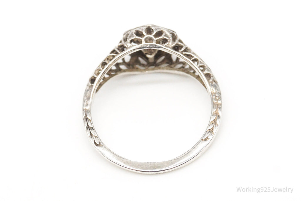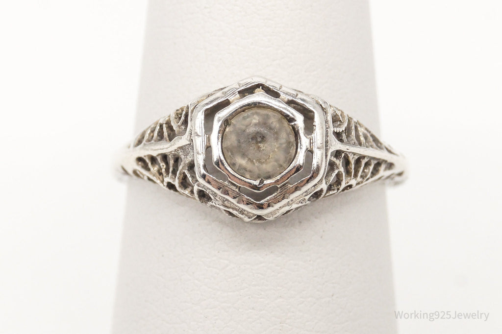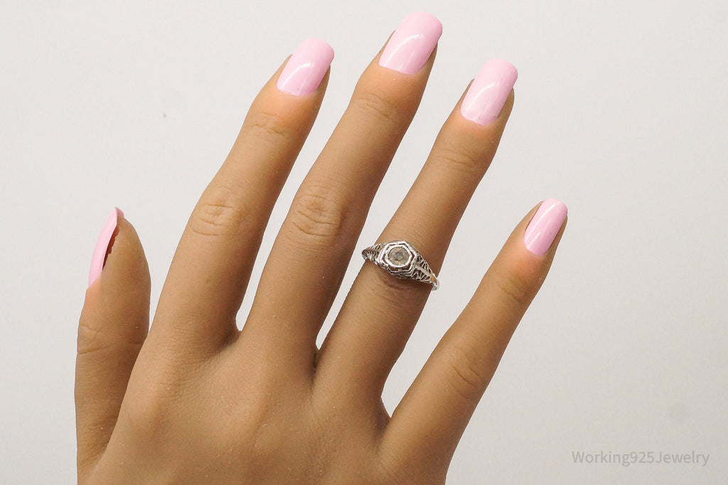 Antique Rhinestone Sterling Silver Ring - Size 5.75
